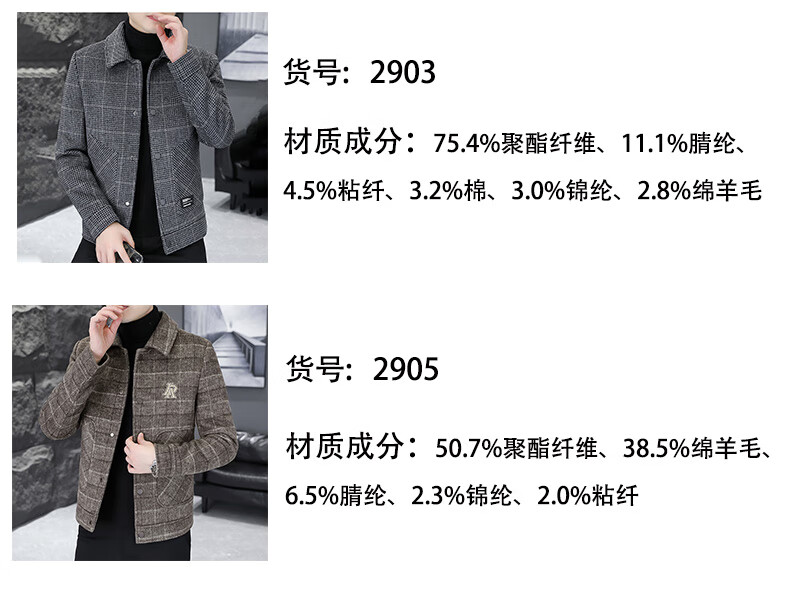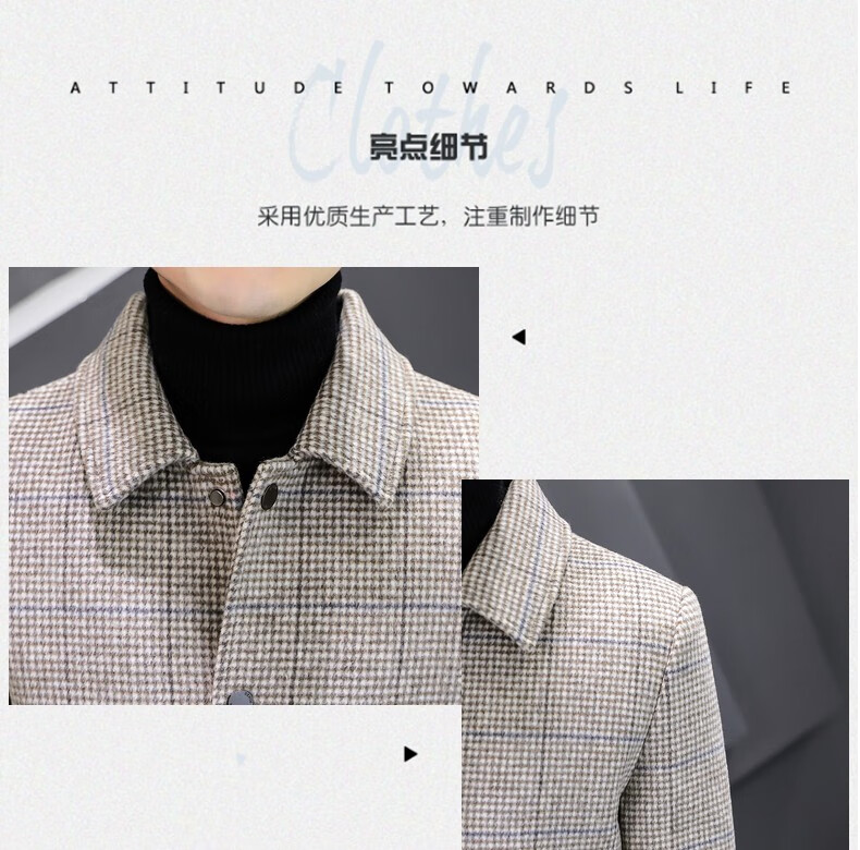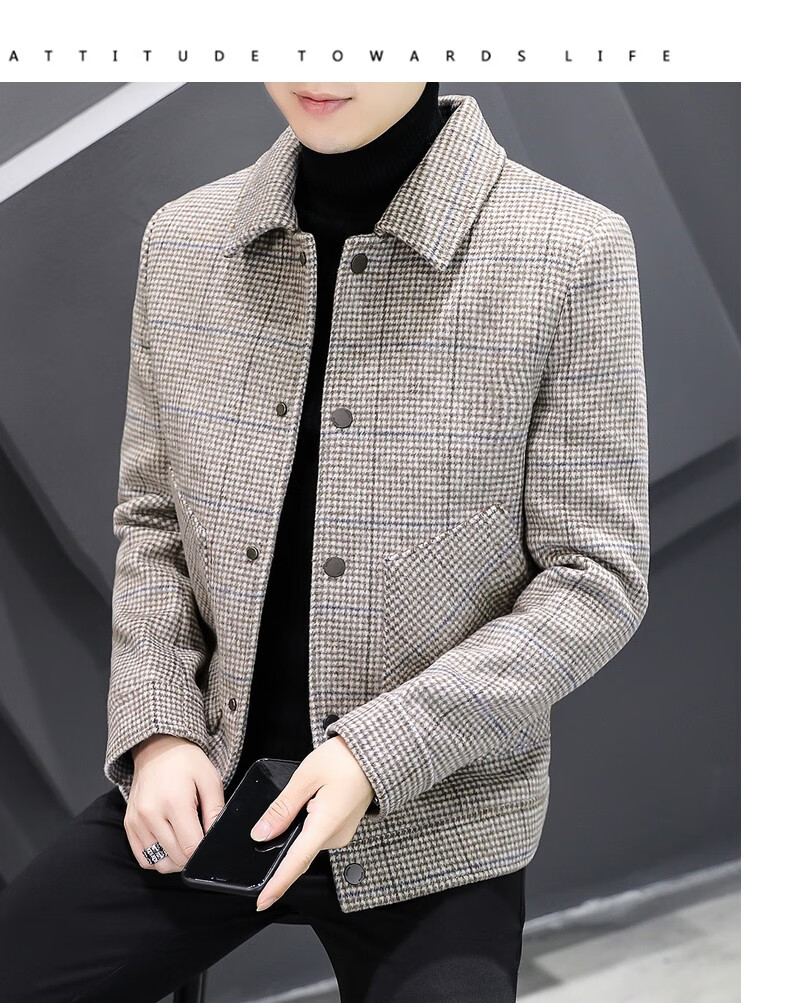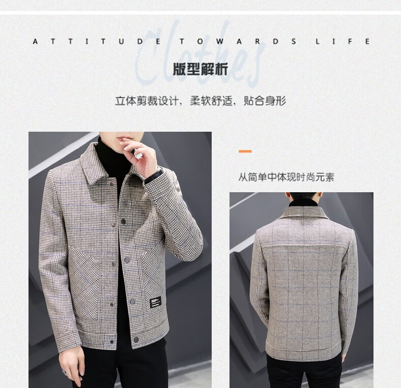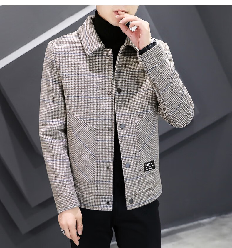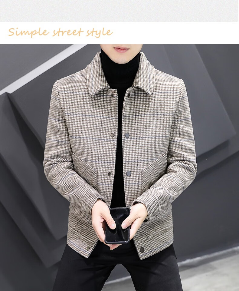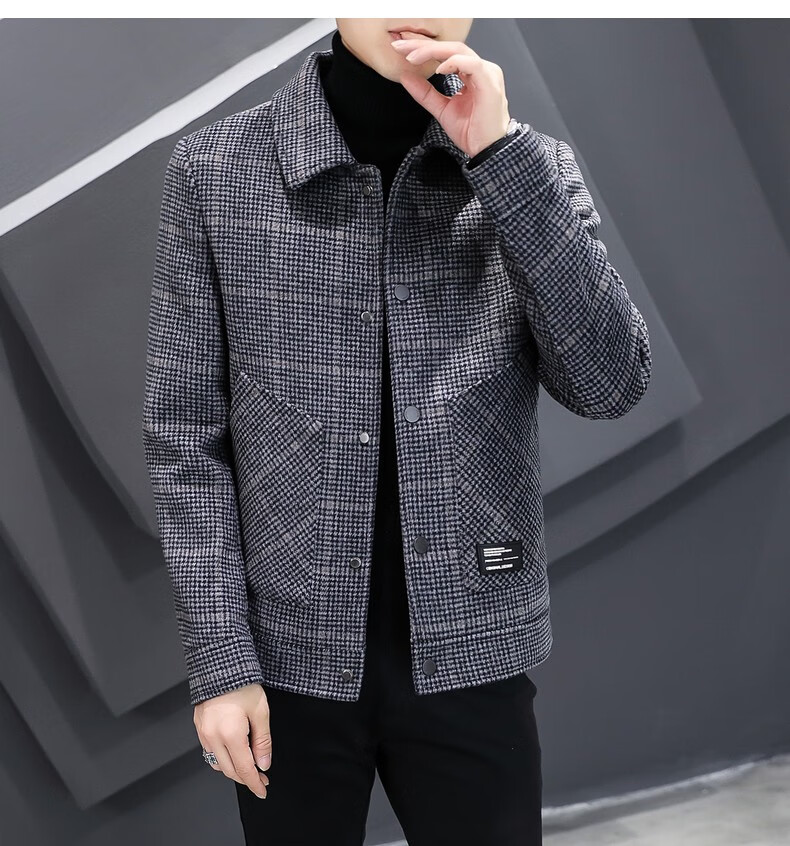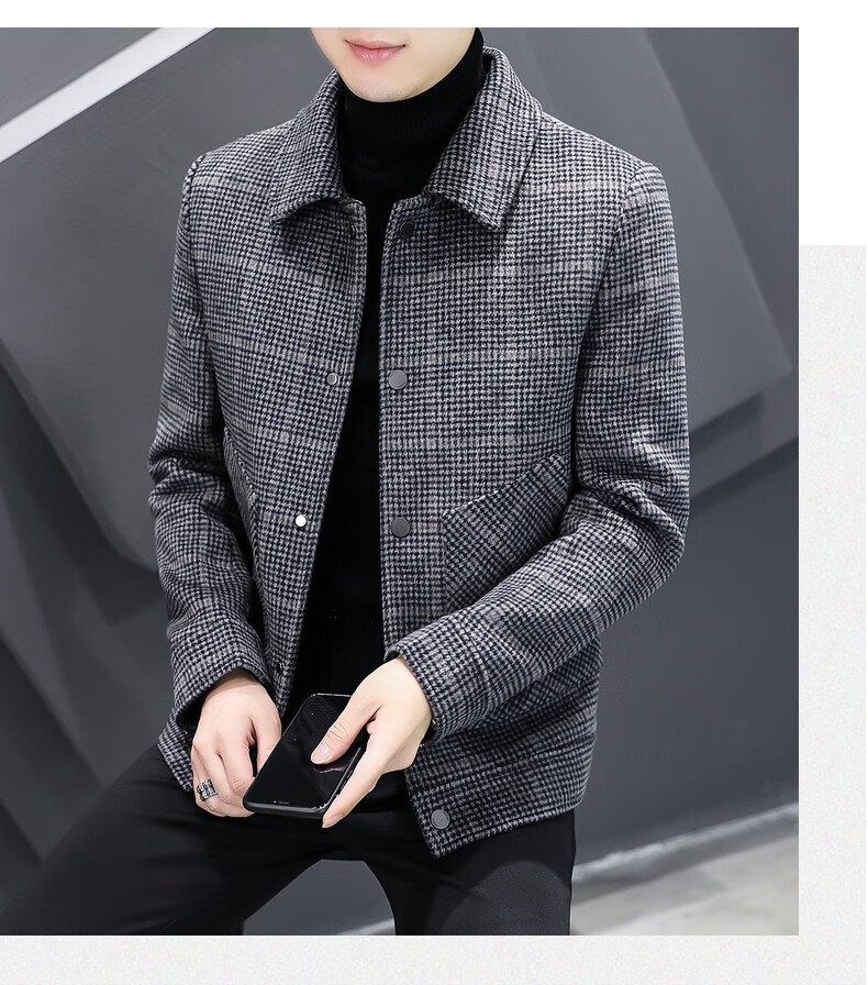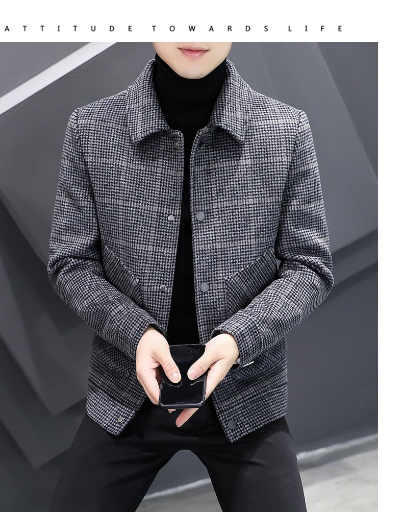 ROMON Woolen Jacket Men's Autumn and Winter New Fashion Business Plaid Lapel Jacket Thickened Warm Top Men's 2903 Gray XL (120-135Jin Jin is equal to about 0.5 kg)