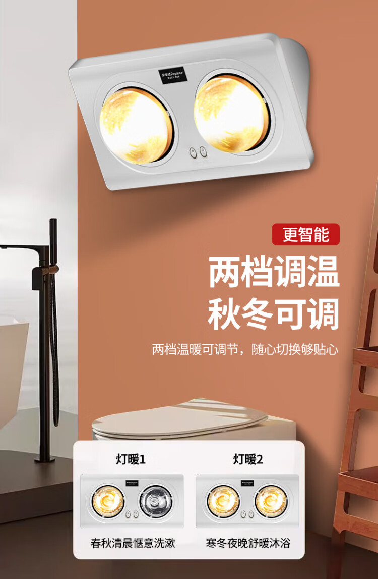 Royalstar Bath Heater Light Warming Lighting Exhaust All-in-one Machine 2025 New Bathroom Heater Bathroom Bulb Bath Heater Light Economical High Heat Silver Double Lamp Model