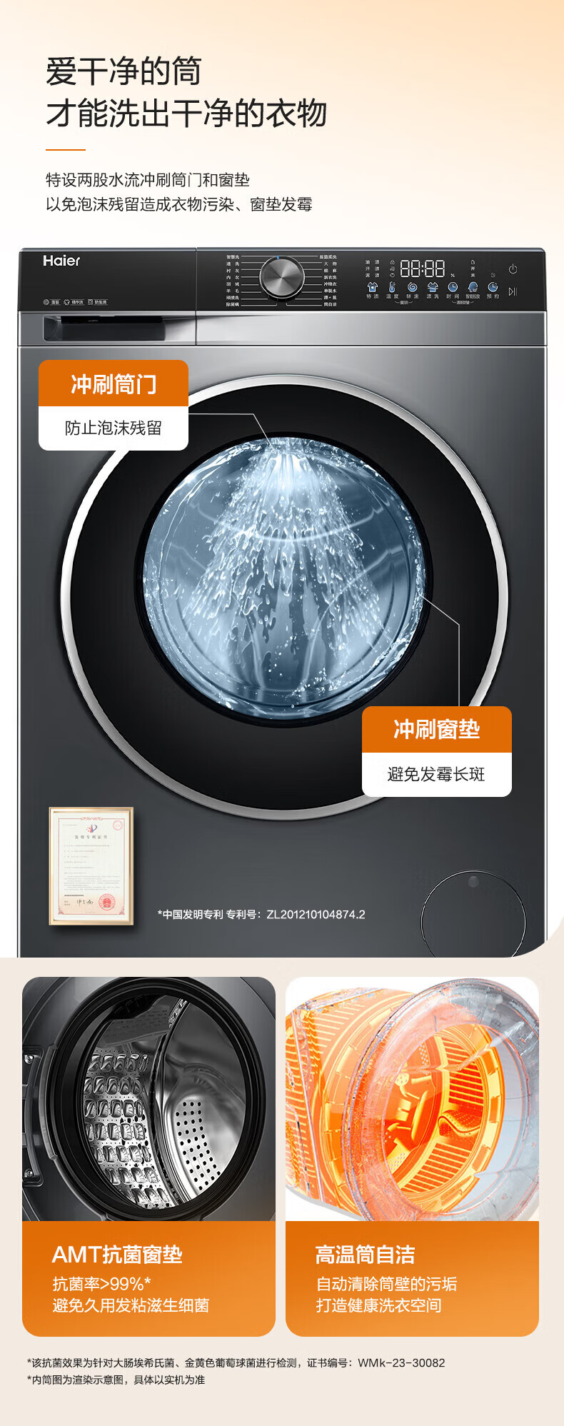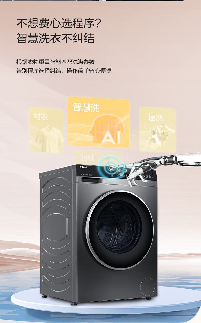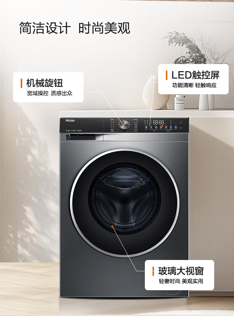 Haier's 26-year-old new product, direct drive frequency conversion, drum fully automatic washing machine, low noise, no shaking, high temperature sterilization, 10kg, large capacity, household energy saving, high efficiency, first-level energy efficiency subsidy, ultra-thin flagship model + eight-dimensional shock absorption + high cleaning ratio + special stains and special washing drum