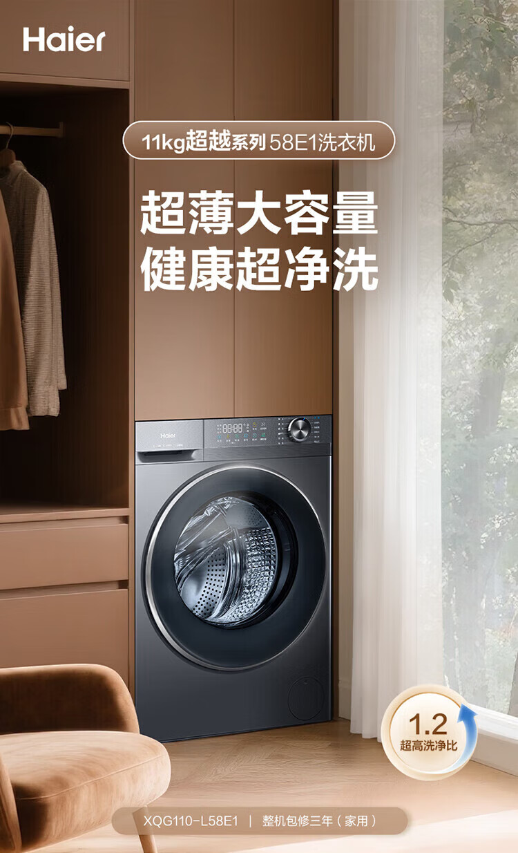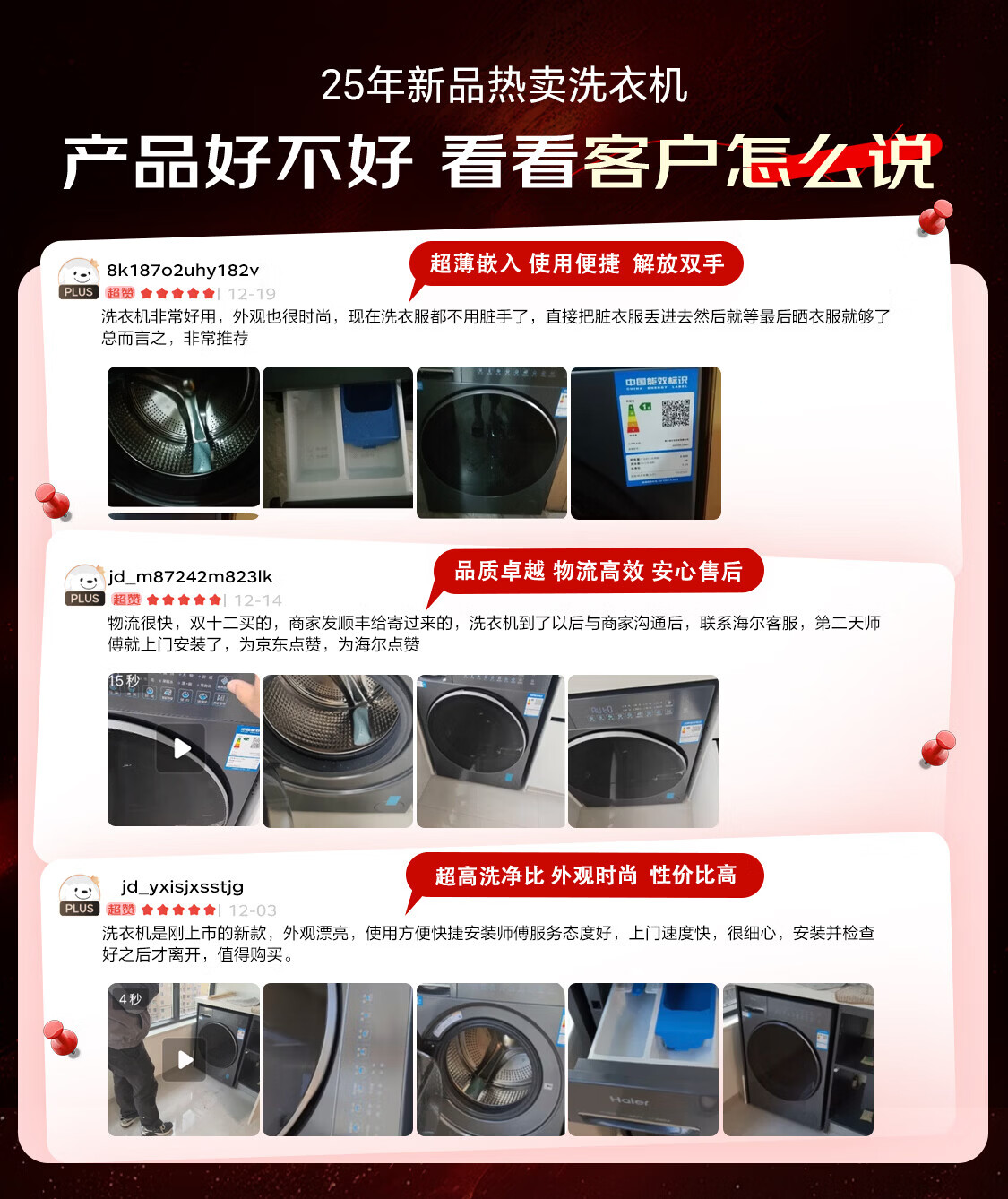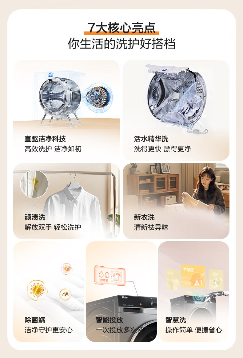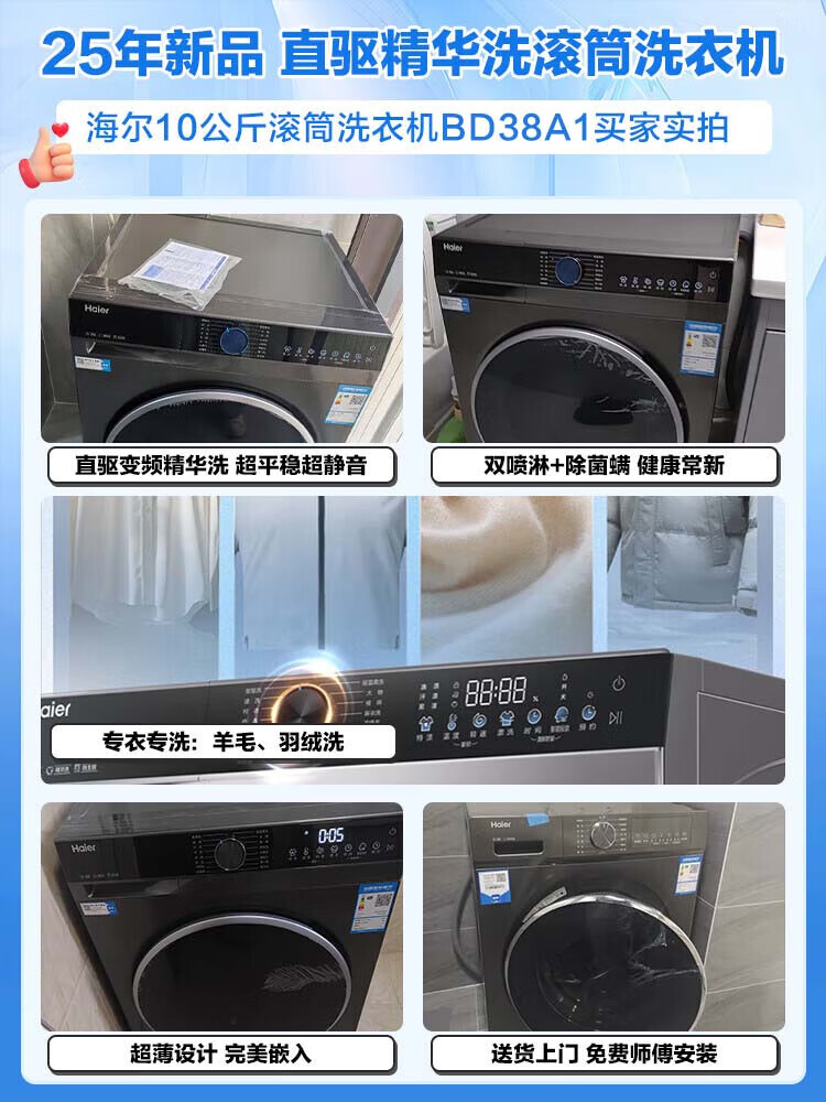 Haier's 26-year-old new product, direct drive frequency conversion, drum fully automatic washing machine, low noise, no shaking, high temperature sterilization, 10kg, large capacity, household energy saving, high efficiency, first-level energy efficiency subsidy, ultra-thin flagship model + eight-dimensional shock absorption + high cleaning ratio + special stains and special washing drum