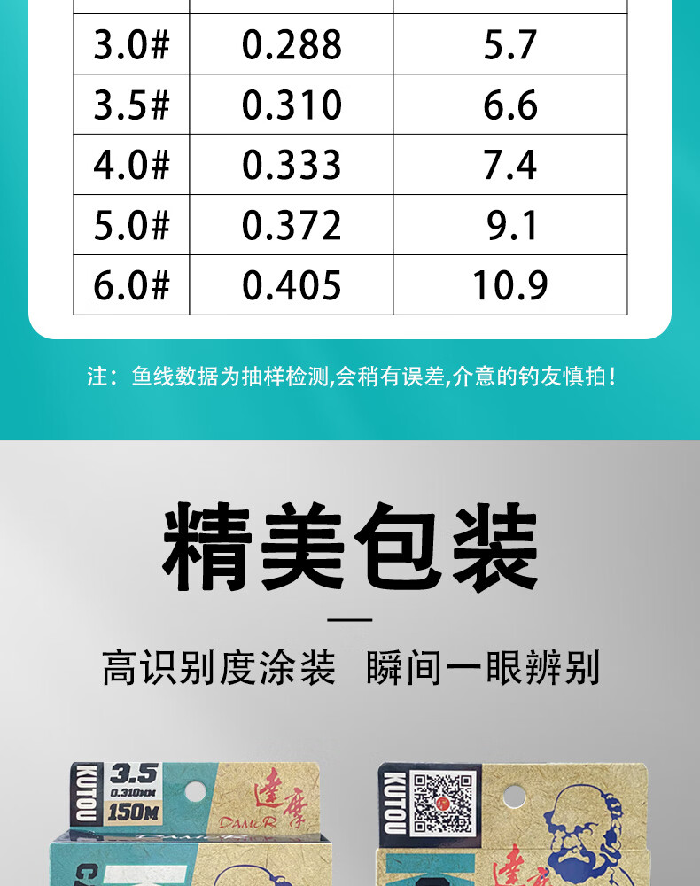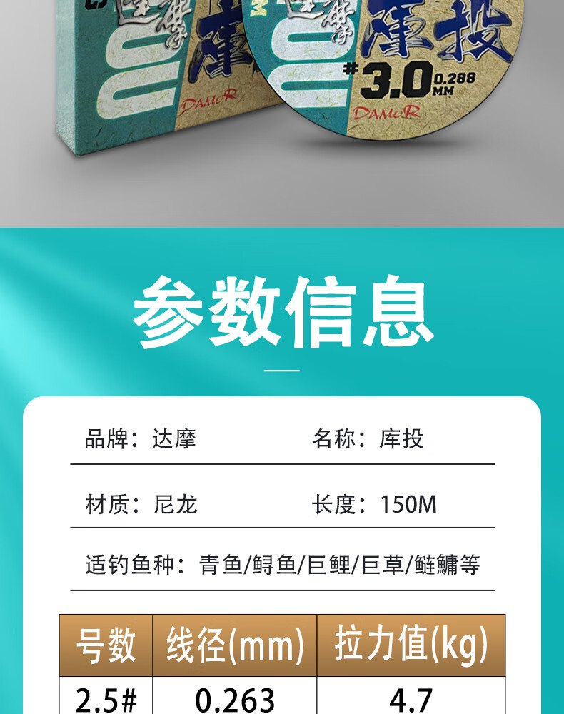Damo Fishing Line Library Tou Dawu Line Wild Fishing Reservoir Strong Tension Fishing Line 150 Meters Kutou Dawu Line (General Purpose) No. 4.0