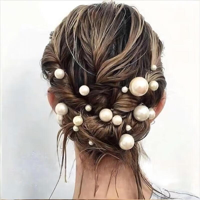 SHANGGE hairpin U-shaped hairpin with pearl headdress for girls lazy ball head gift artifact fairy hair accessories silver 16-piece set (4 sizes)