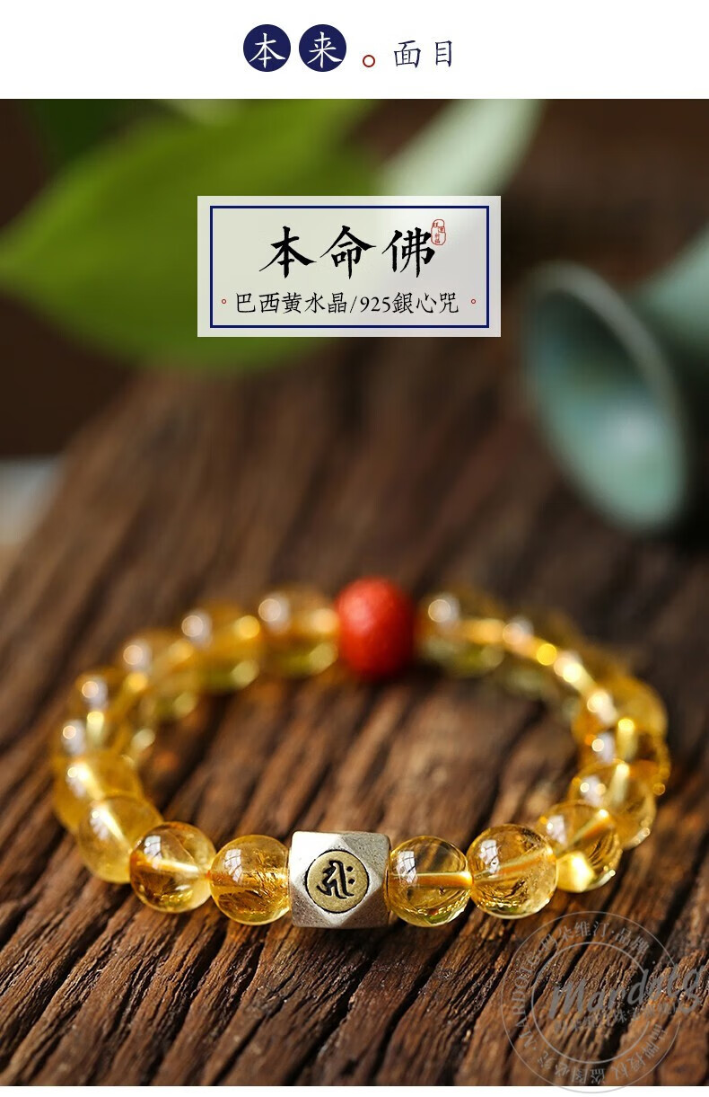 MARDOTG Brazilian Citrine Bracelet Women's Twelve Zodiac Zodiac Buddha Crystal Beads Bracelet Birthday Gift Mahasthamaprapta Bodhisattva Horse 8