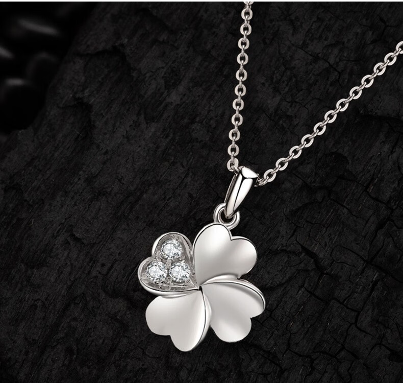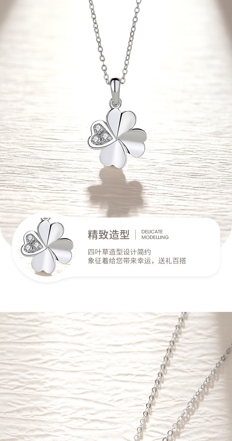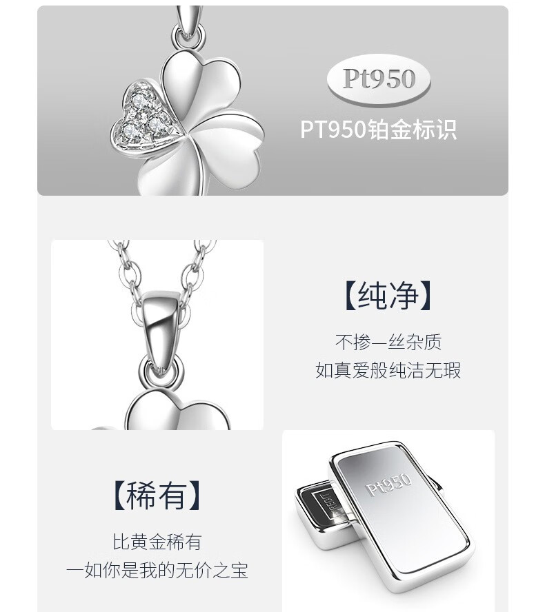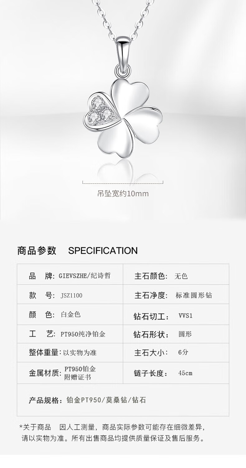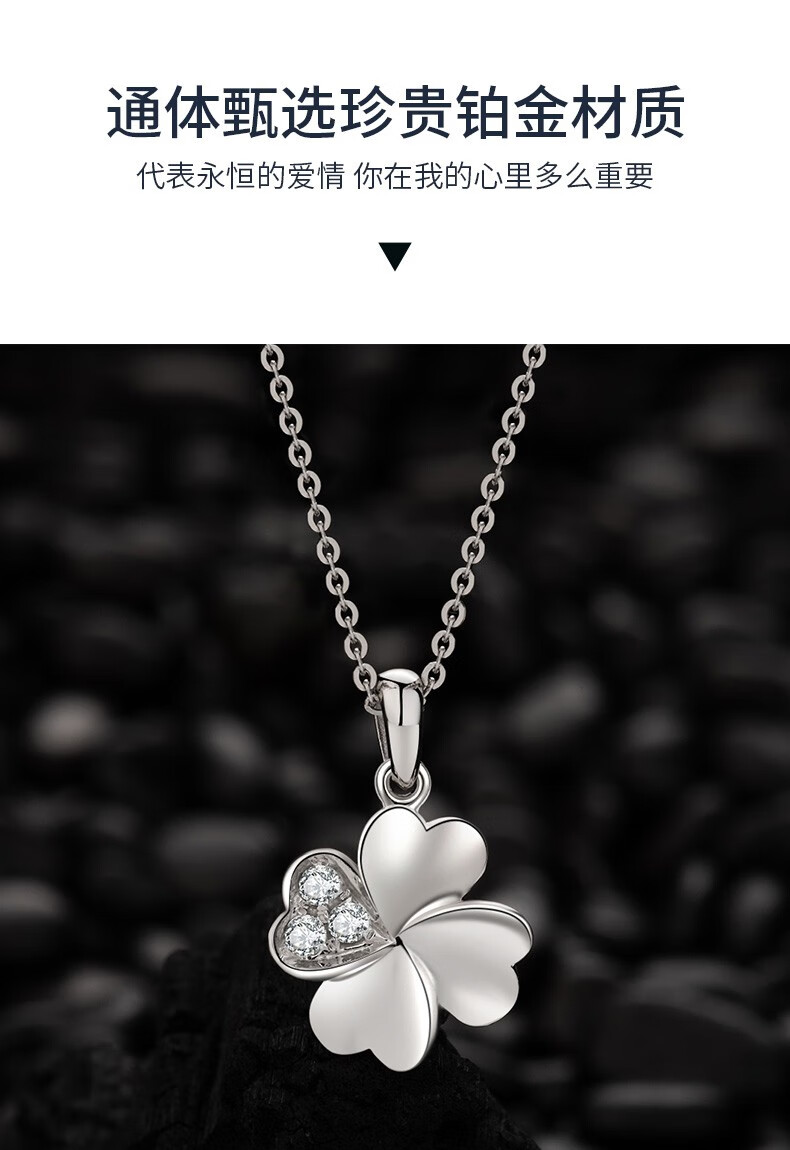 GIEVSZHE PT950 platinum necklace for women, four-leaf clover diamond pendant, Valentine's Day birthday gift for girlfriend and wife, luxury flash O chain + platinum pendant