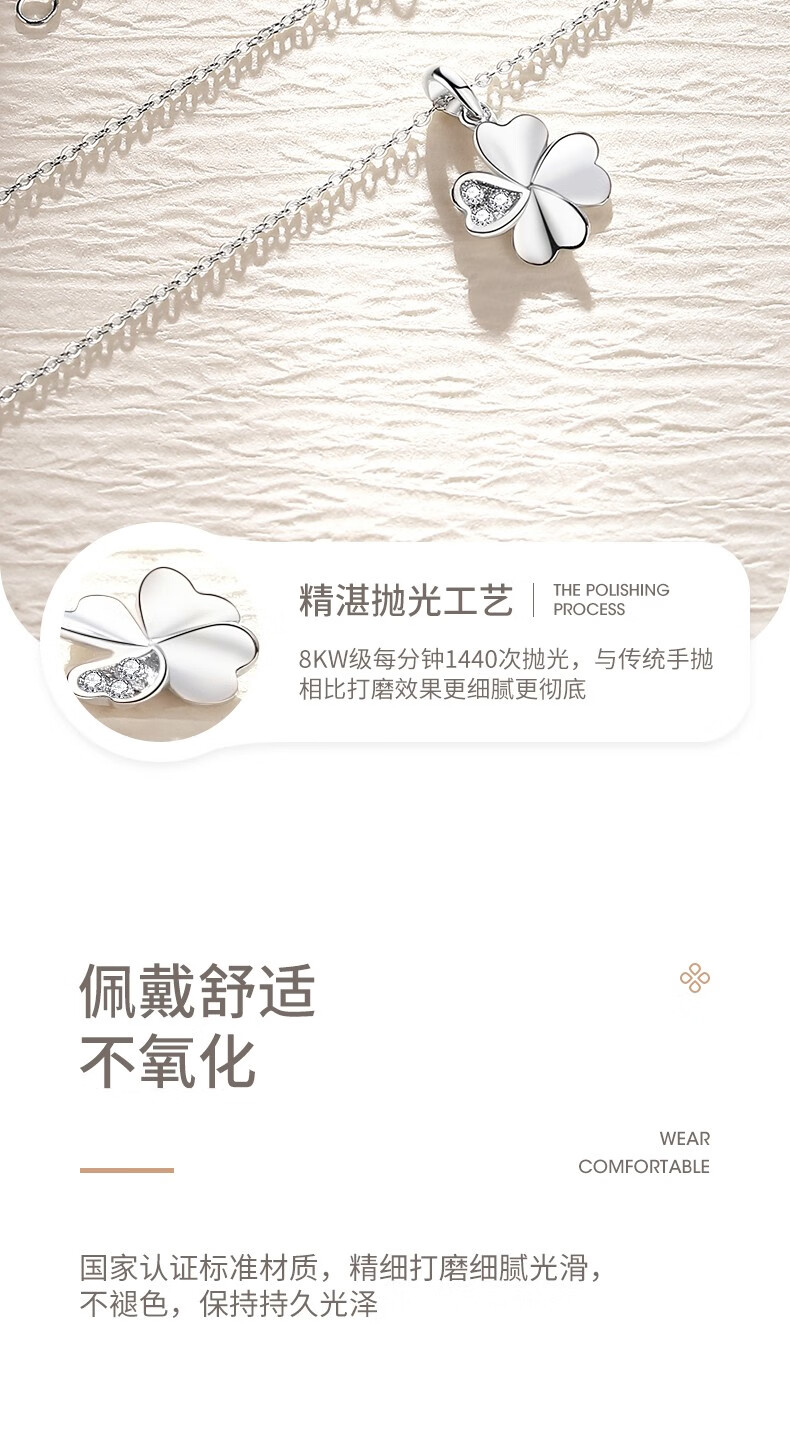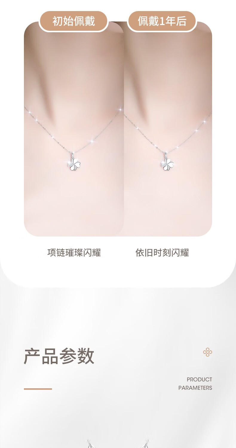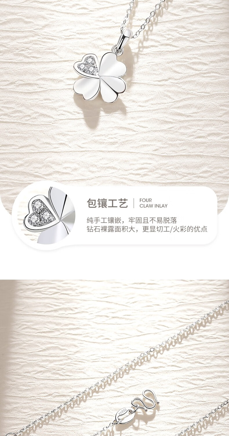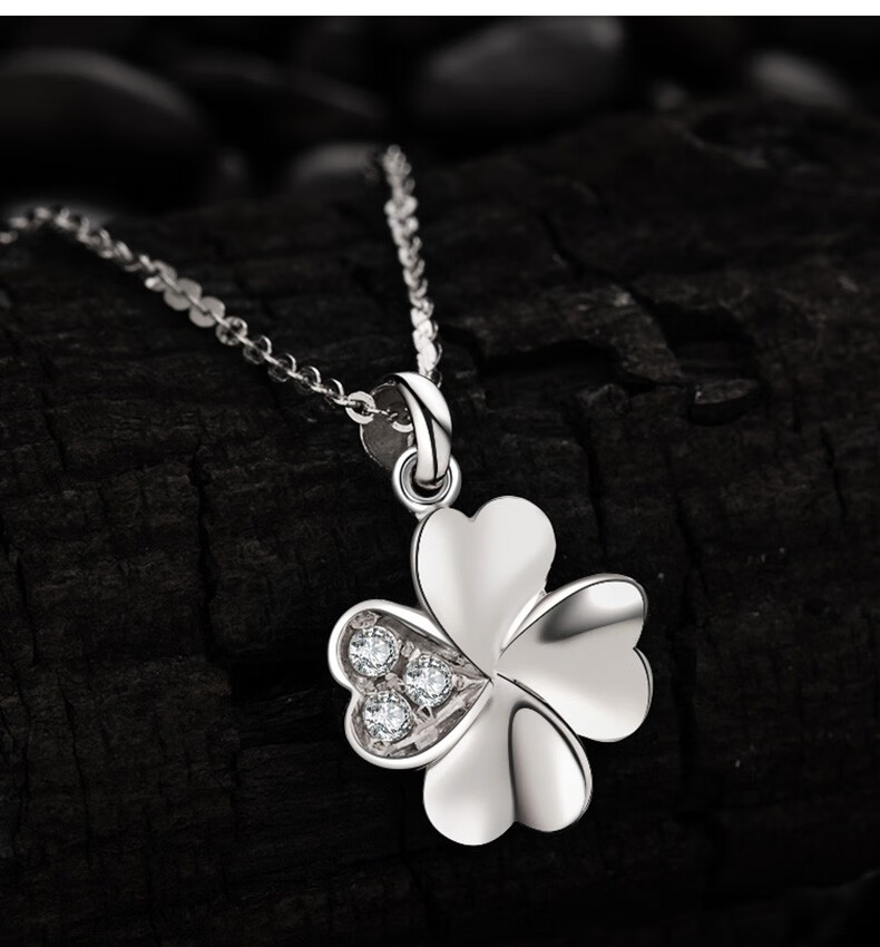 GIEVSZHE PT950 platinum necklace for women, four-leaf clover diamond pendant, Valentine's Day birthday gift for girlfriend and wife, luxury flash O chain + platinum pendant