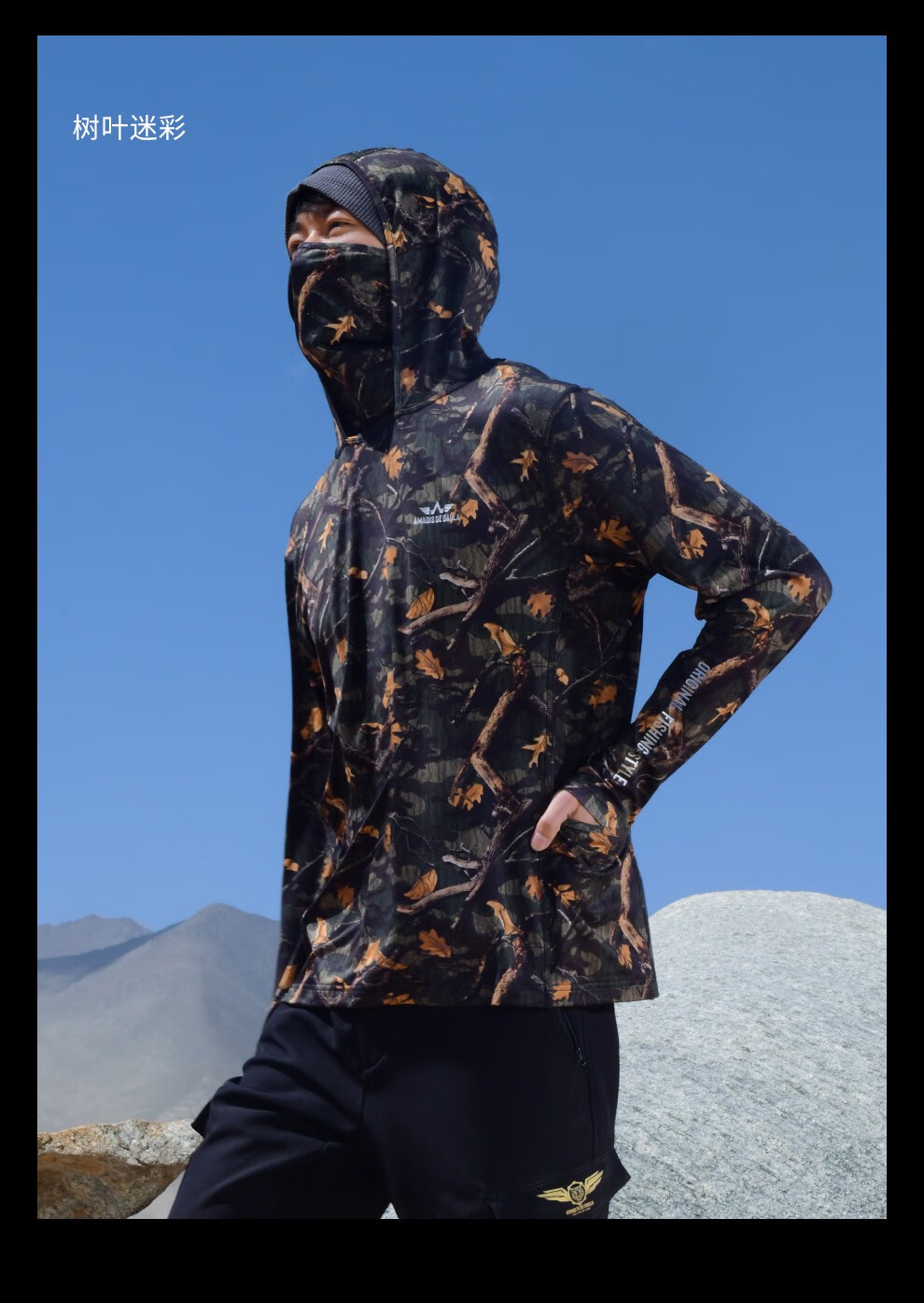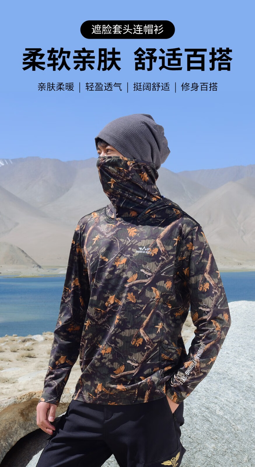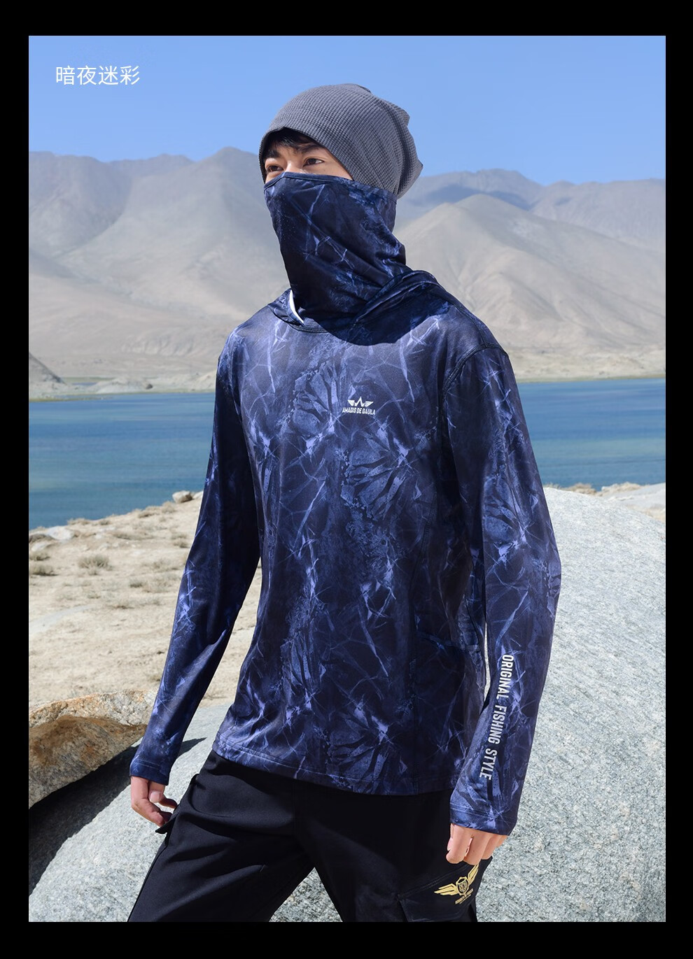 AMADIS DE GAULA fishing clothing men's new face-covering warm hooded pullover sweatshirt outdoor sports fishing clothing dark night camouflage (spring style) L