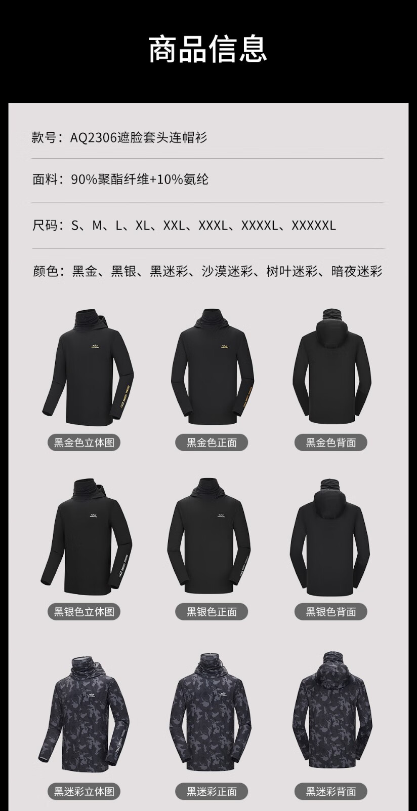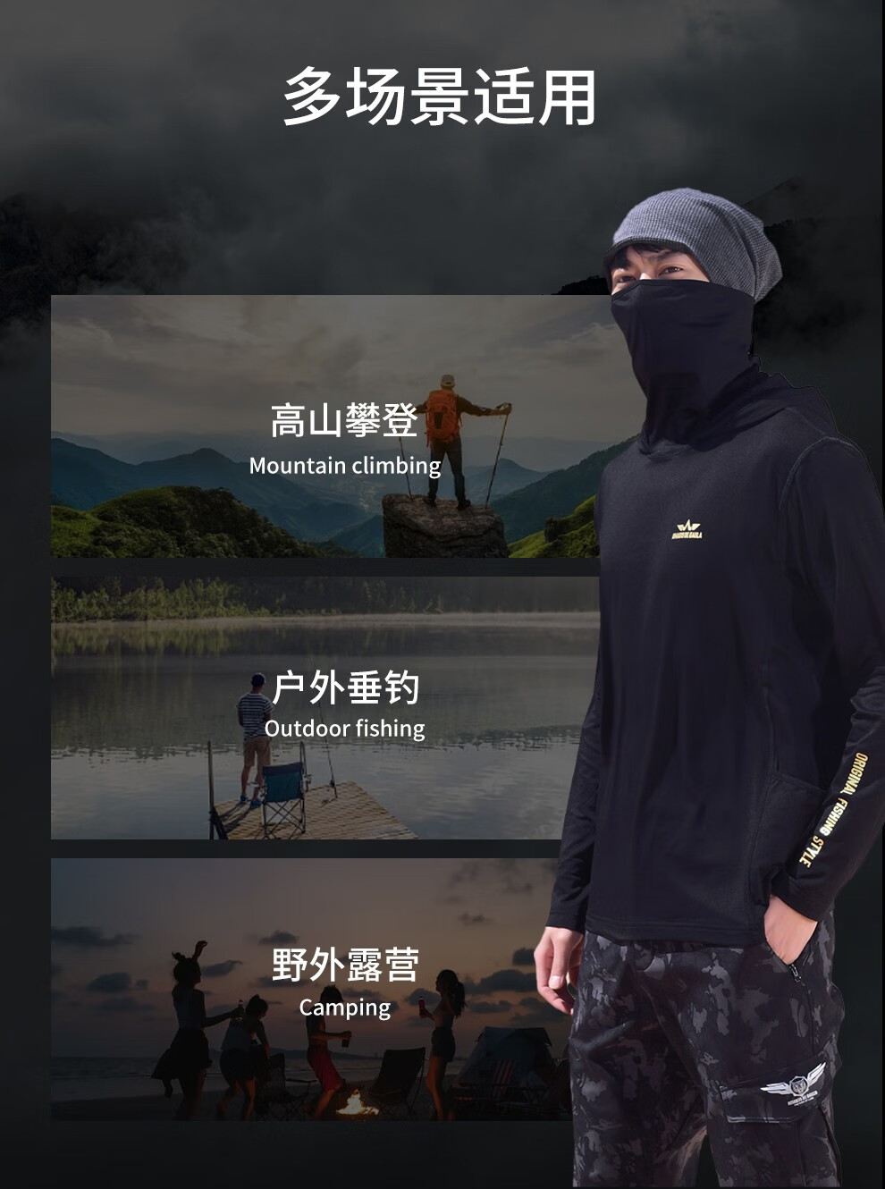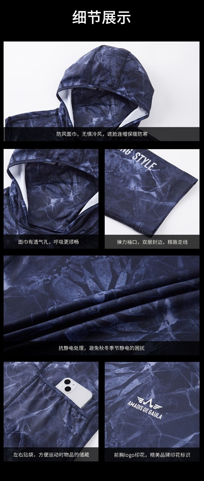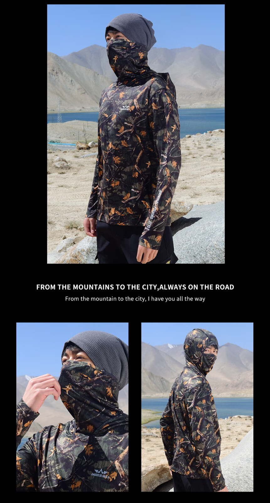 AMADIS DE GAULA fishing clothing men's new face-covering warm hooded pullover sweatshirt outdoor sports fishing clothing dark night camouflage (spring style) L