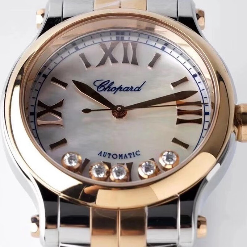 Chopard Swiss Watch Happy Sport Series Happy Diamond Automatic Mechanical Ladies Watch New Year Gift 278573-6013 Five Diamond Rose Gold Silver Plate 30mm