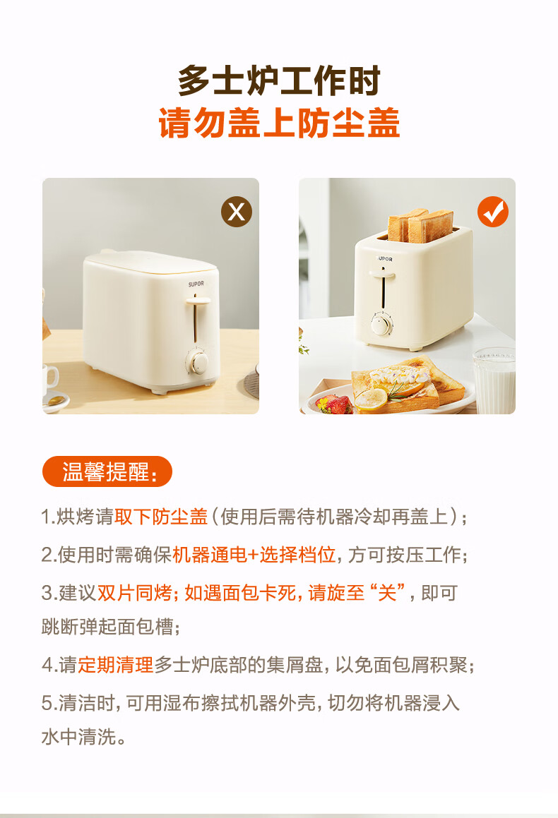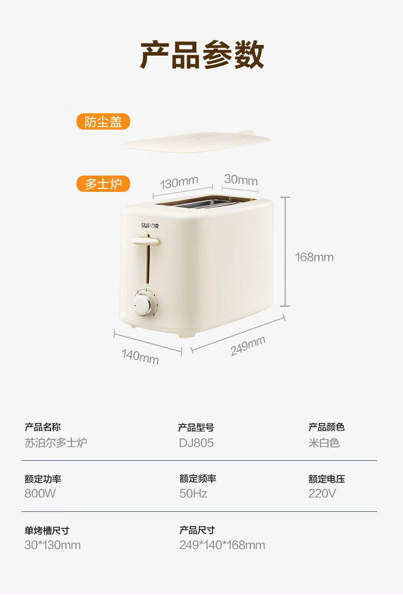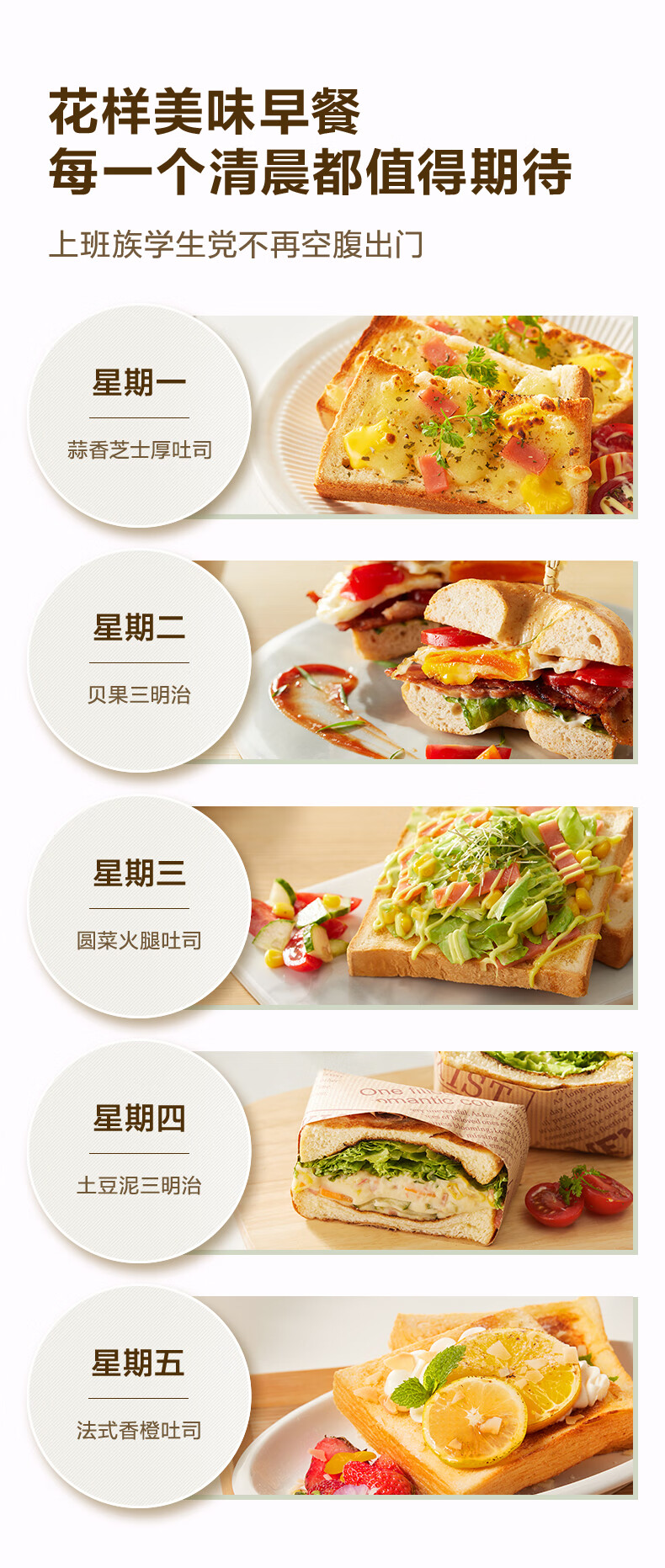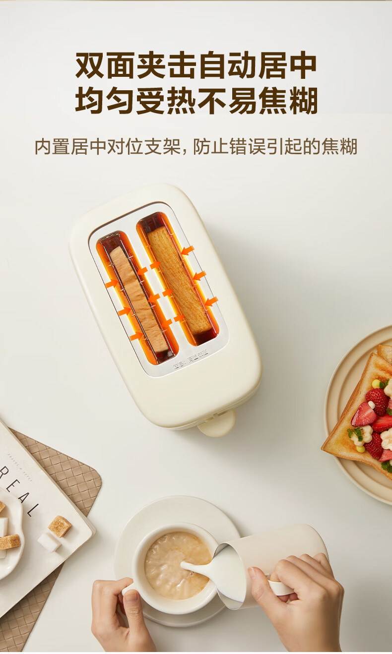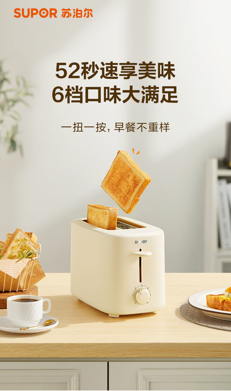 SUPOR Toaster Bread Maker Sandwich Bread Maker Fully Automatic Home Small Toaster 2-Slice Breakfast Intelligent Power-off Multi-Function Light Food Machine DJ805