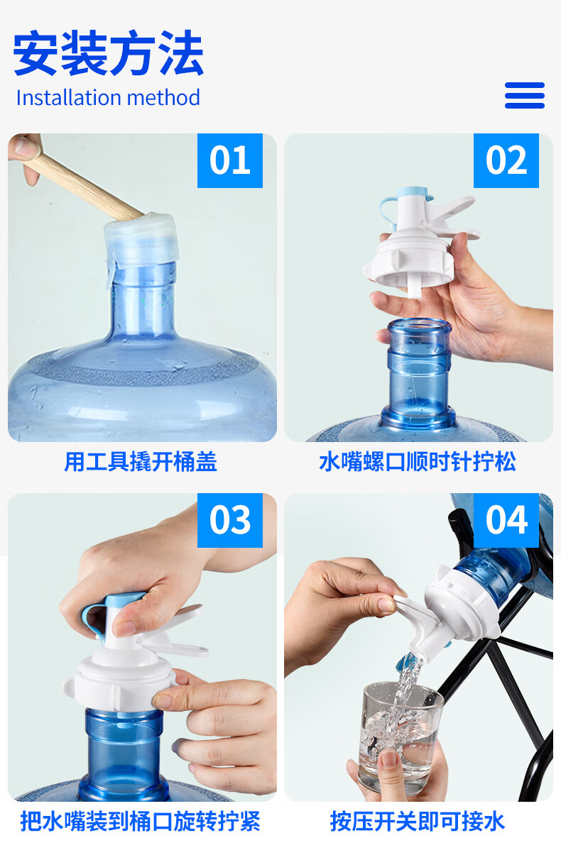 Bottled water spout press pure water bucket faucet switch snap-on mineral water inverted drinking water stand new snap-on faucet