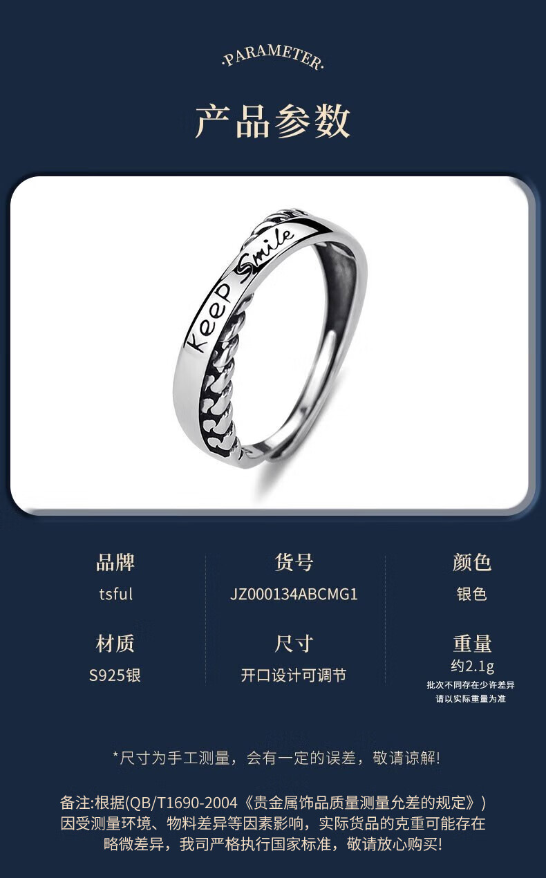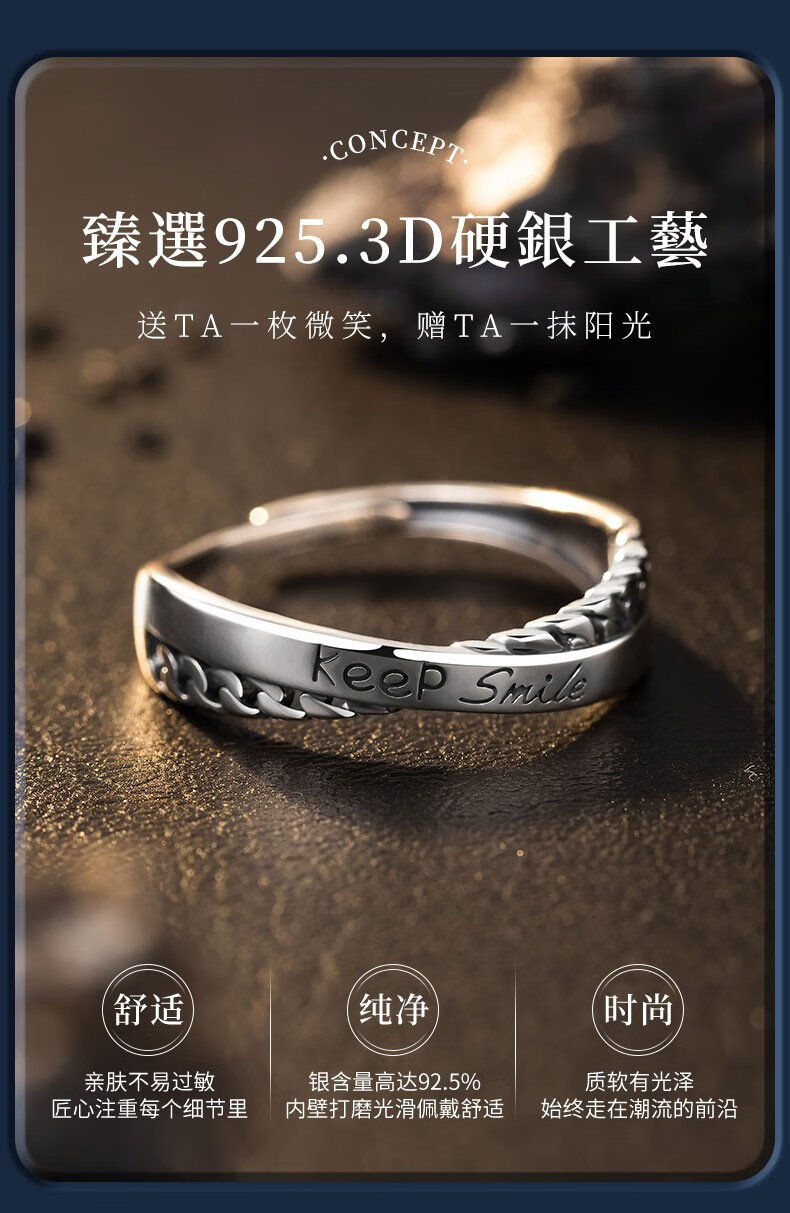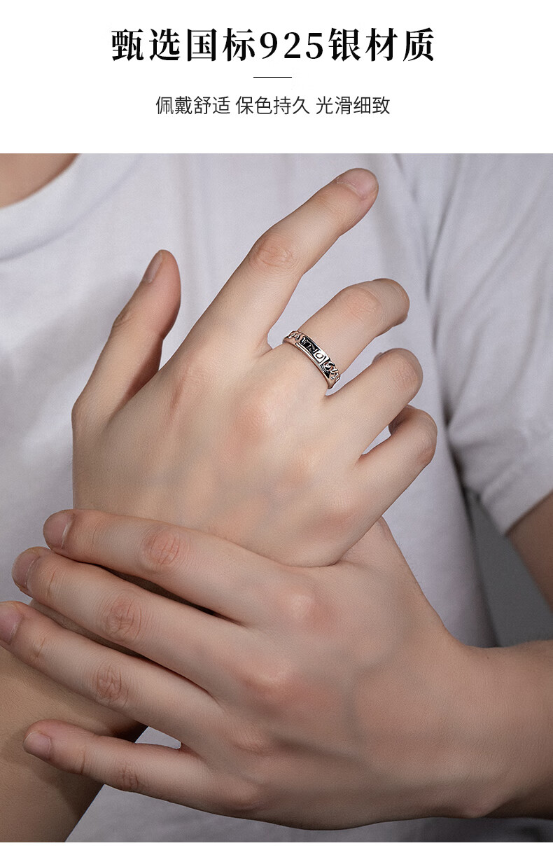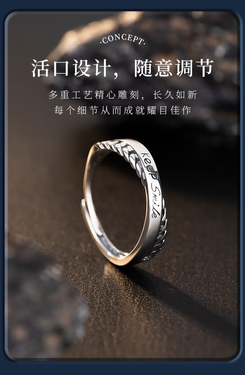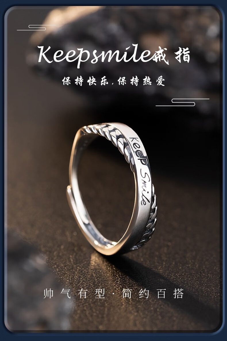 Tsful925 silver ring men's trendy index finger ring simple fashion lettering tail ring brother birthday gift male student keep smile men's ring