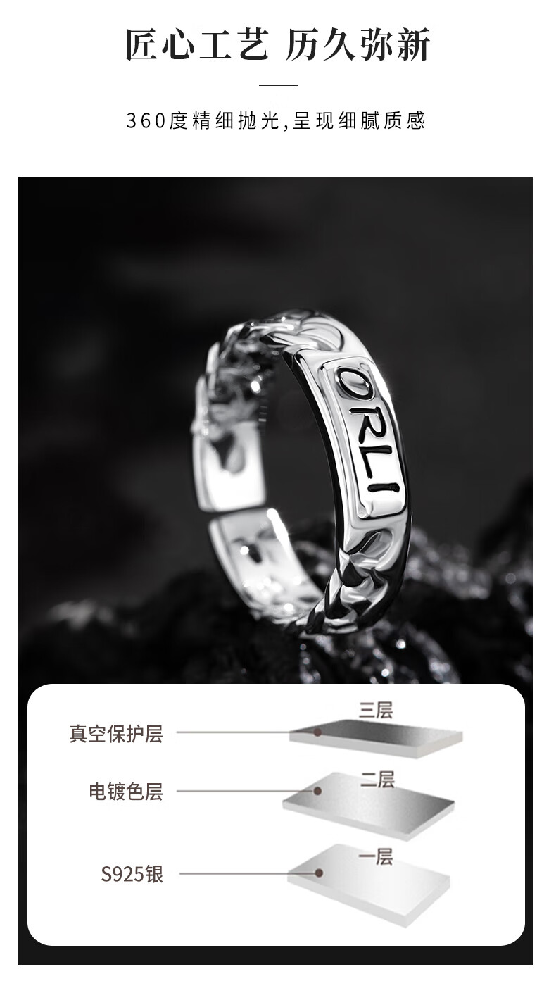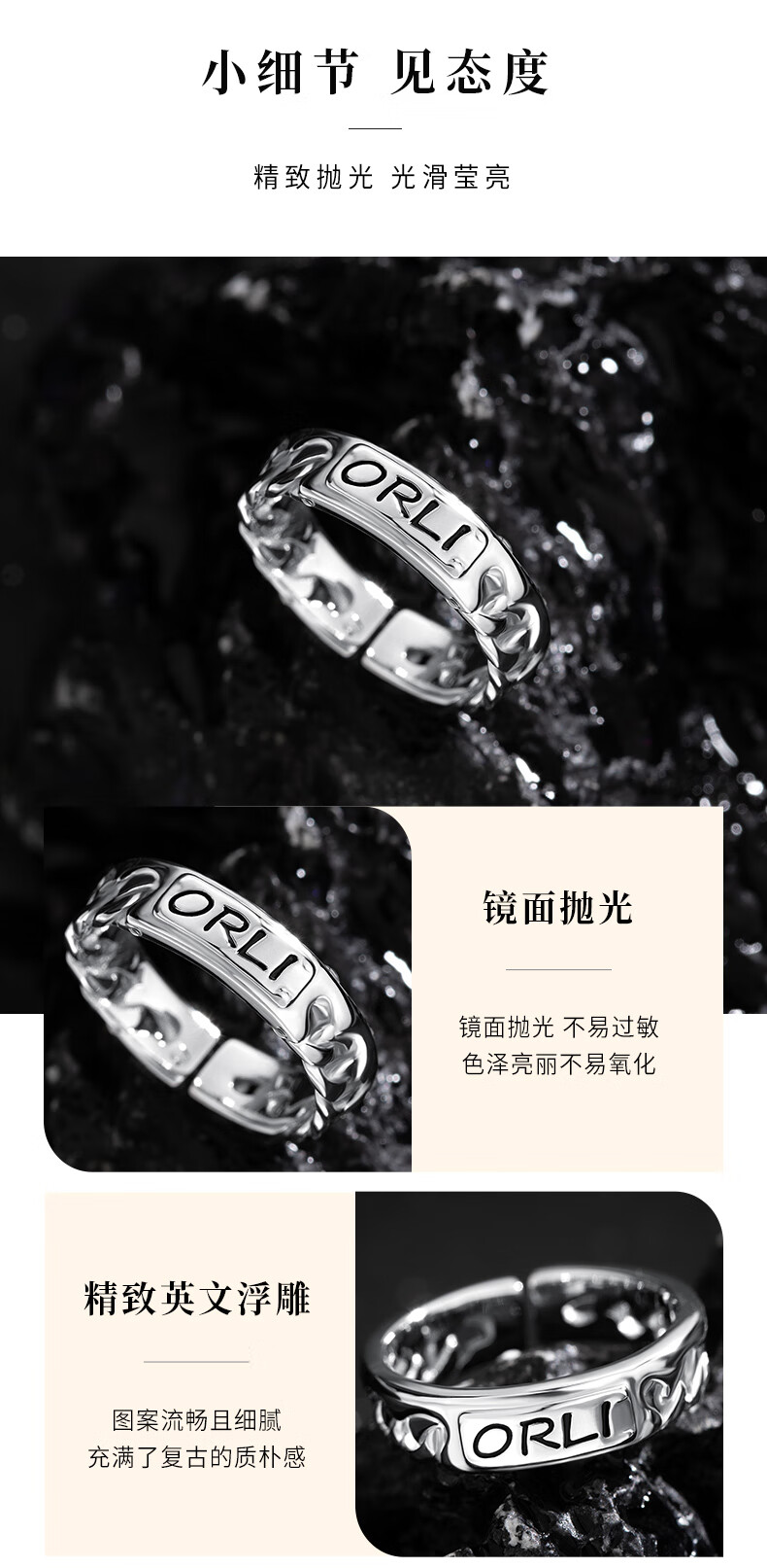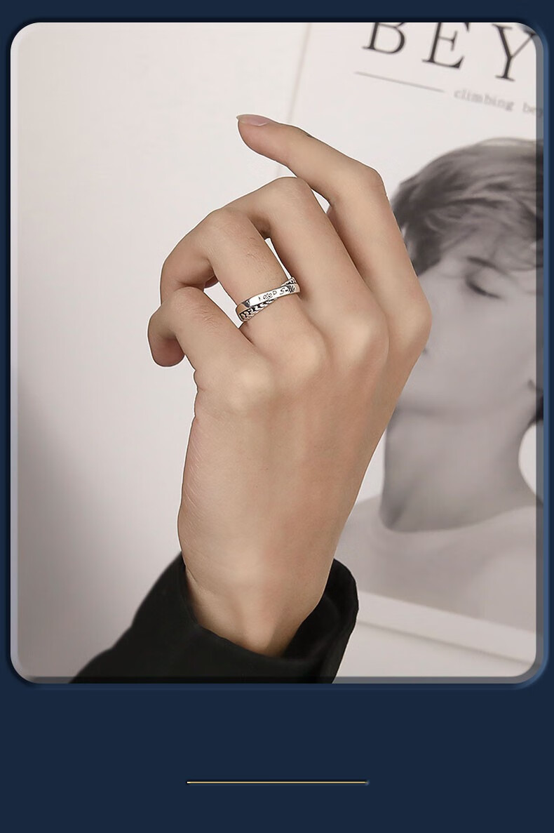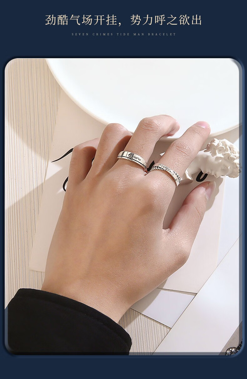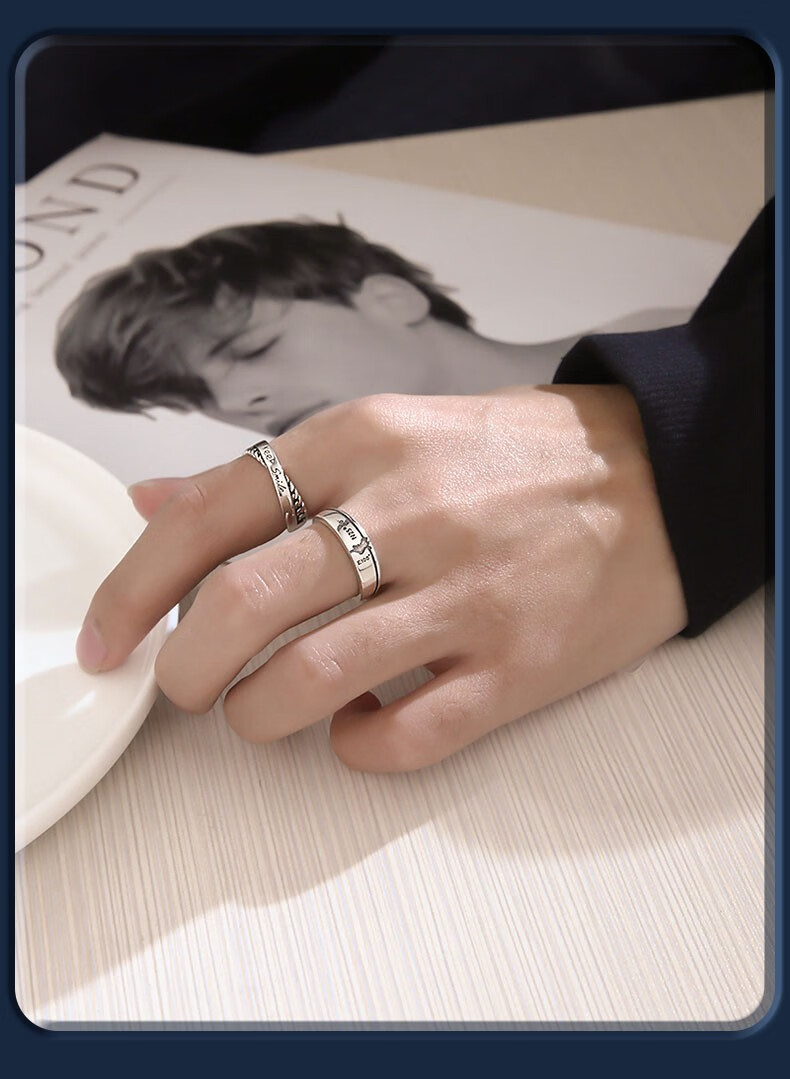 Tsful925 silver ring men's trendy index finger ring simple fashion lettering tail ring brother birthday gift male student keep smile men's ring