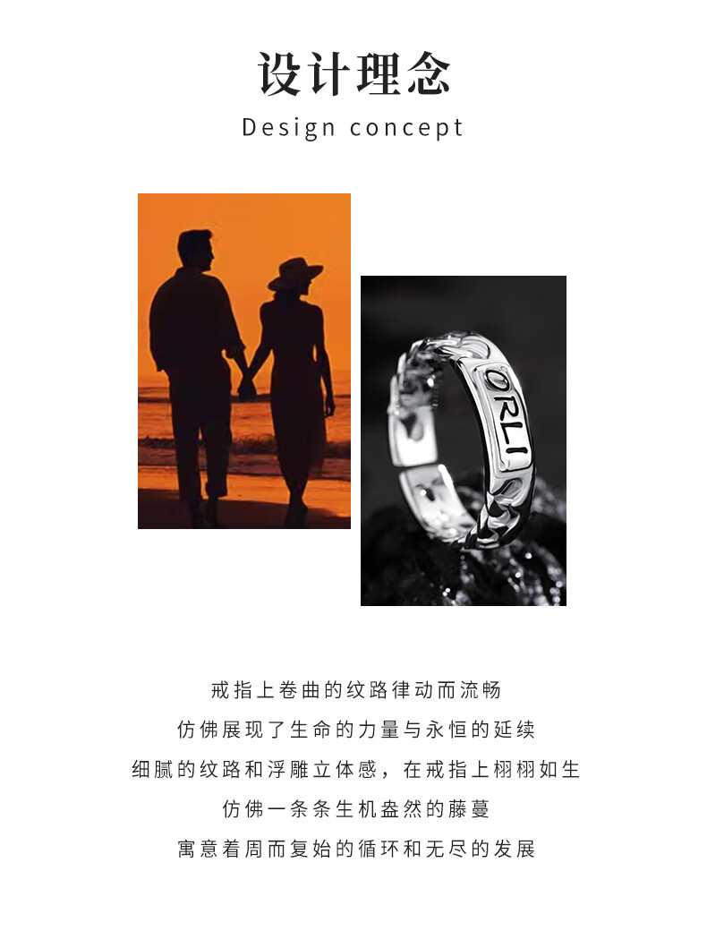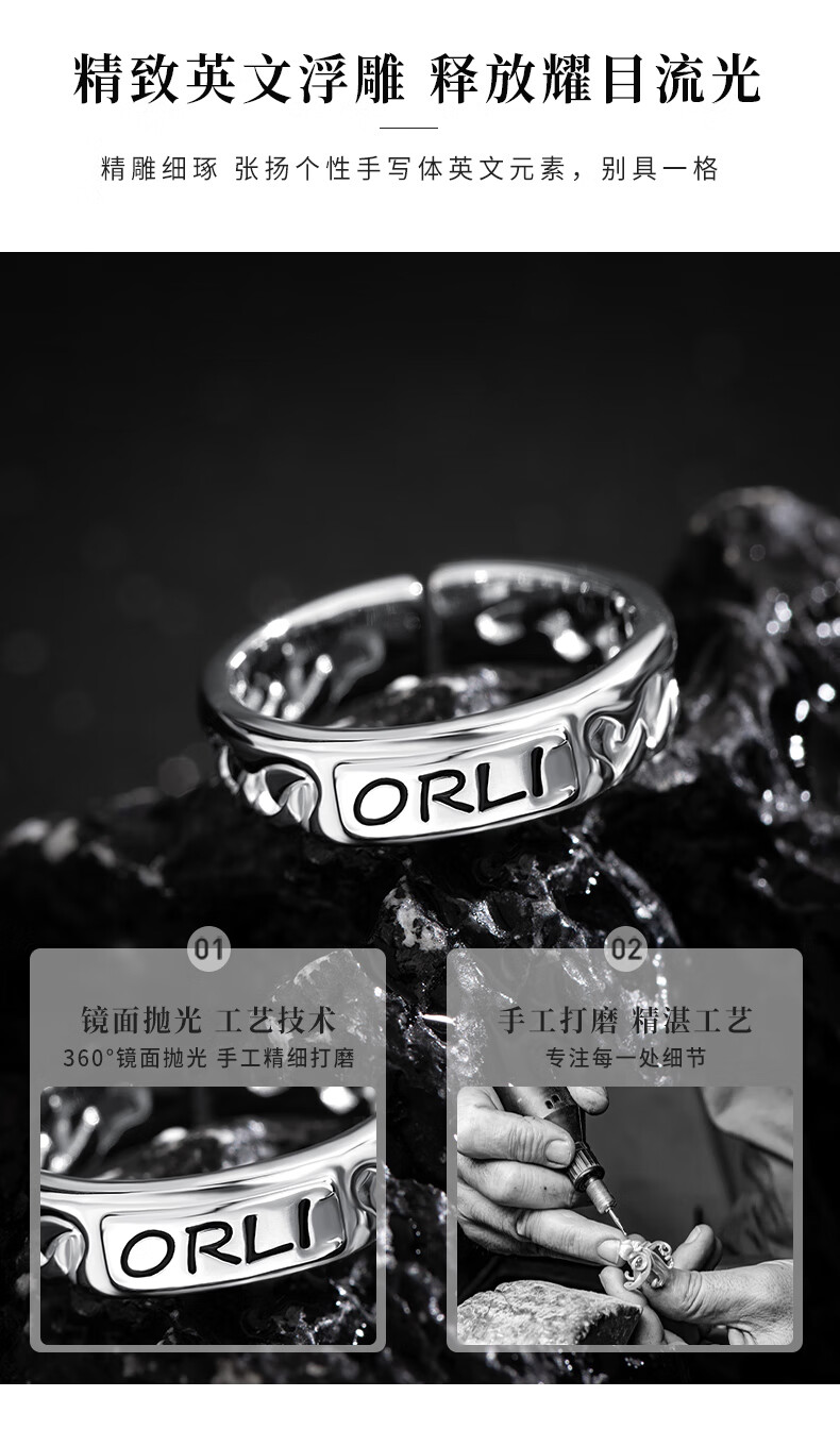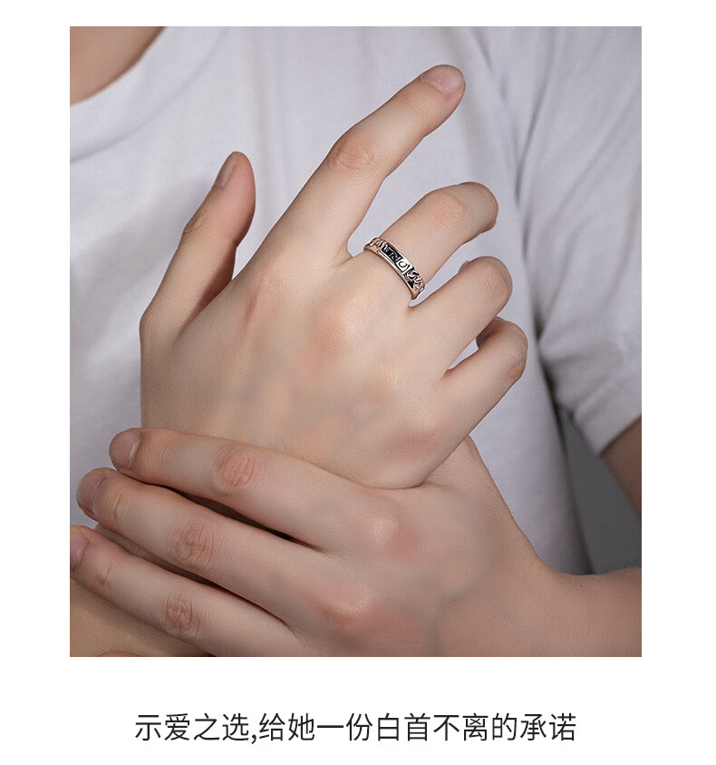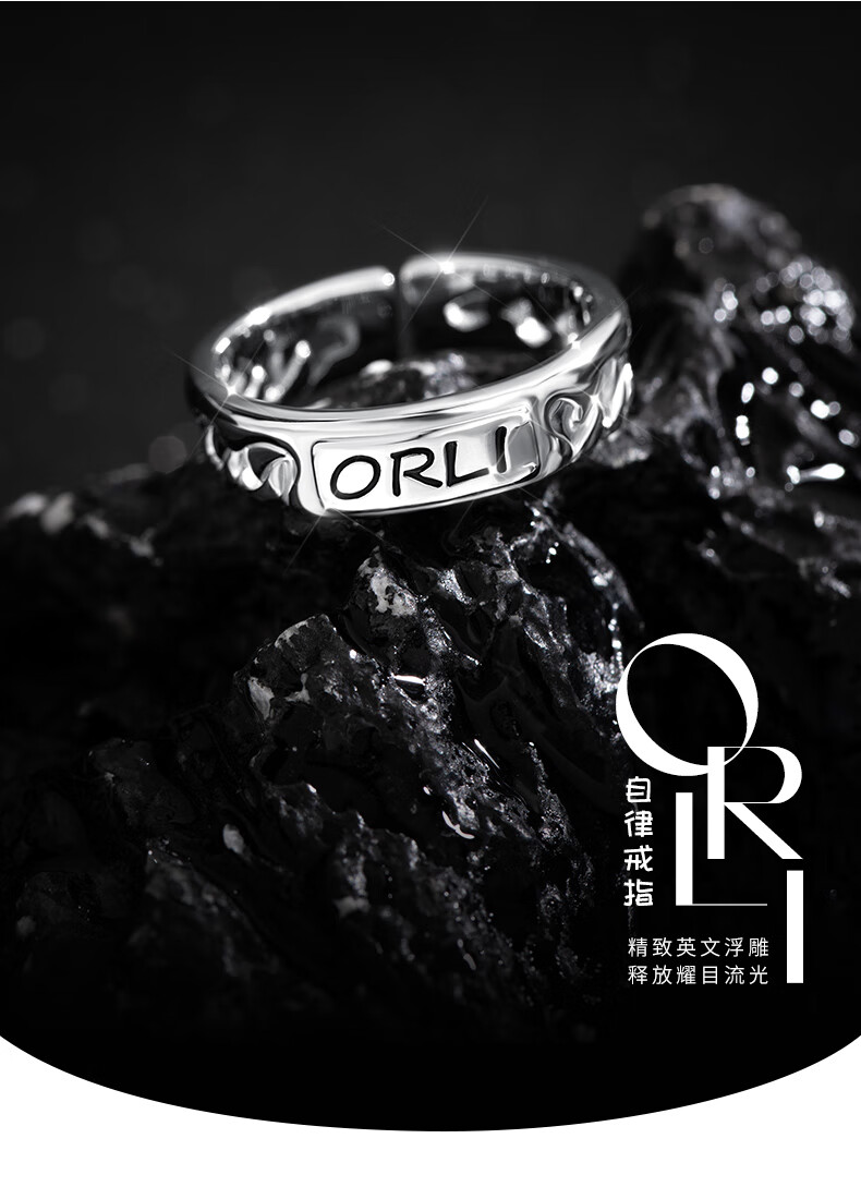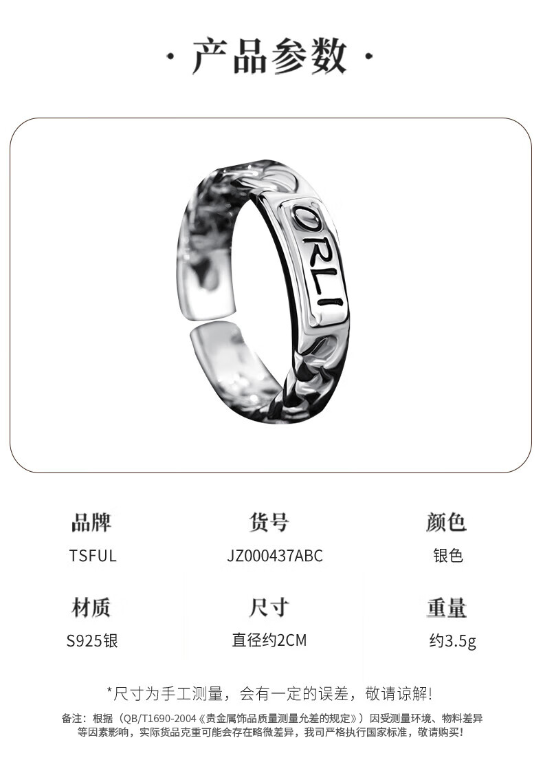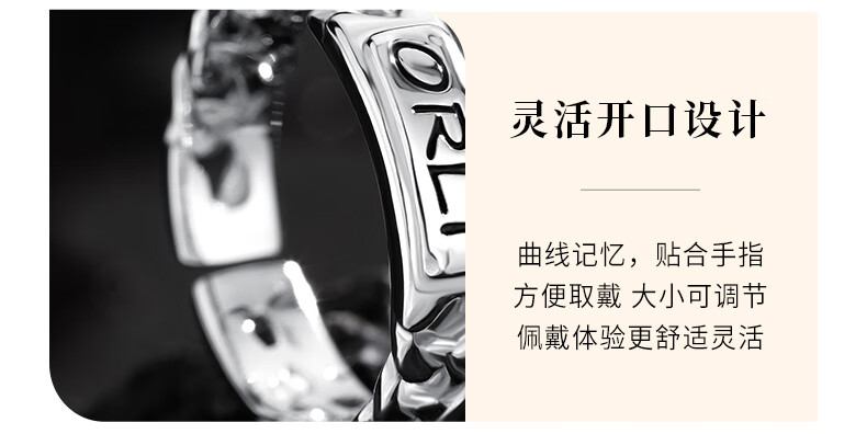 Tsful925 silver ring men's trendy index finger ring simple fashion lettering tail ring brother birthday gift male student keep smile men's ring