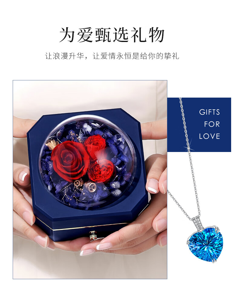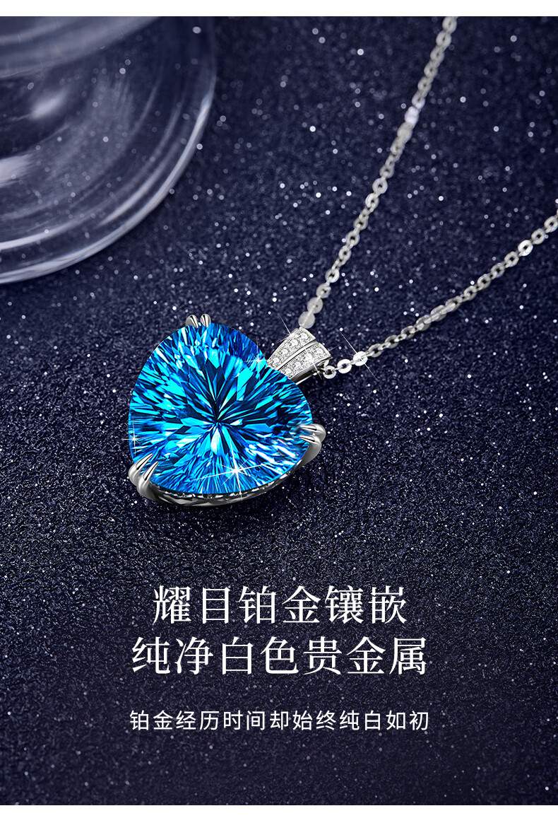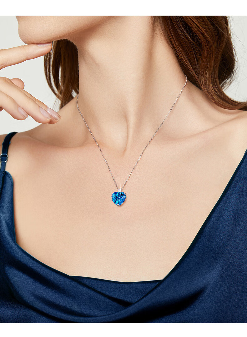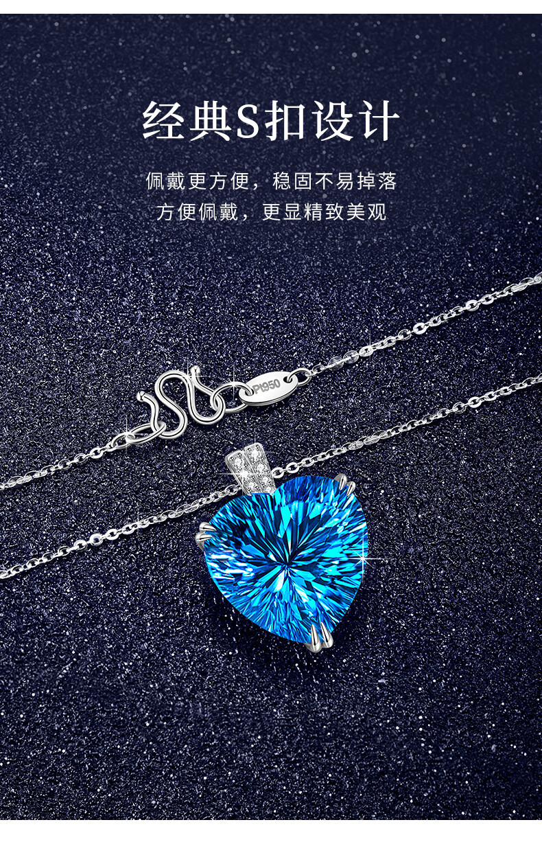 SGE Ocean Heart Necklace for Women 13 carats Millennium Topaz pt950 Platinum Valentine's Day Gift Platinum Ocean Heart Necklace + Eternal Flower Gift Box
