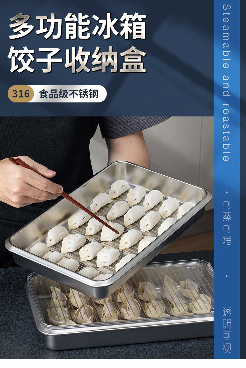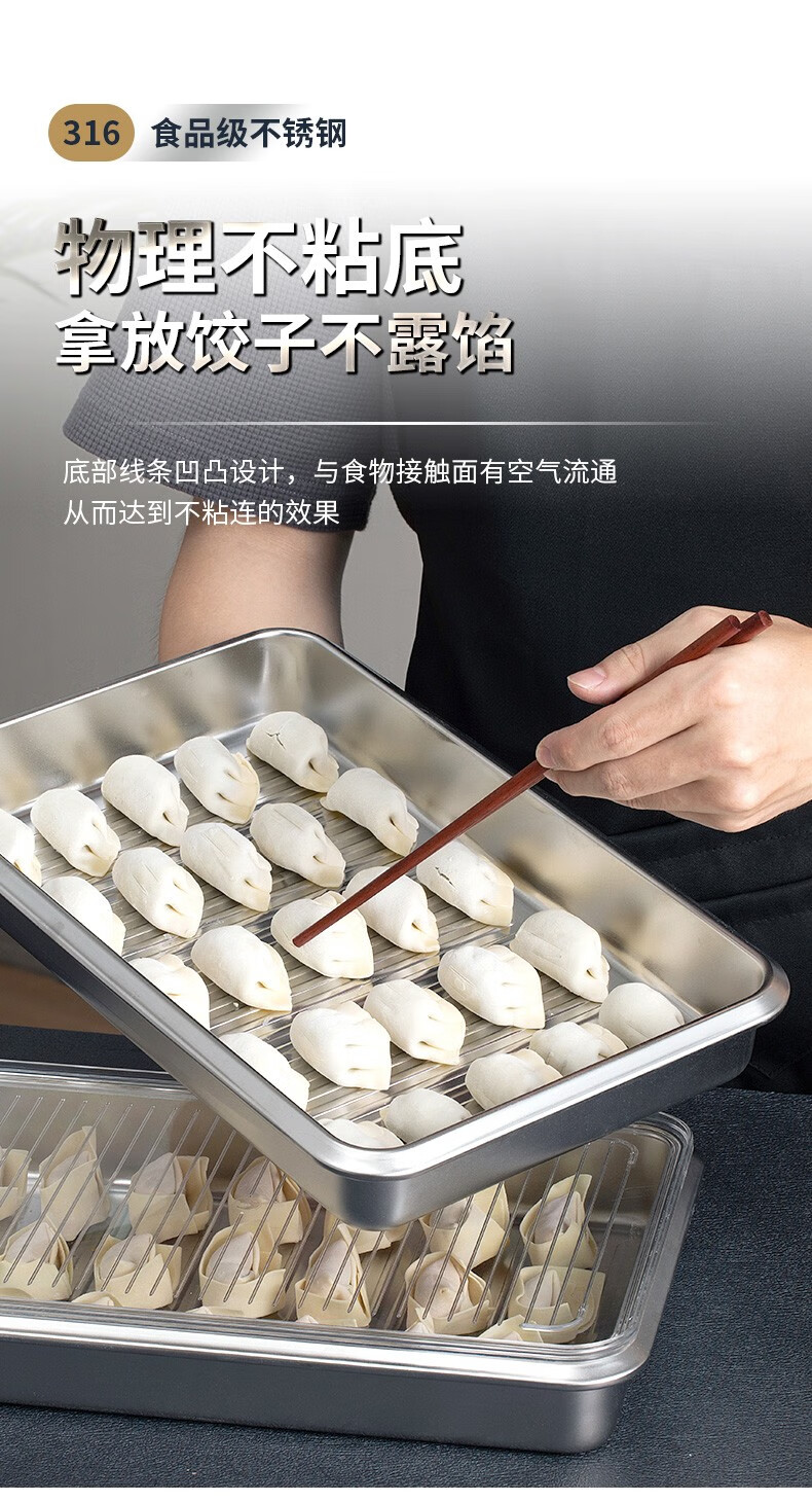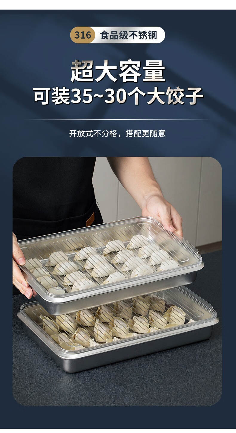 Hanlong (HANLONG) Finnish rice bowl 316 stainless steel dumpling box wonton dumpling storage box quick-frozen freezer box refrigerator food grade two pack
