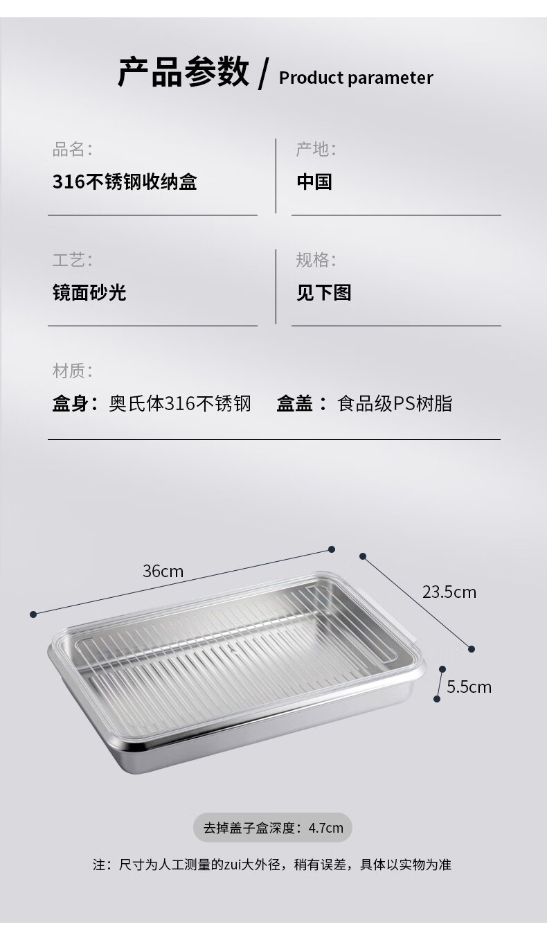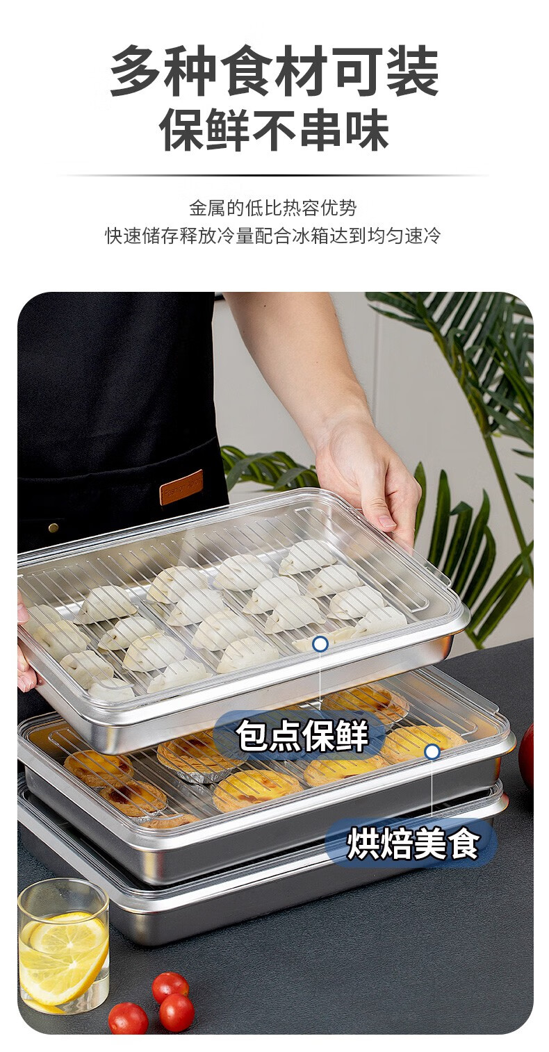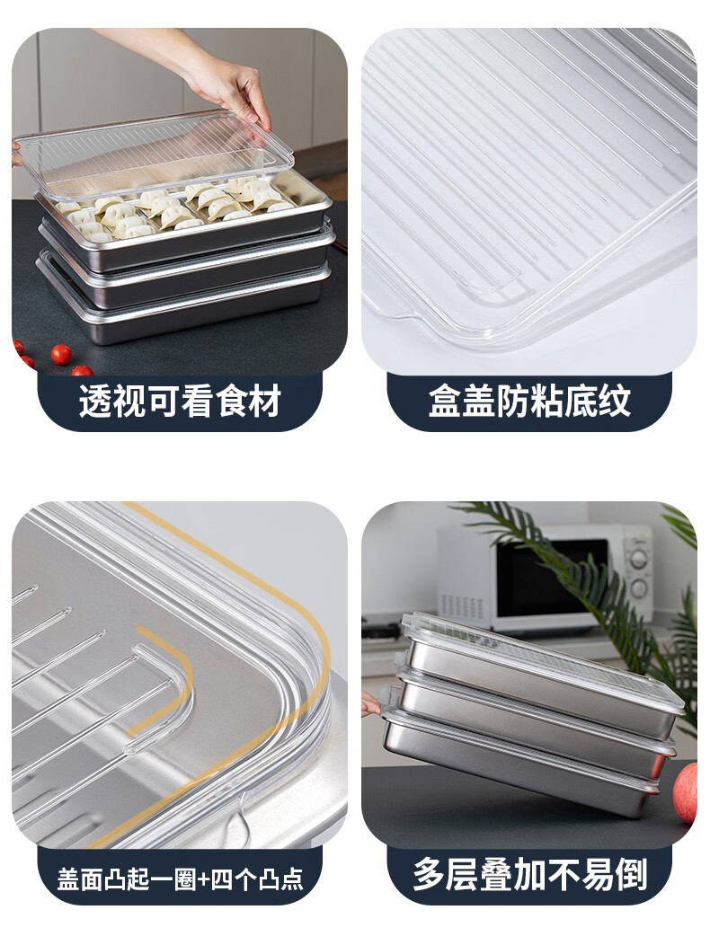 Hanlong (HANLONG) Finnish rice bowl 316 stainless steel dumpling box wonton dumpling storage box quick-frozen freezer box refrigerator food grade two pack
