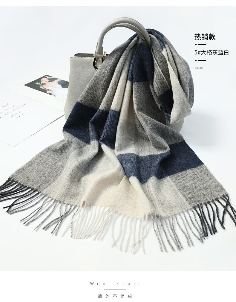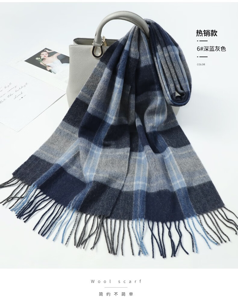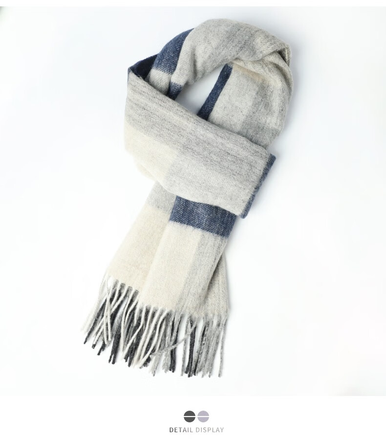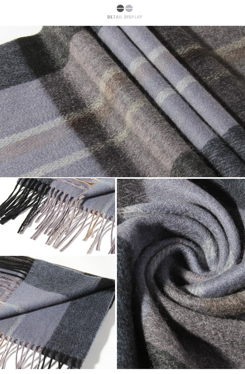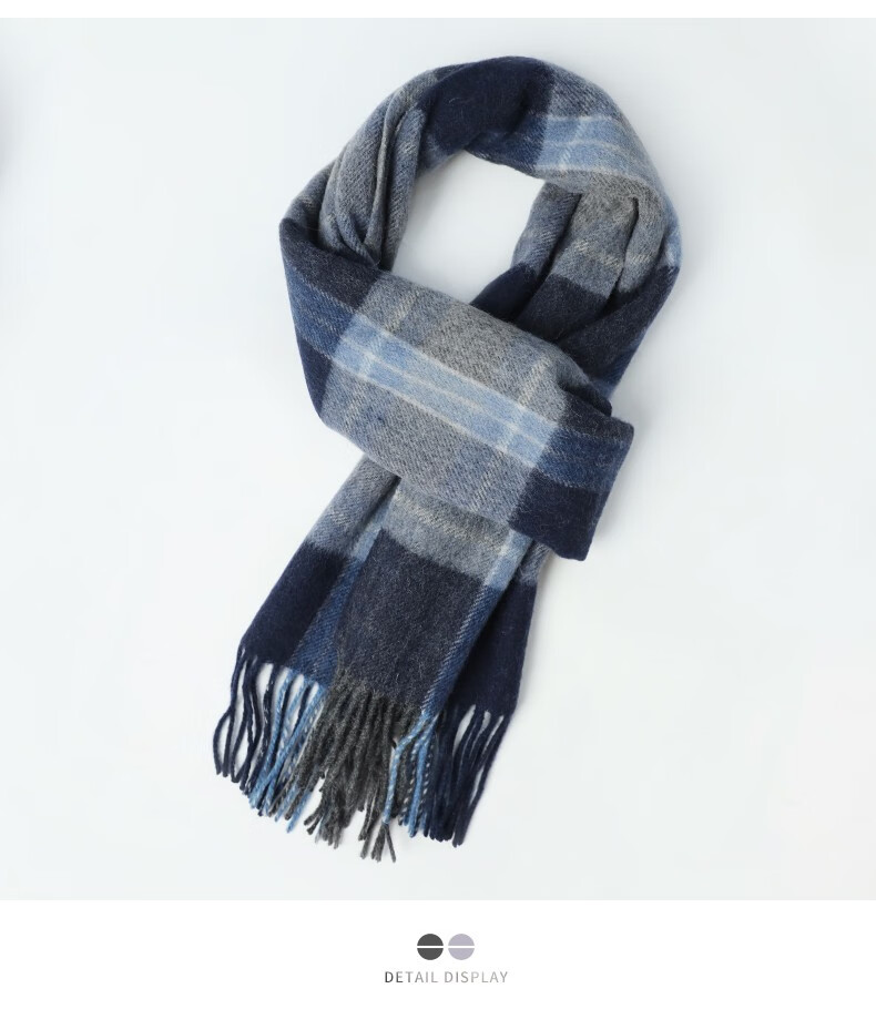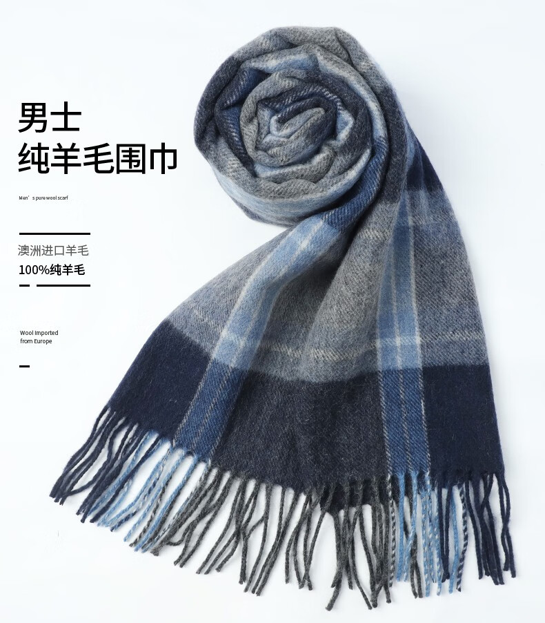 The Da Vinci Code pure wool scarf for men in autumn and winter new high-end versatile warm scarf as a birthday gift for boyfriend and husband 5# large grid gray blue and white