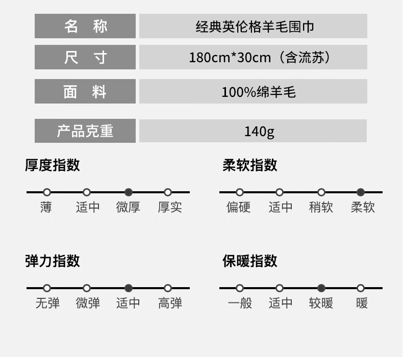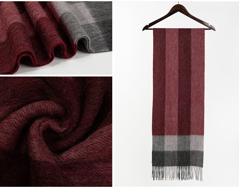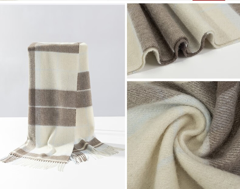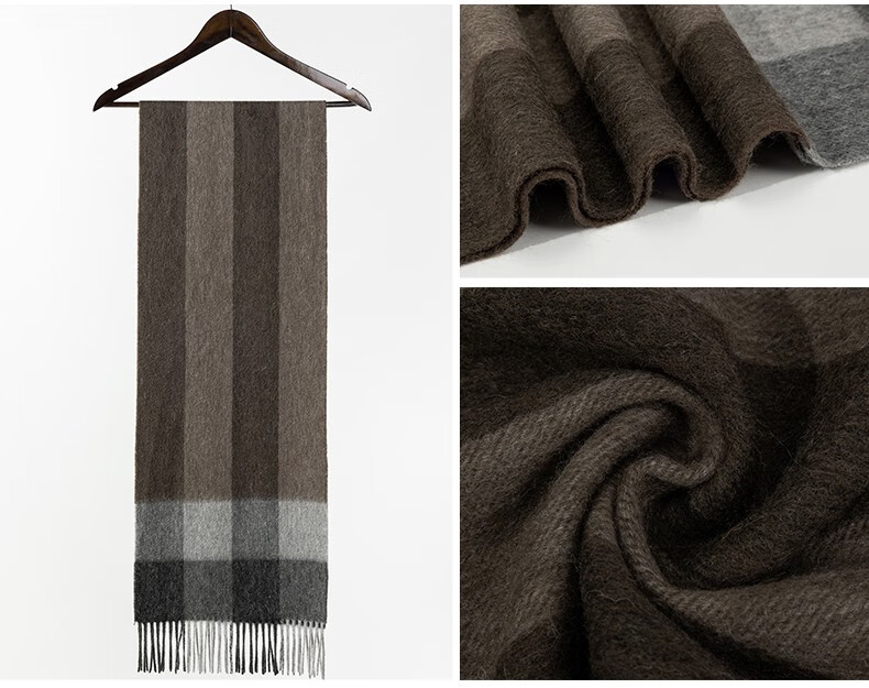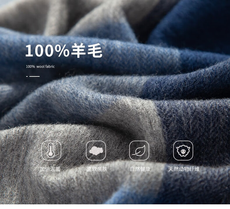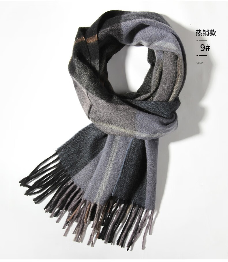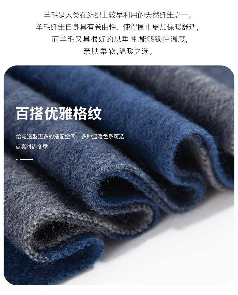 The Da Vinci Code pure wool scarf for men in autumn and winter new high-end versatile warm scarf as a birthday gift for boyfriend and husband 5# large grid gray blue and white
