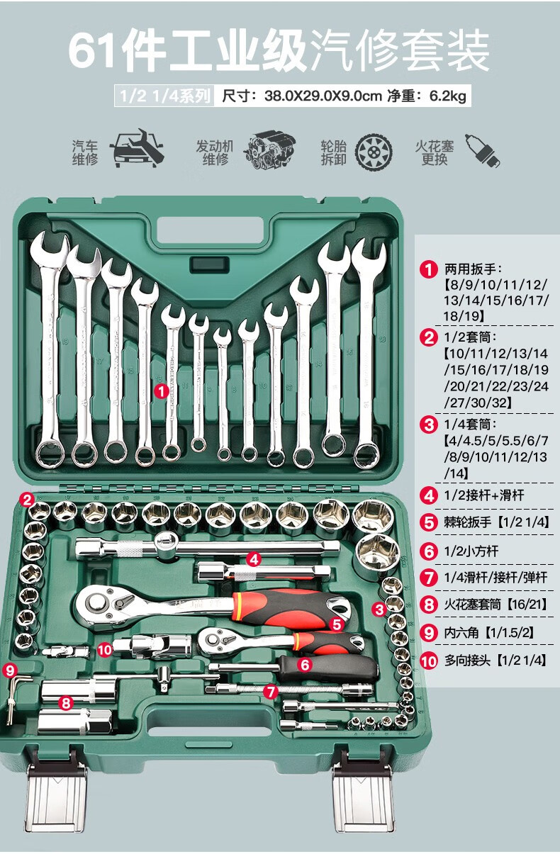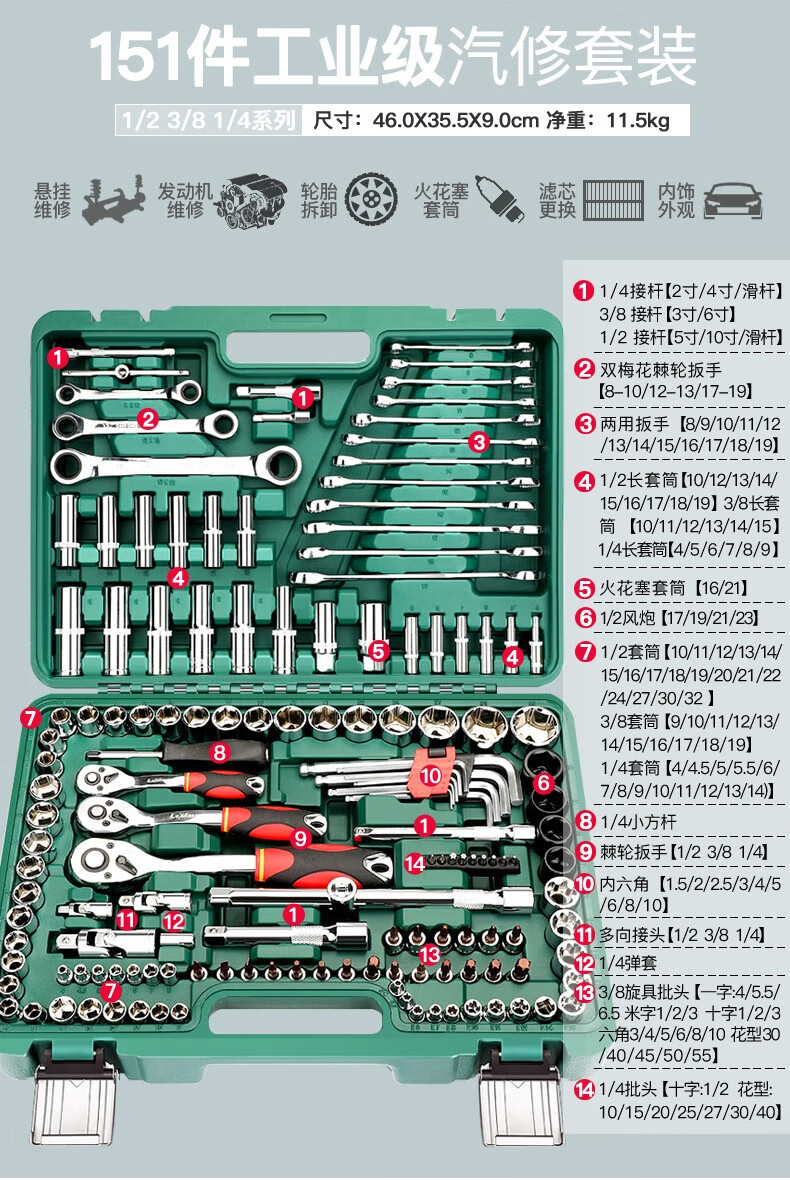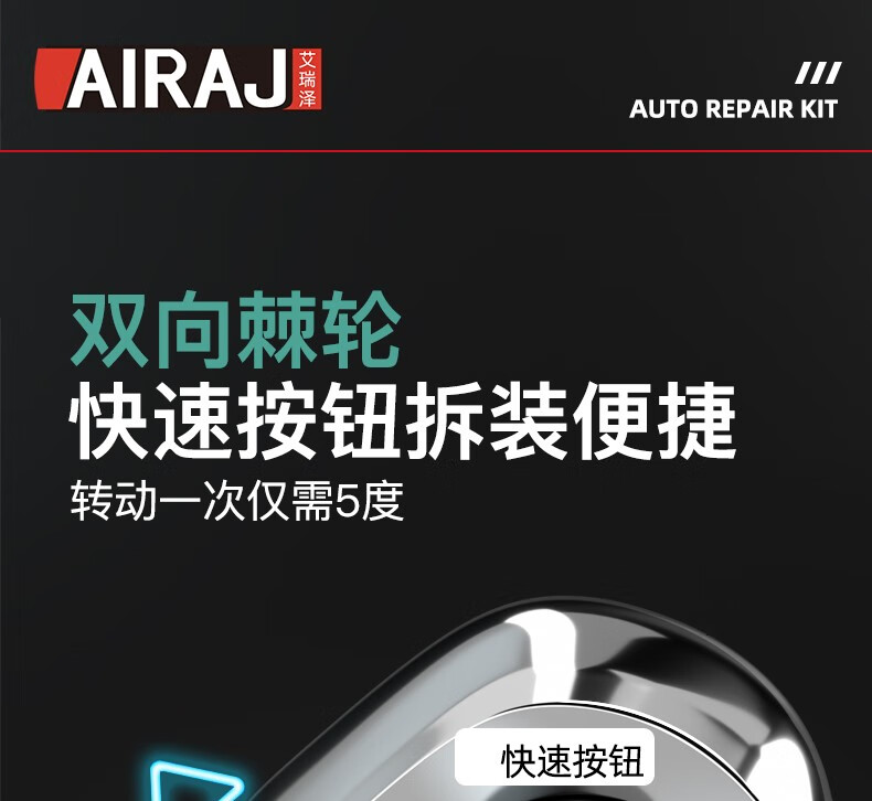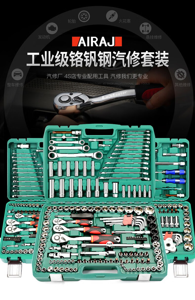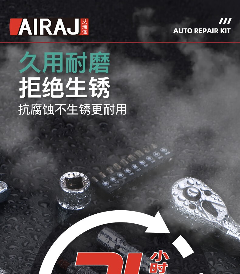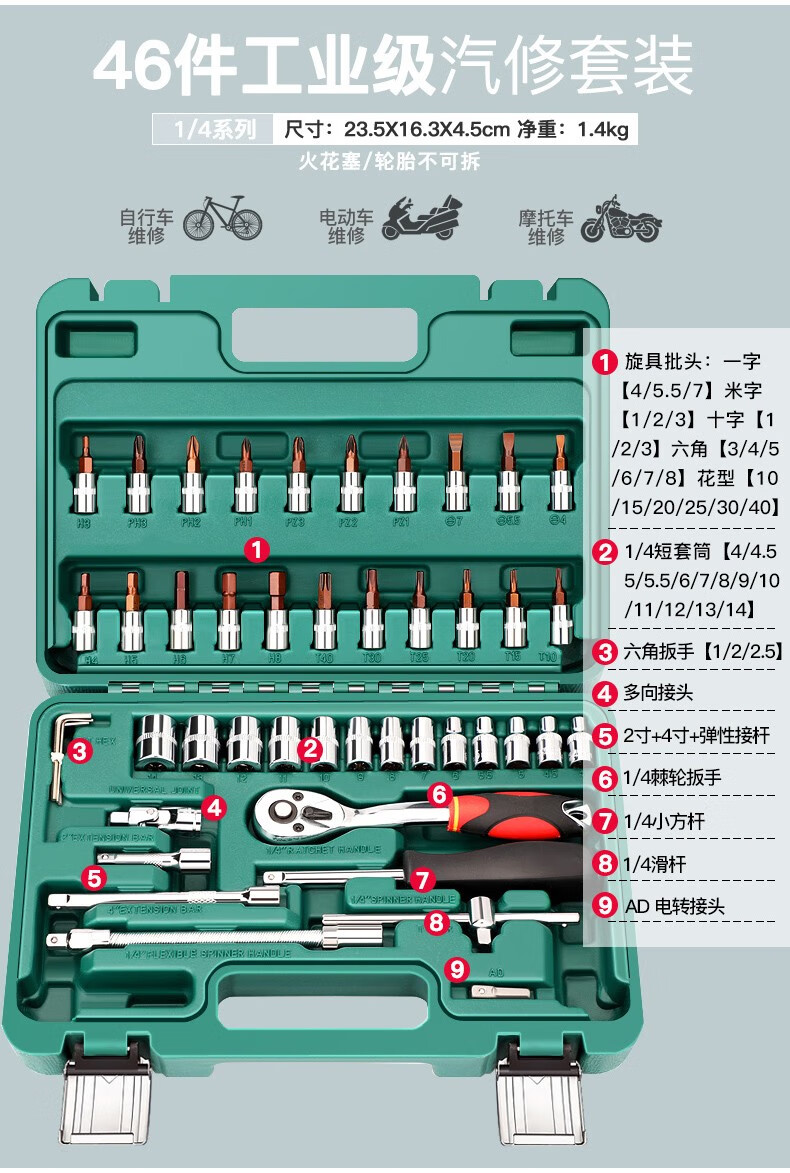艾瑞泽汽修工具套装套筒扳手棘轮汽车维修组合修车工具箱工业级小飞 直柄经济款46件套