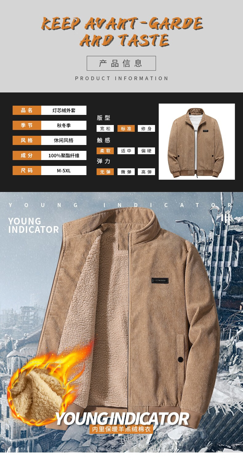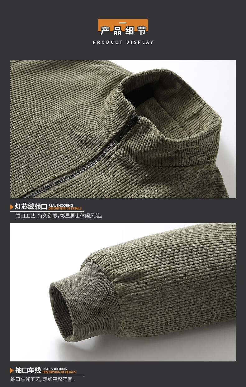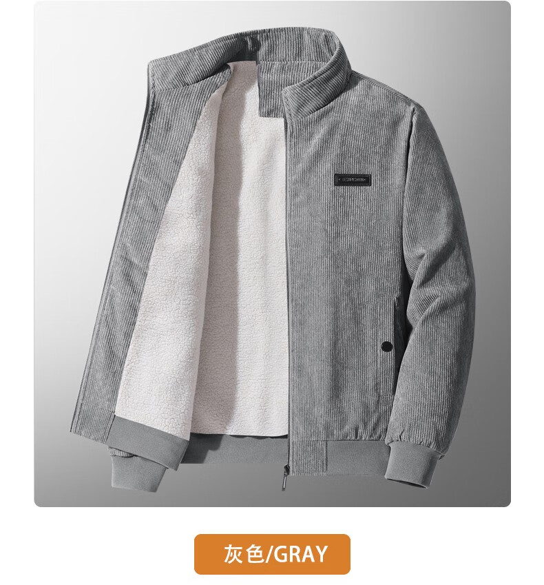 Gu Qian corduroy jacket men's winter thickened velvet warm casual stand-up collar jacket men's loose tops men's coat gray 2XL (130-150Jin Jin equals 0.5 kg)