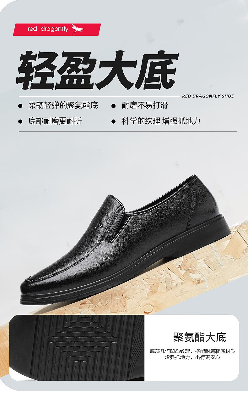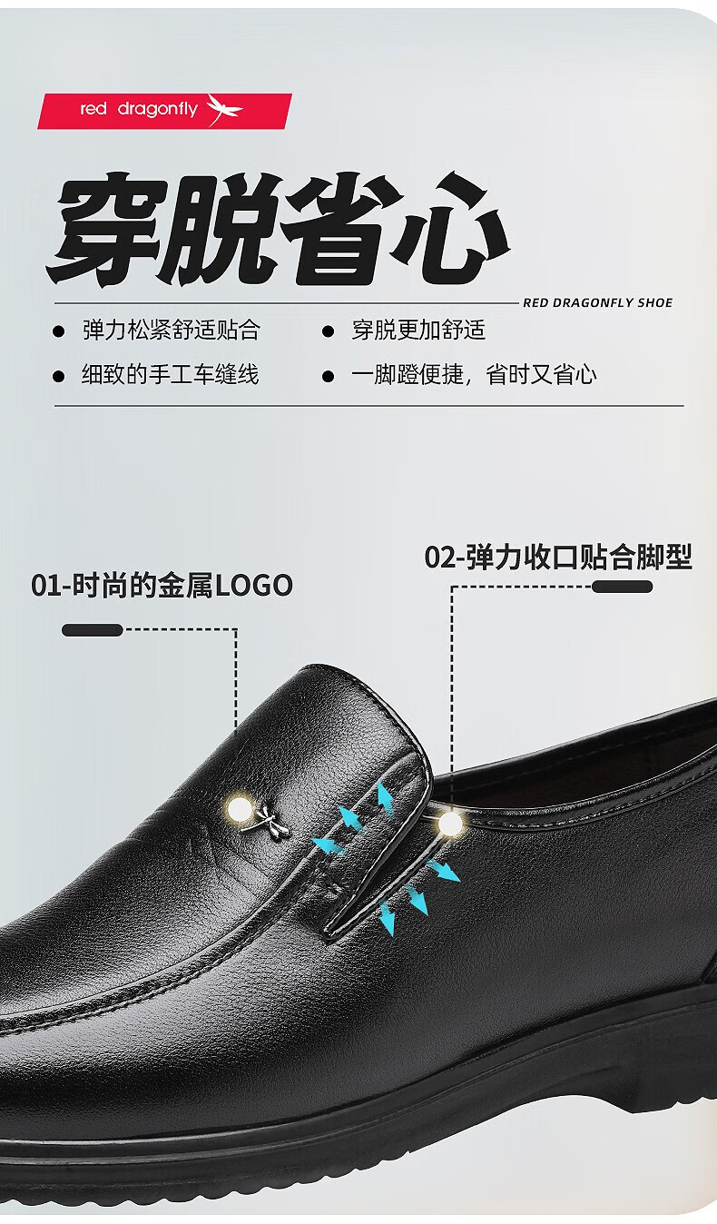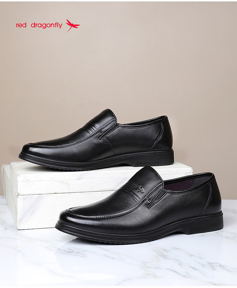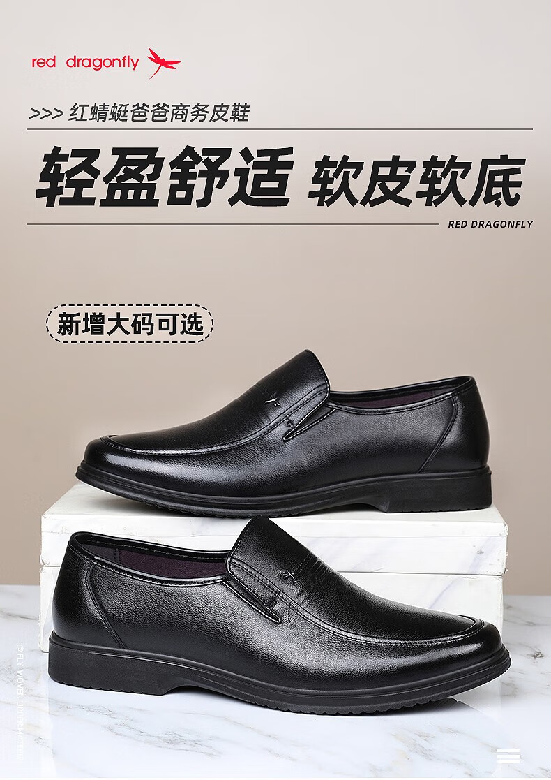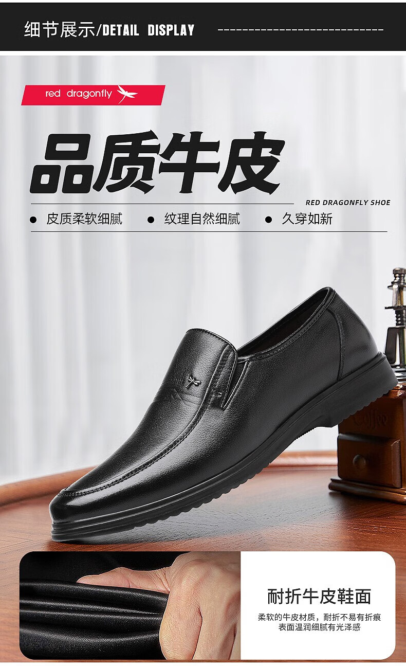 Red Dragonfly Men's Shoes Four Seasons Men's Leather Shoes Men's Breathable Cowhide Large Size Business Casual Shoes Formal Shoes Slip-on Dad Shoes Black Size 43