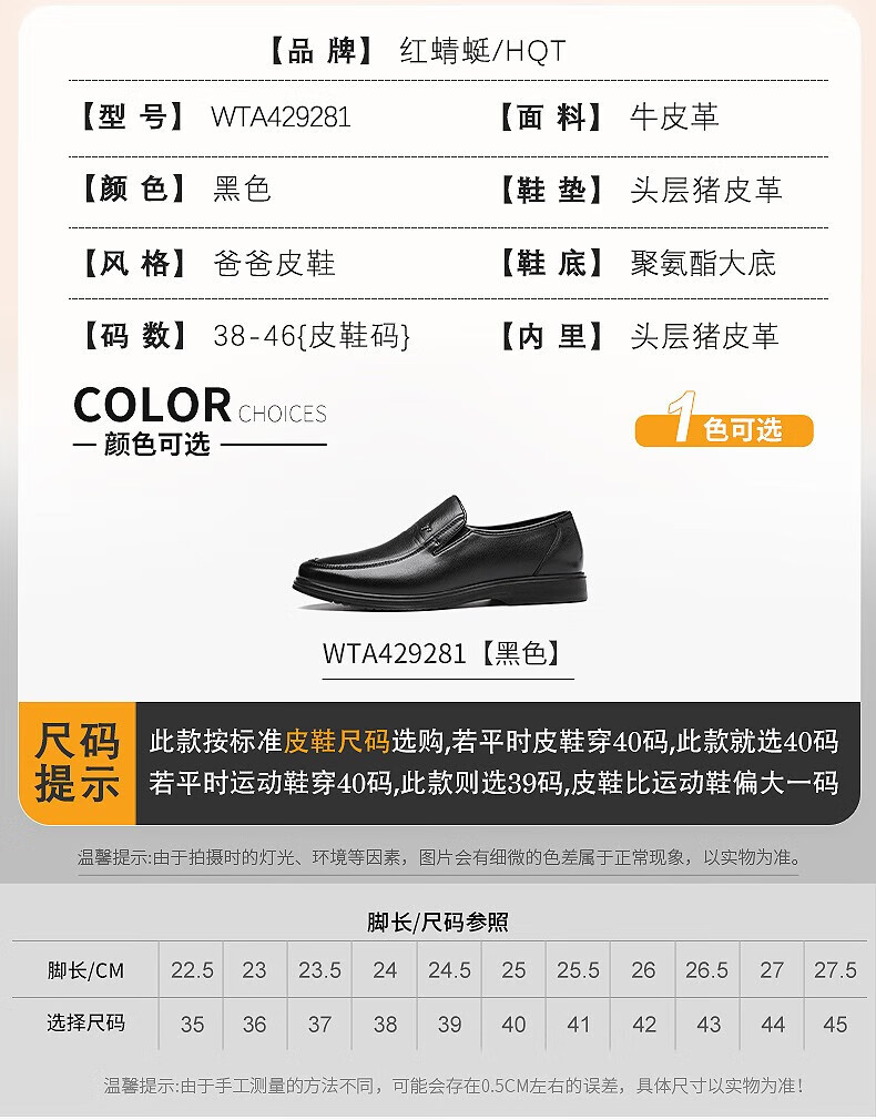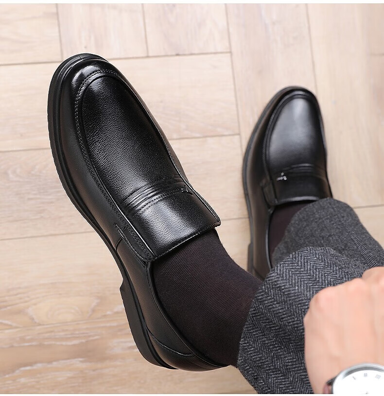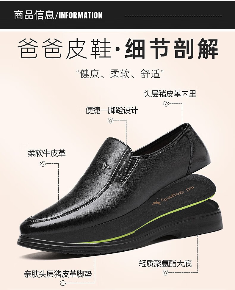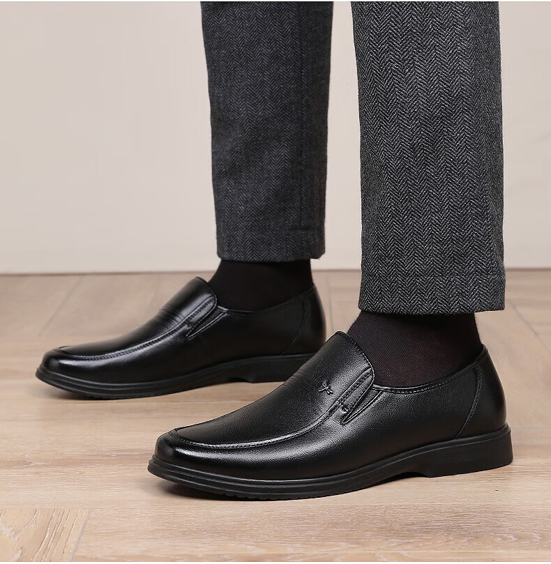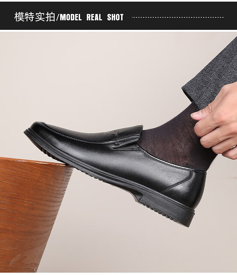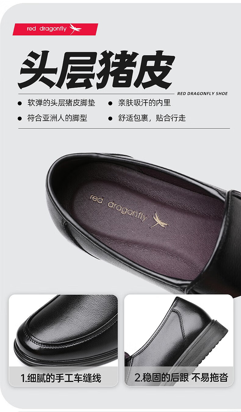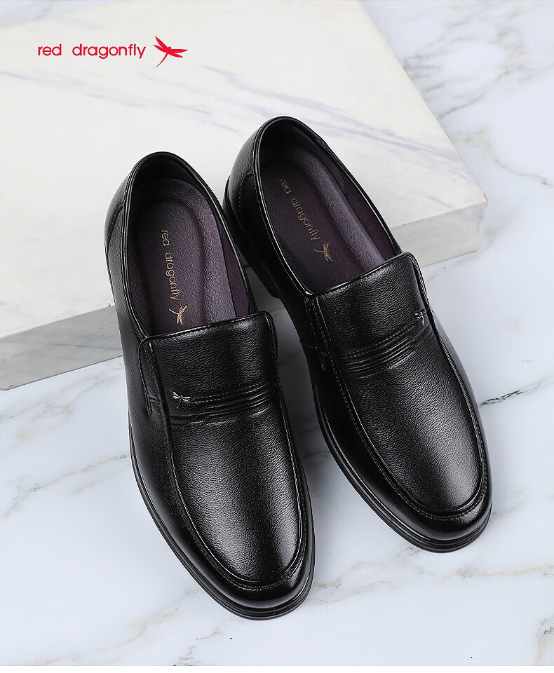 Red Dragonfly Men's Shoes Four Seasons Men's Leather Shoes Men's Breathable Cowhide Large Size Business Casual Shoes Formal Shoes Slip-on Dad Shoes Black Size 43