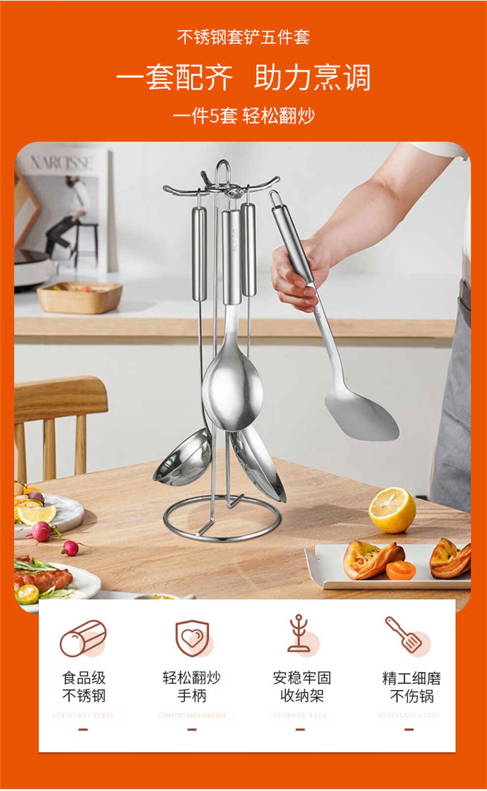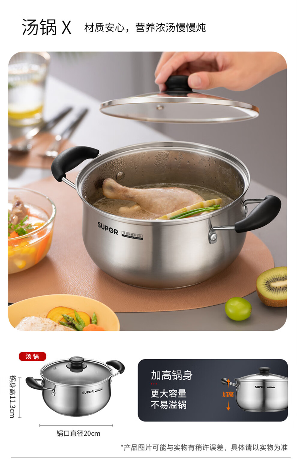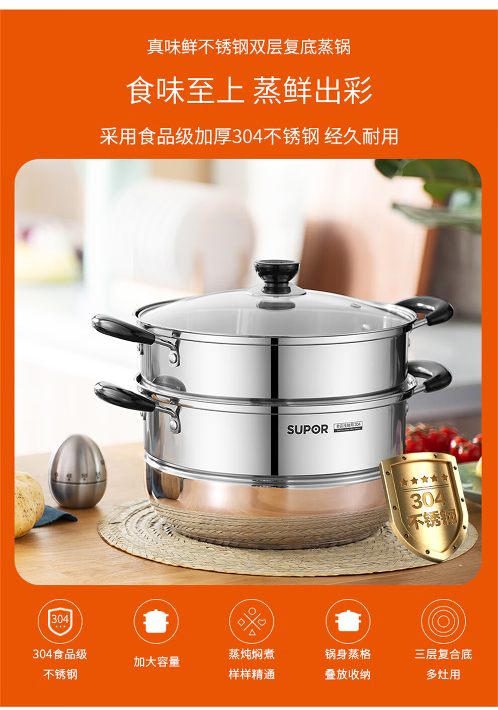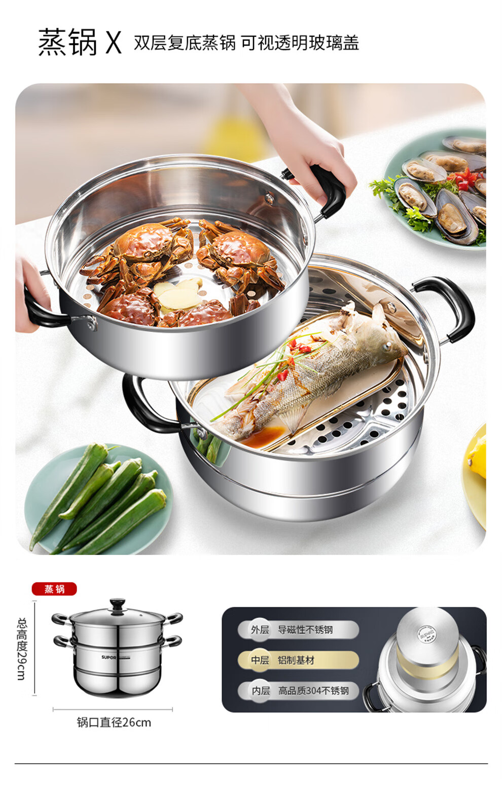 SUPOR pot set, food-grade stainless steel kitchenware set, wok, non-stick wok, frying pan, soup pot, steamer, pressure cooker, high-quality stainless steel non-stick combination, 17-piece set