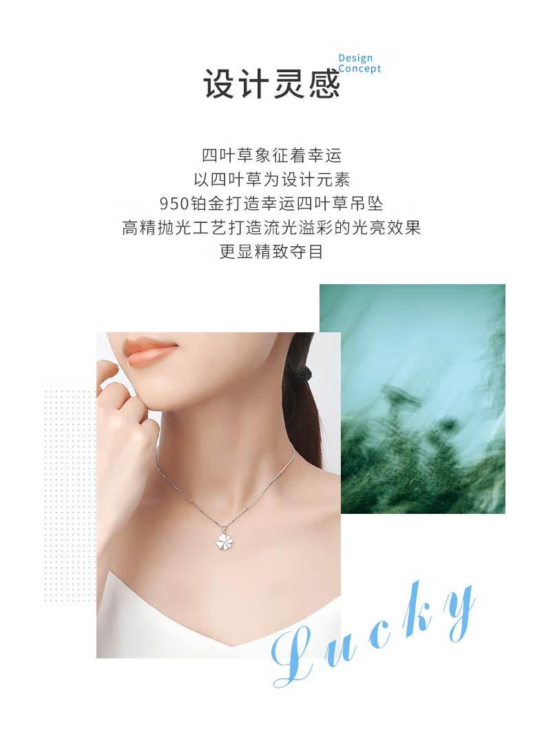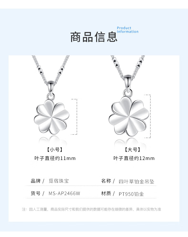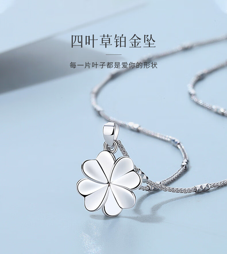 Misu PT950 platinum four-leaf clover pendant for women, platinum necklace, fashionable confession, birthday gift for girlfriend, small size 0.9-1.1g + delivery silver chain + free engraving