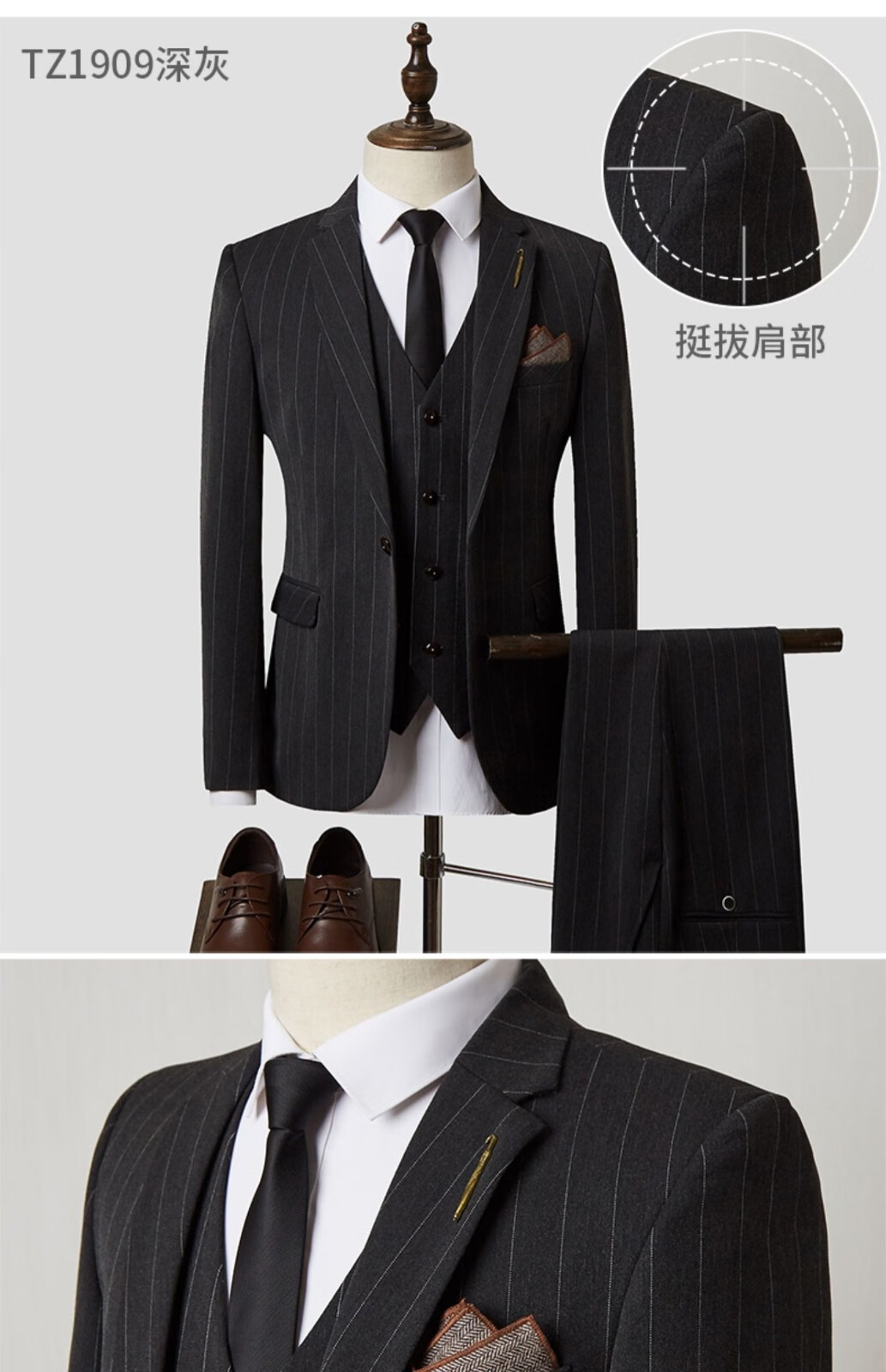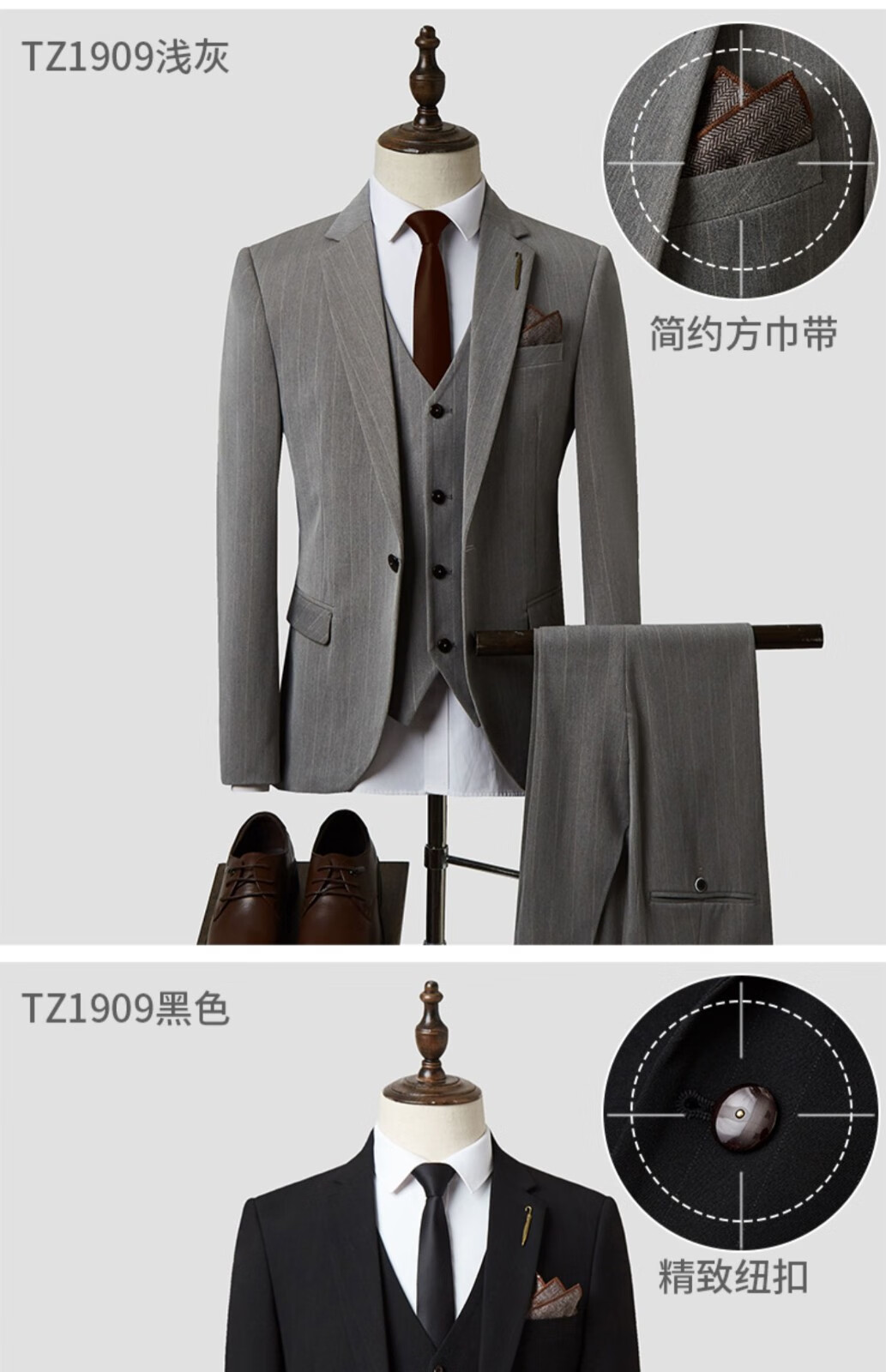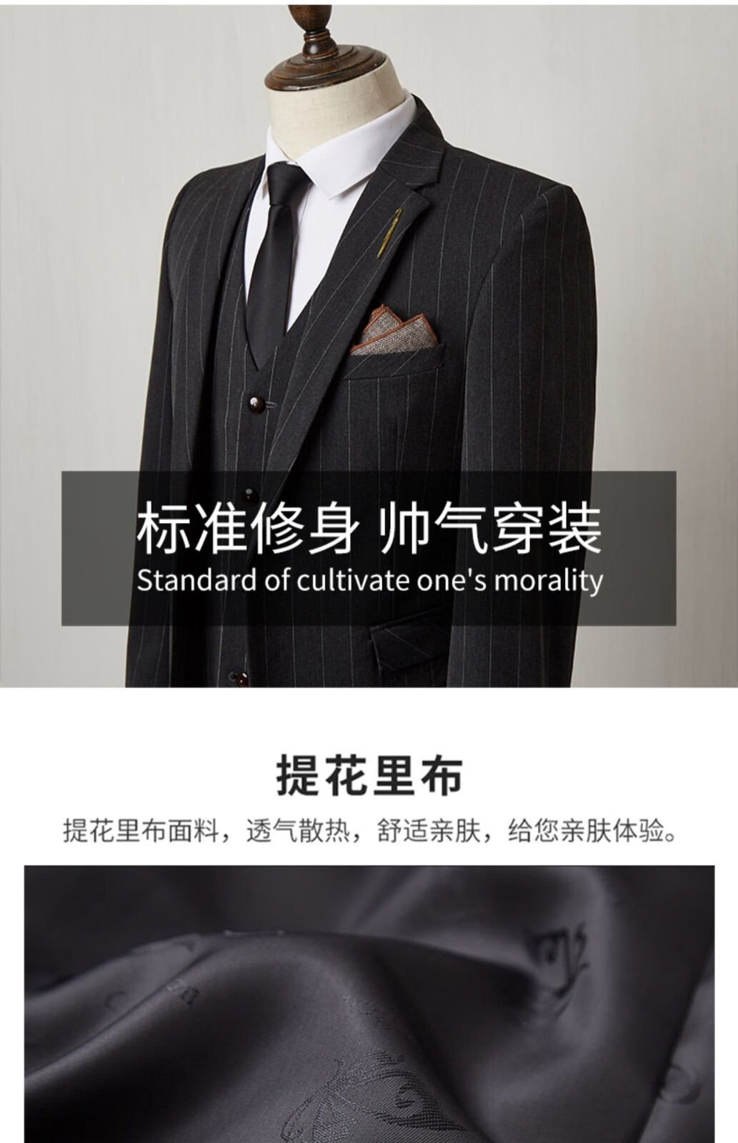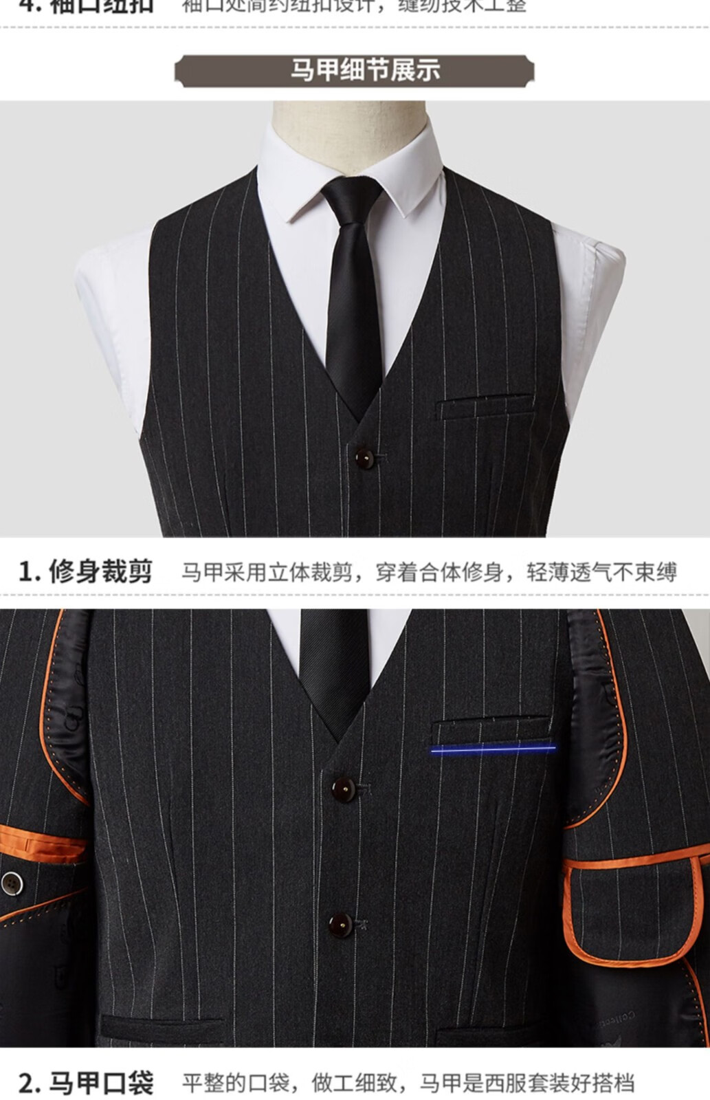 Luo Meng high-end suit men's suit wedding dress formal business professional suit jacket high-end striped groom 1909 light gray suit + vest + pants 2XL