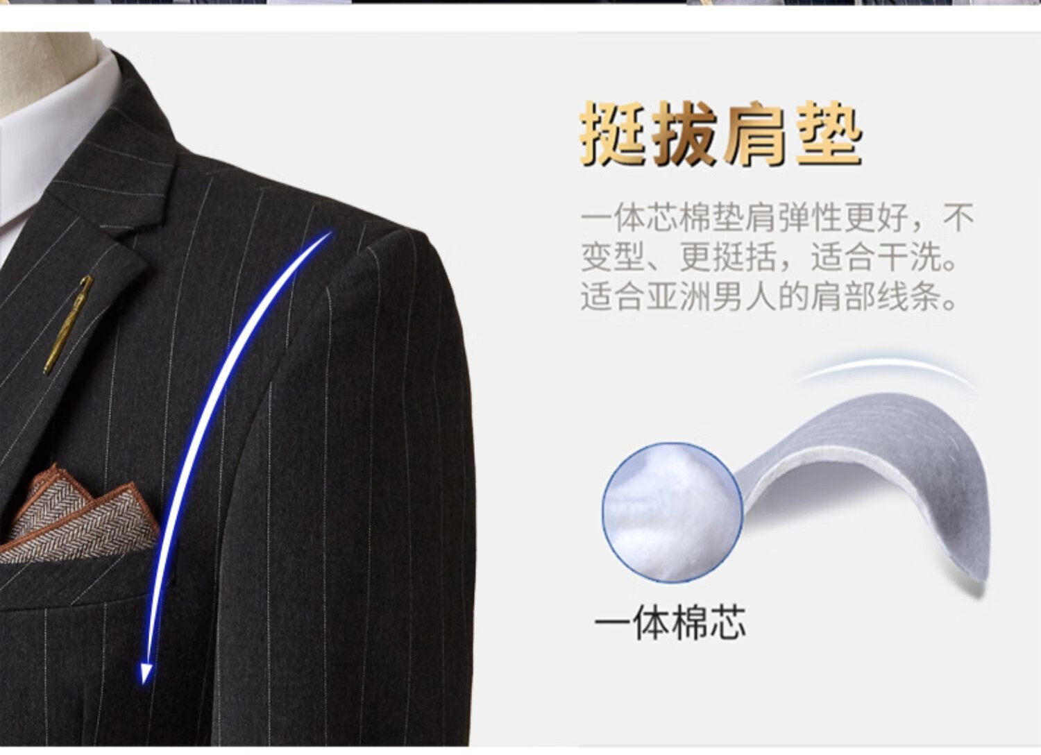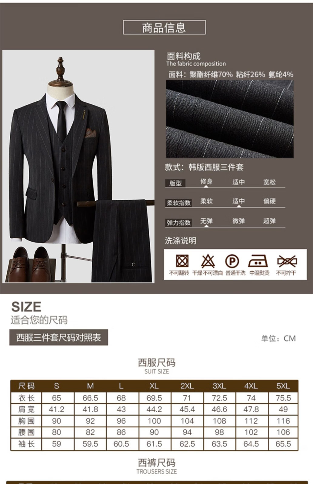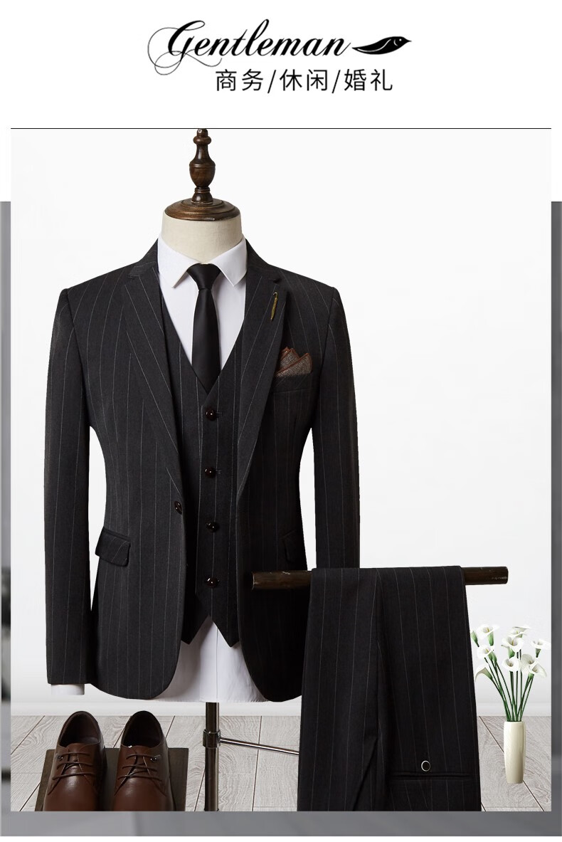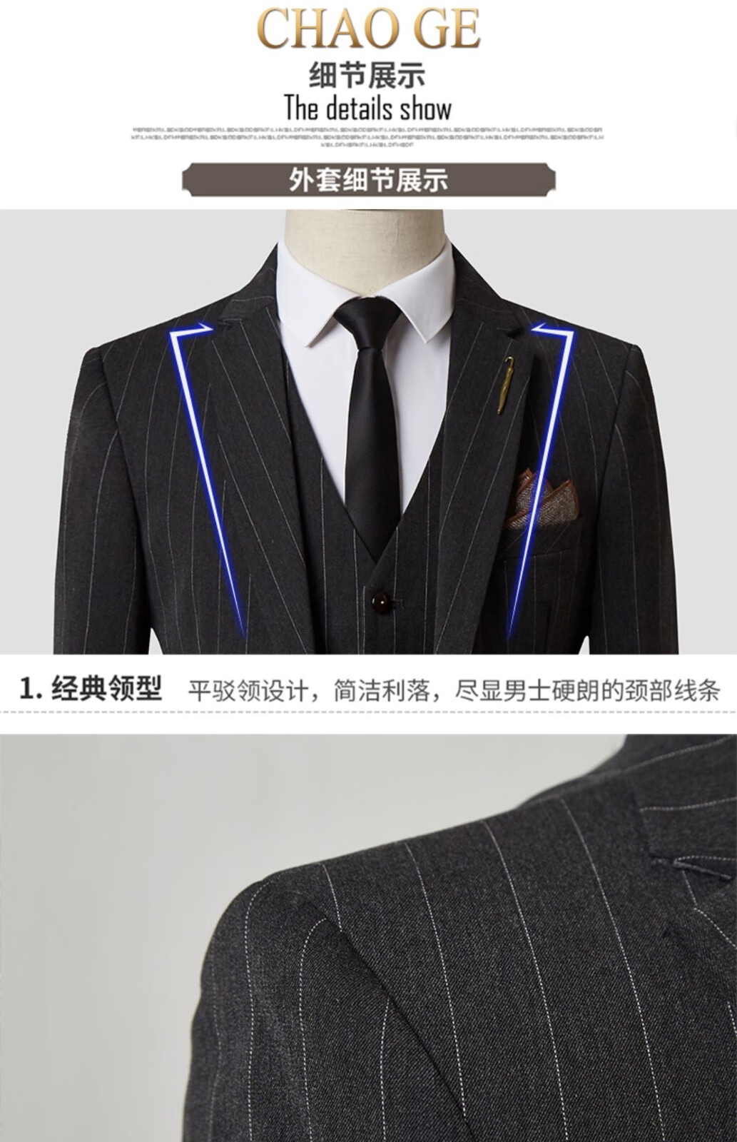 Luo Meng high-end suit men's suit wedding dress formal business professional suit jacket high-end striped groom 1909 light gray suit + vest + pants 2XL