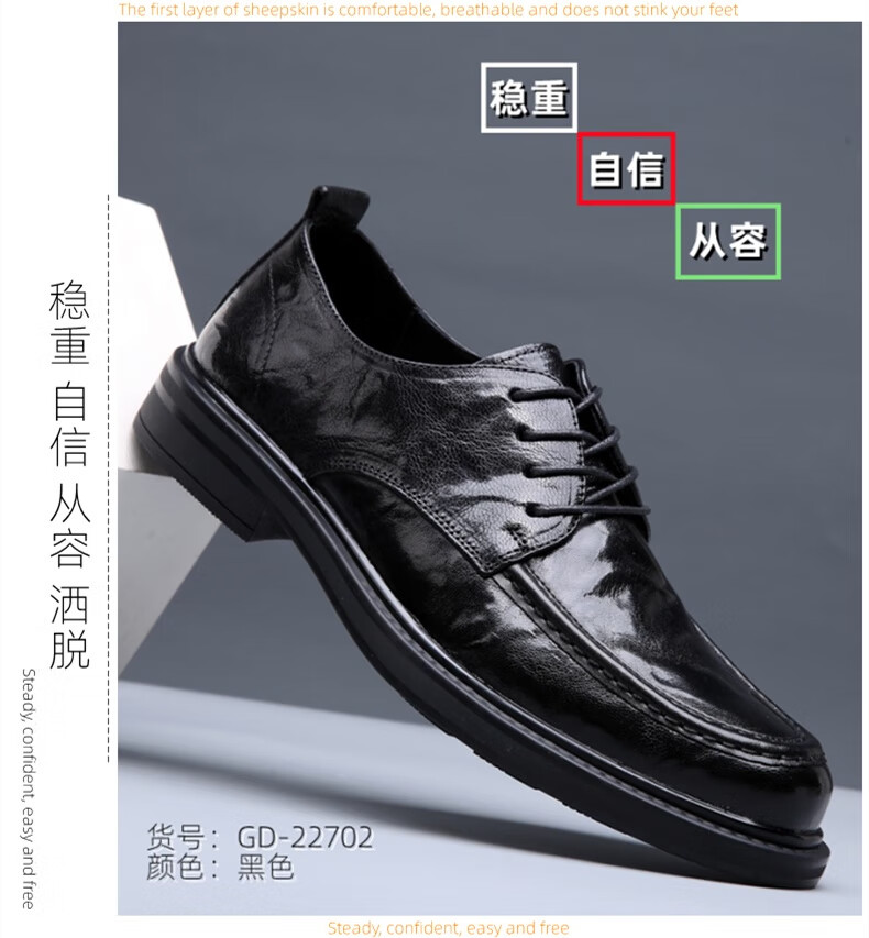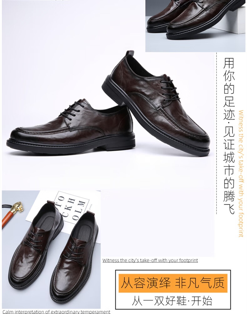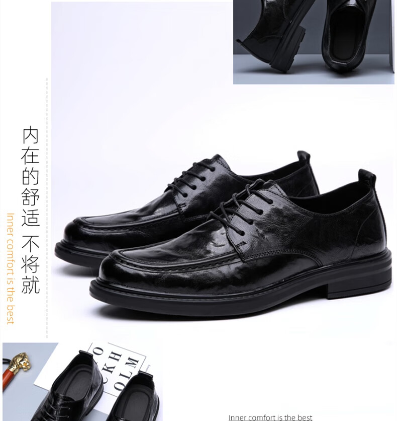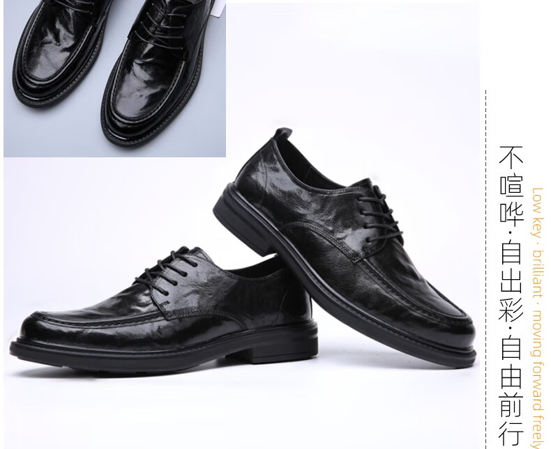 Goodba Ye first-layer cowhide men's casual leather shoes genuine leather business leather shoes men's lace-up formal shoes soft leather round-toe men's shoes dark brown 40