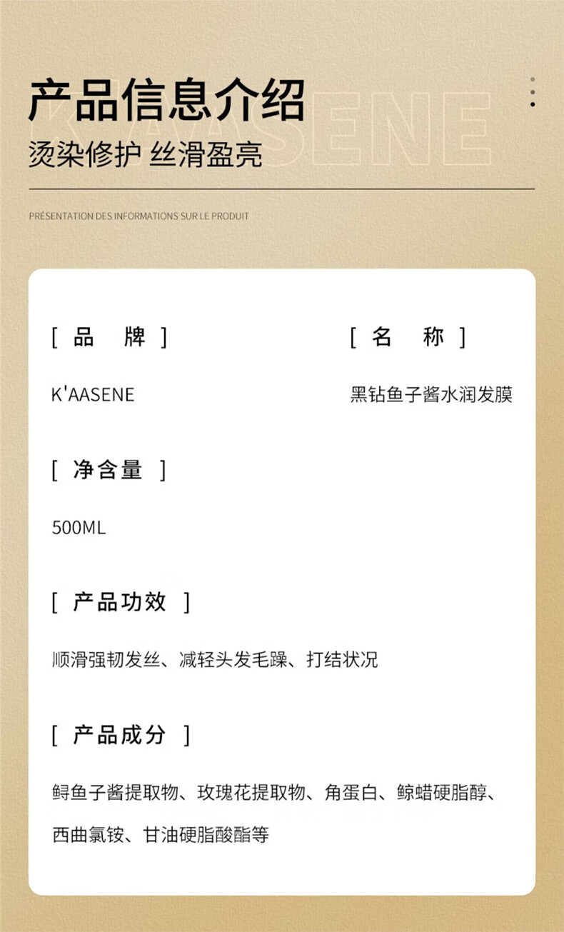 K AASENE French Caviar Conditioner Hair Mask Improves Dry Hair, Prevents Frizz, Smooth and Smooth No Steaming 2 Bottles for Salon Perm and Dye Damaged Hair