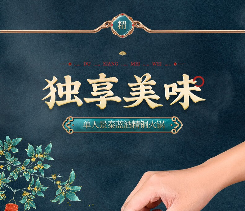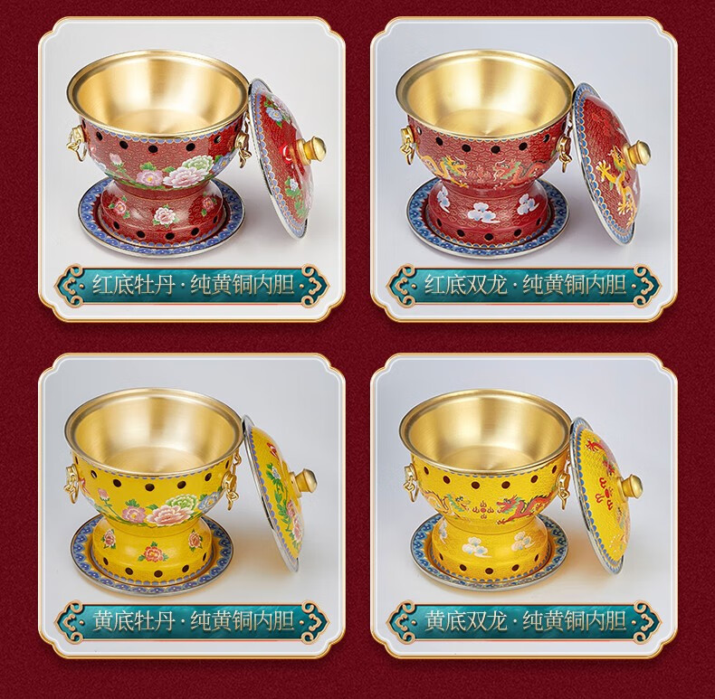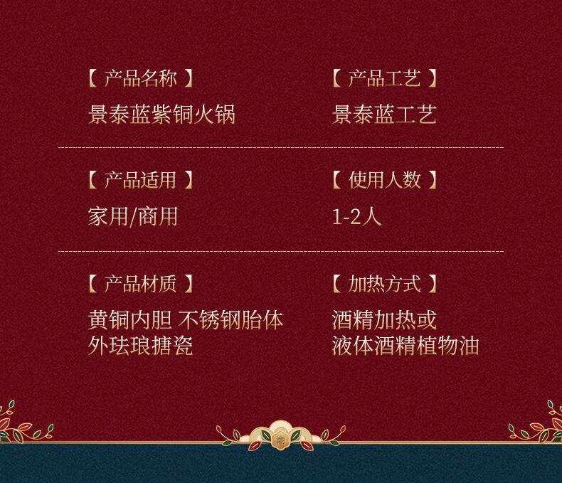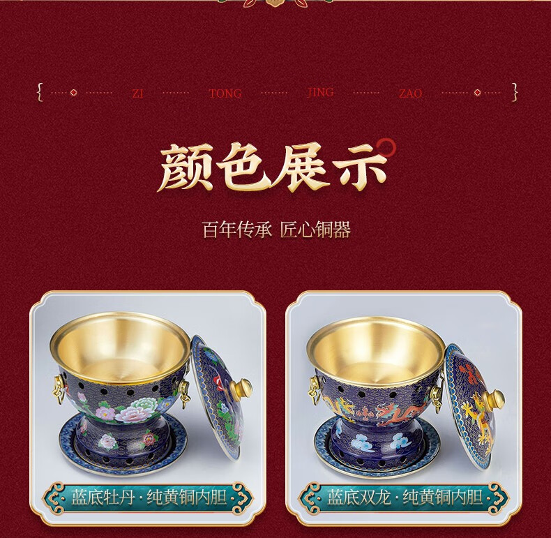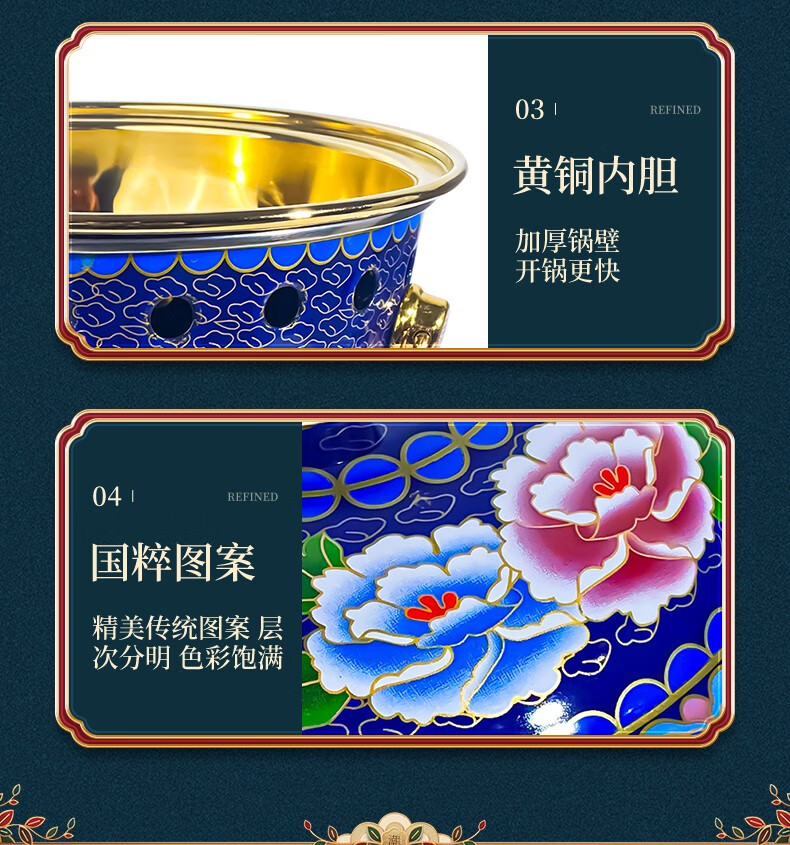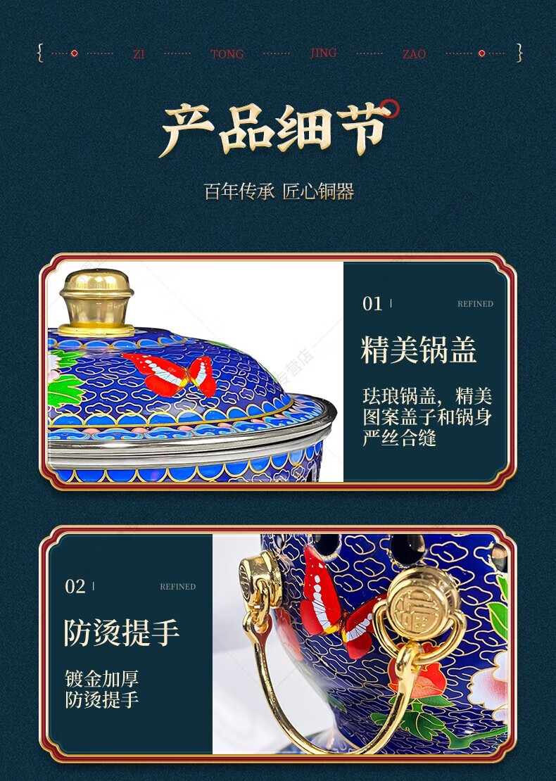 Zhihui New Cloisonné Blue Copper Hot Pot Single Household Enamel Small Hot Pot Old Beijing Sour Soup Fatty Beef Alcohol Stove Hot Pot Flowers Bloom and Wealth-Blue丨Brass Liner 18cm One Pot per Person
