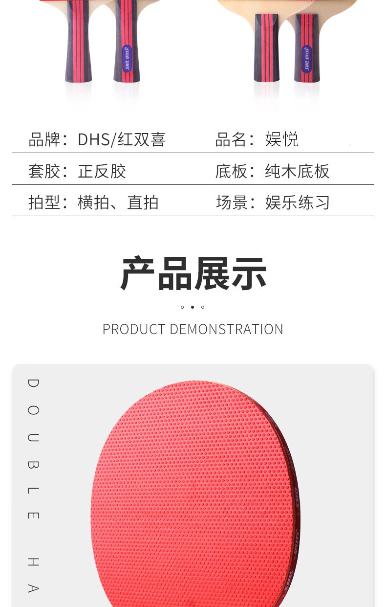 Red Double Happiness table tennis racket professional-grade adult horizontal racket primary school student beginner children's table tennis racket finished racket I-type single racket horizontal racket 1