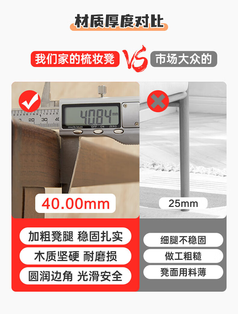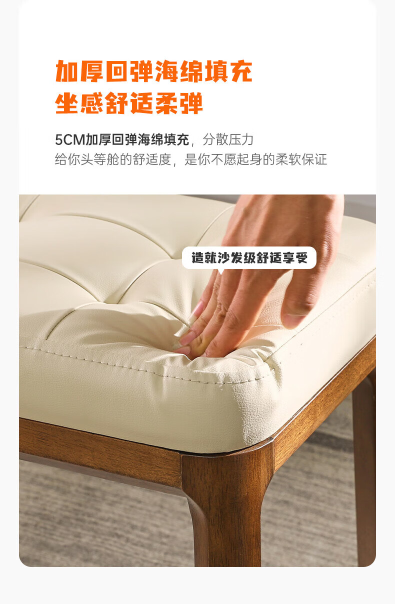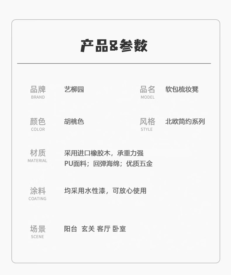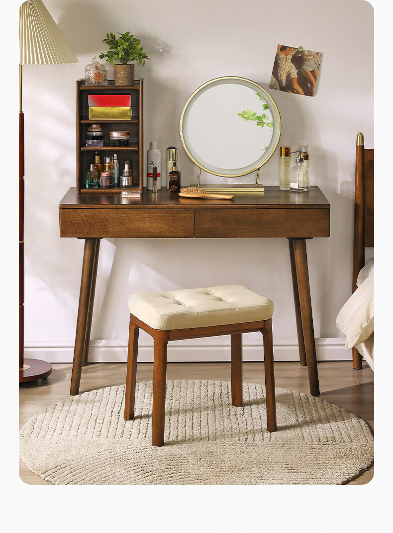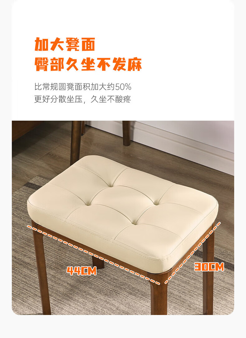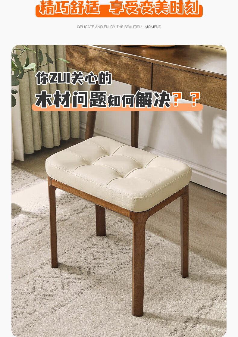 Yiliuyuan solid wood makeup stool soft bag dressing stool dressing table stool makeup chair stool square stool bench thickened walnut color