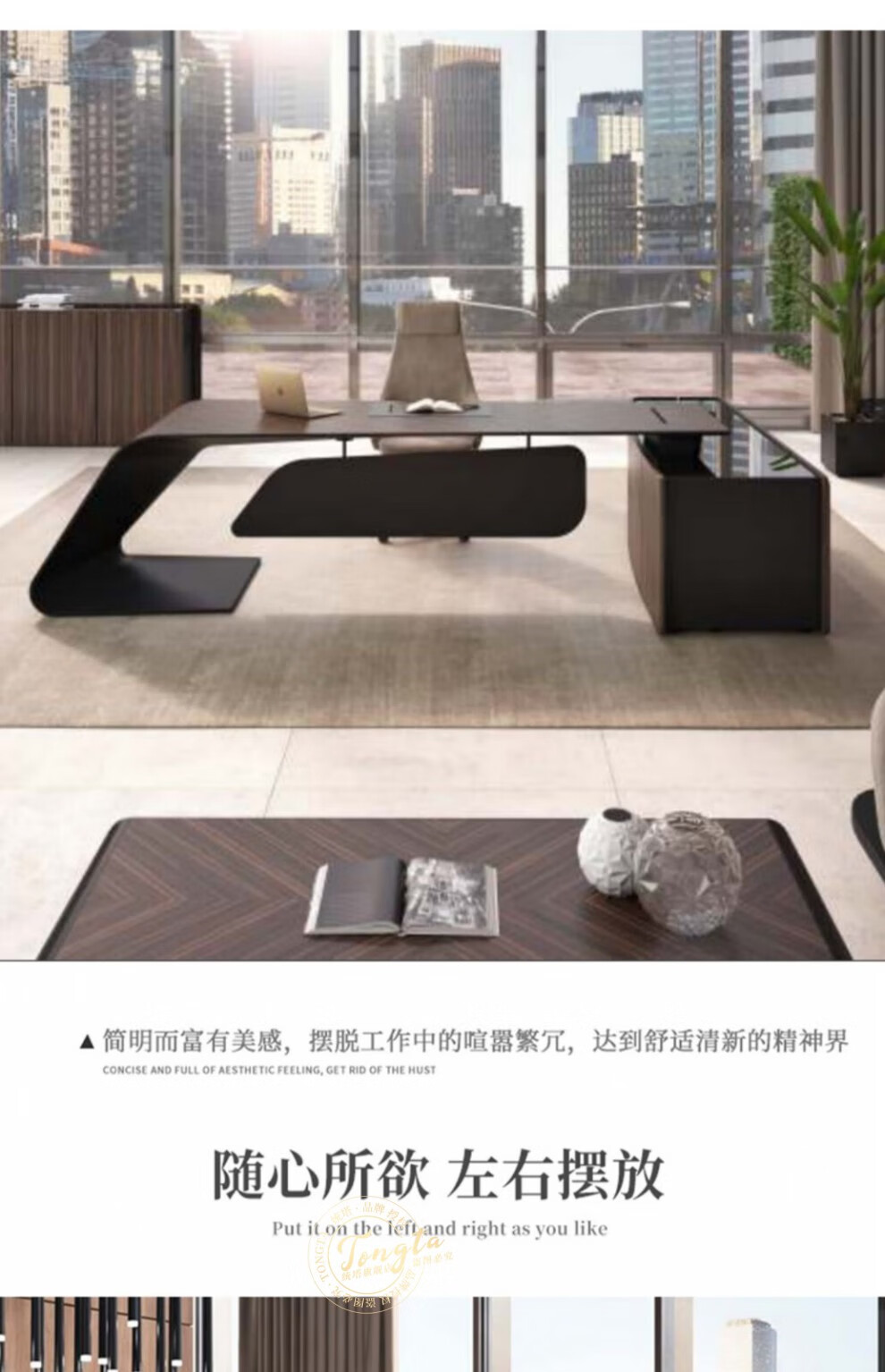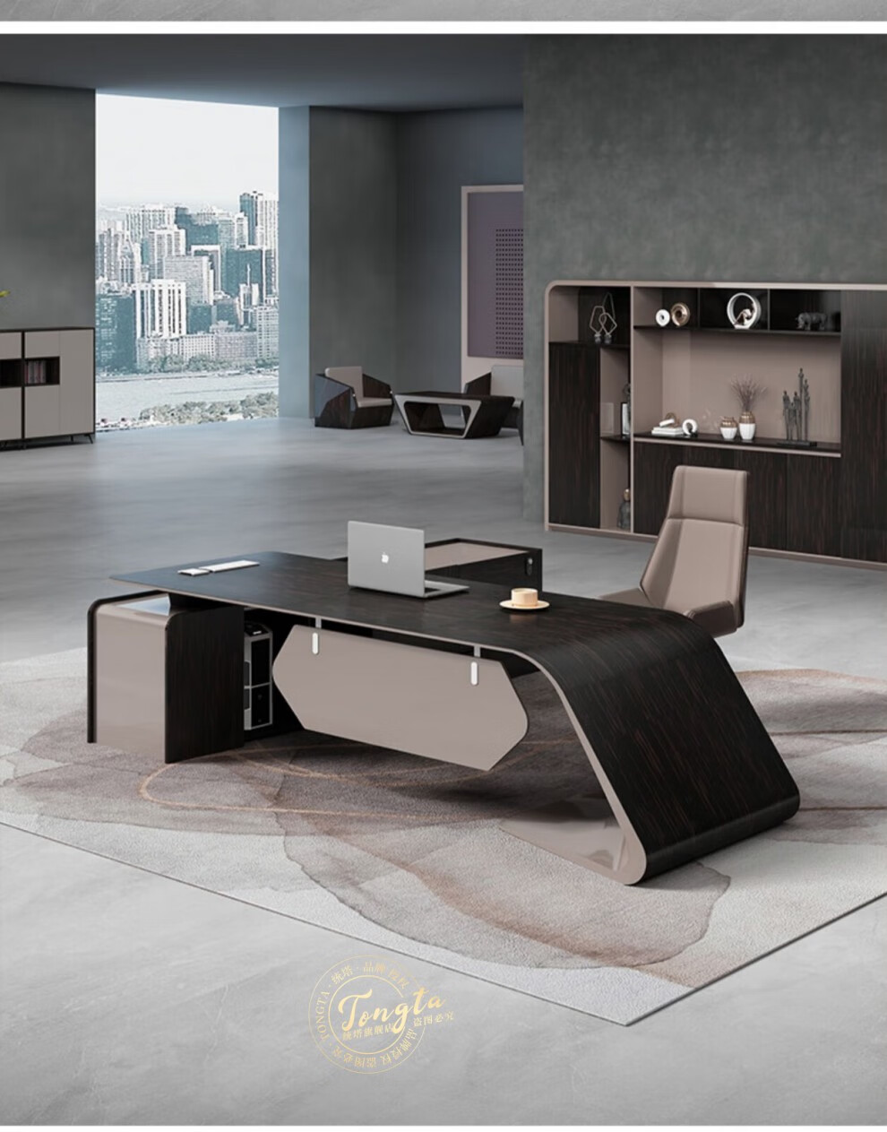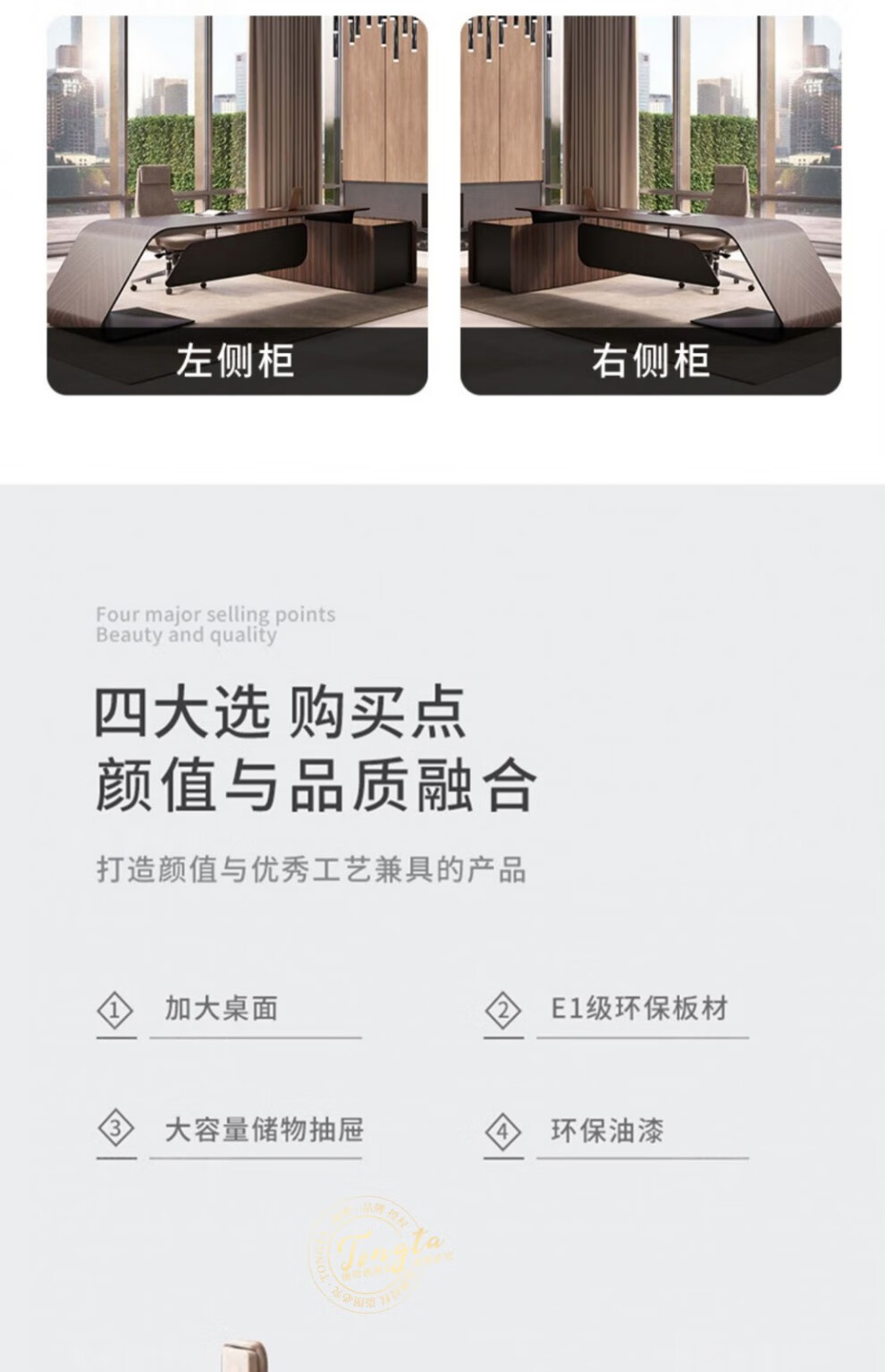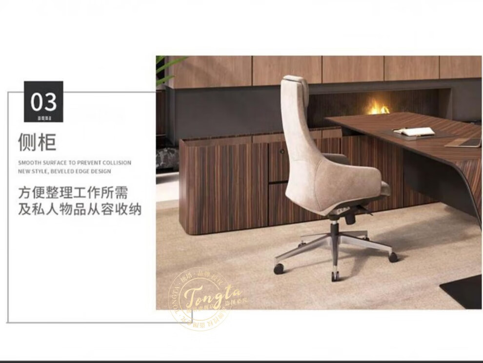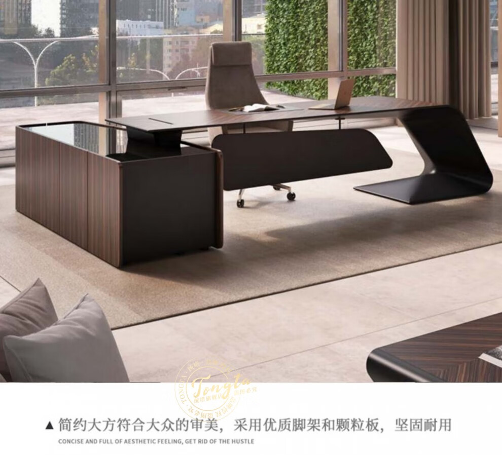 TONGTA light luxury boss desk president desk business simple modern high-end fashion executive desk manager desk office atmosphere boss office desk and chair combination 2.0m left side cabinet