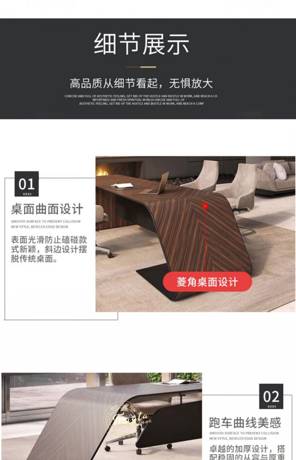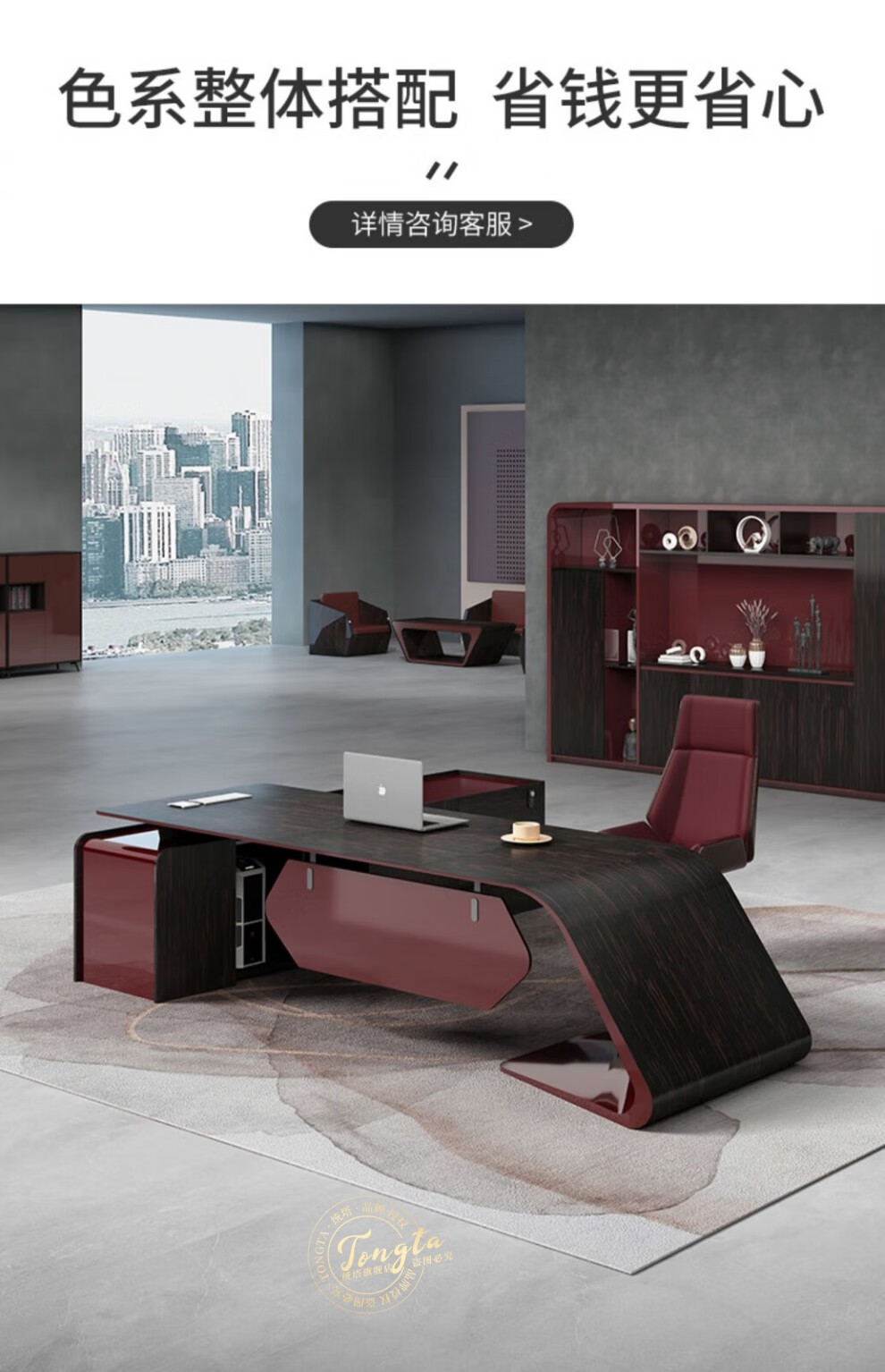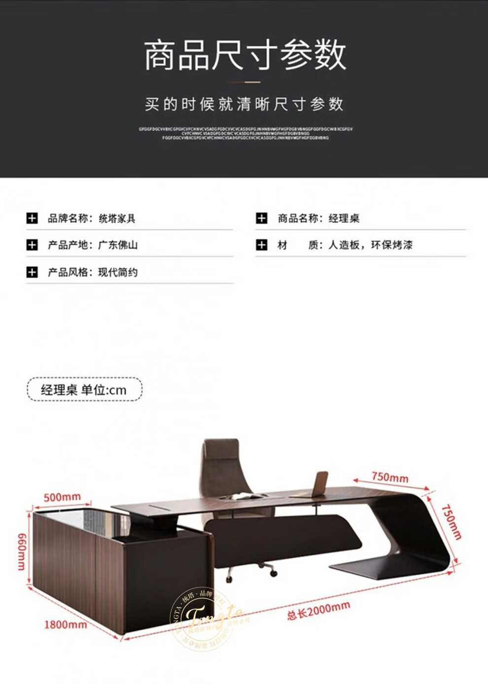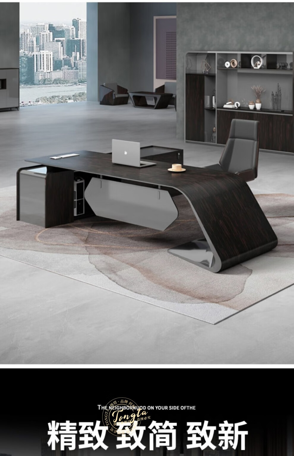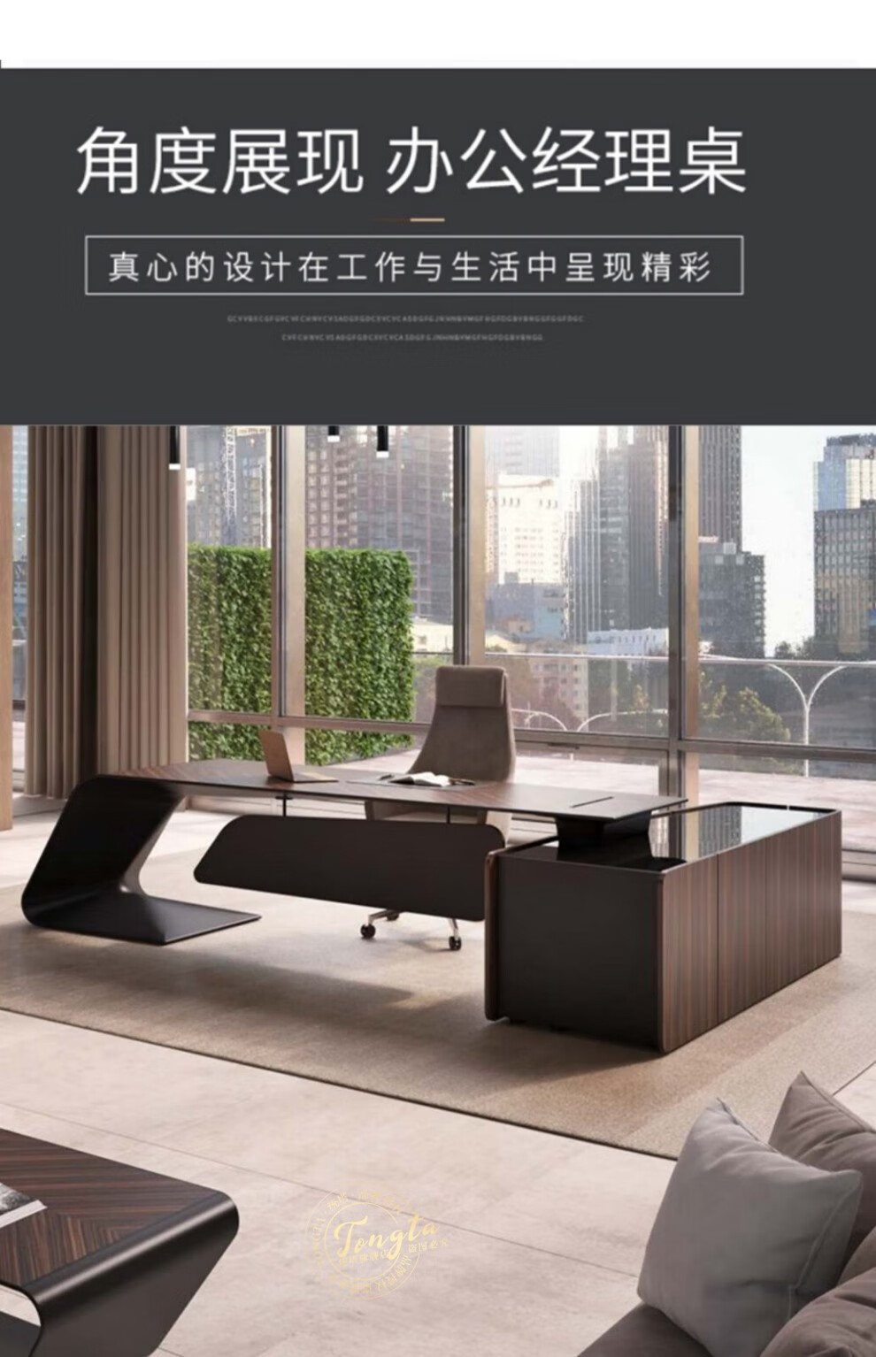 TONGTA light luxury boss desk president desk business simple modern high-end fashion executive desk manager desk office atmosphere boss office desk and chair combination 2.0m left side cabinet