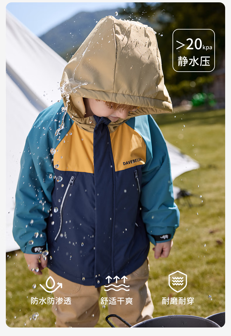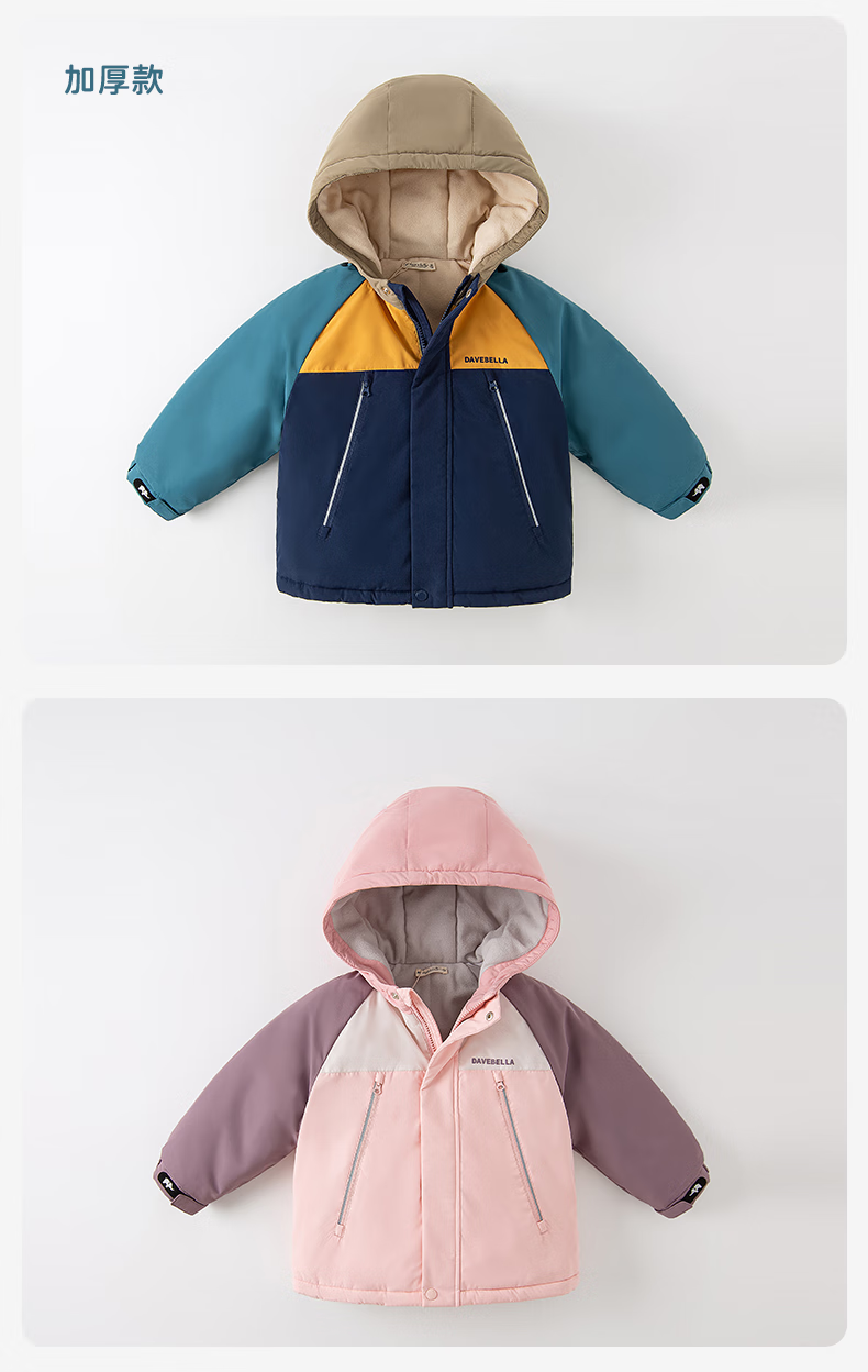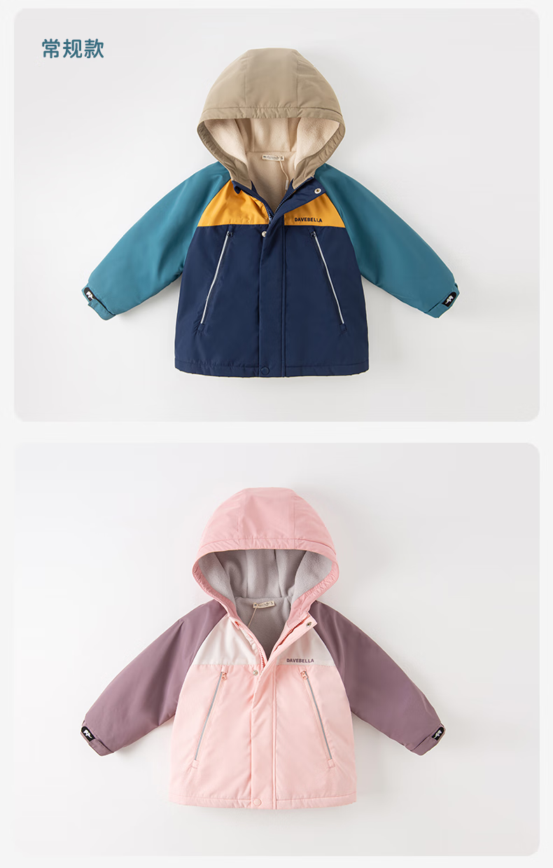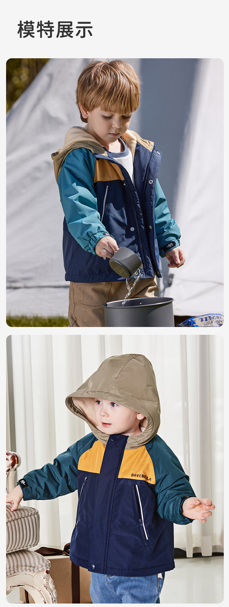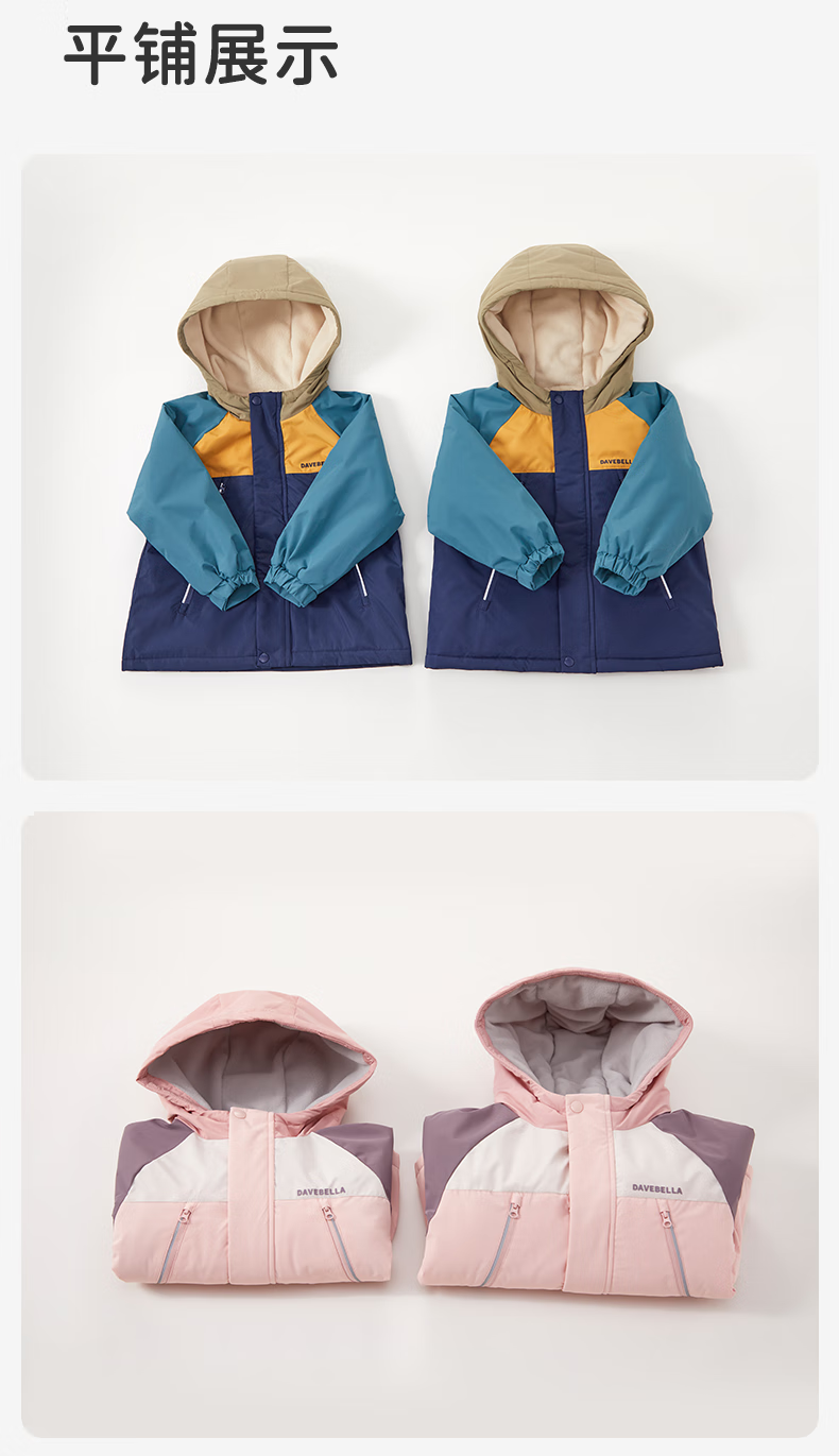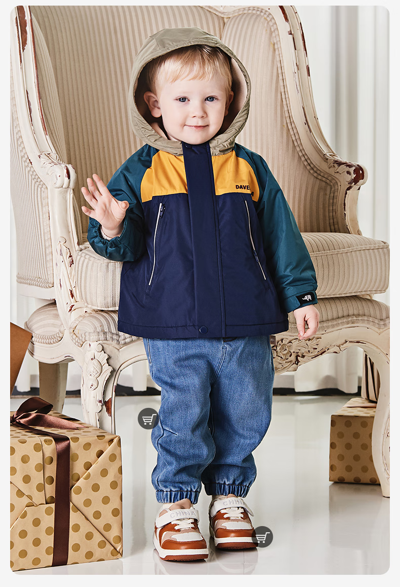 DAVE&BELLA children's clothing waterproof clothes boys and children's coats girls autumn and winter baby plus velvet windproof coats for boys and girls navy blue DB4224558 110 cm (recommended height 100-110cm)