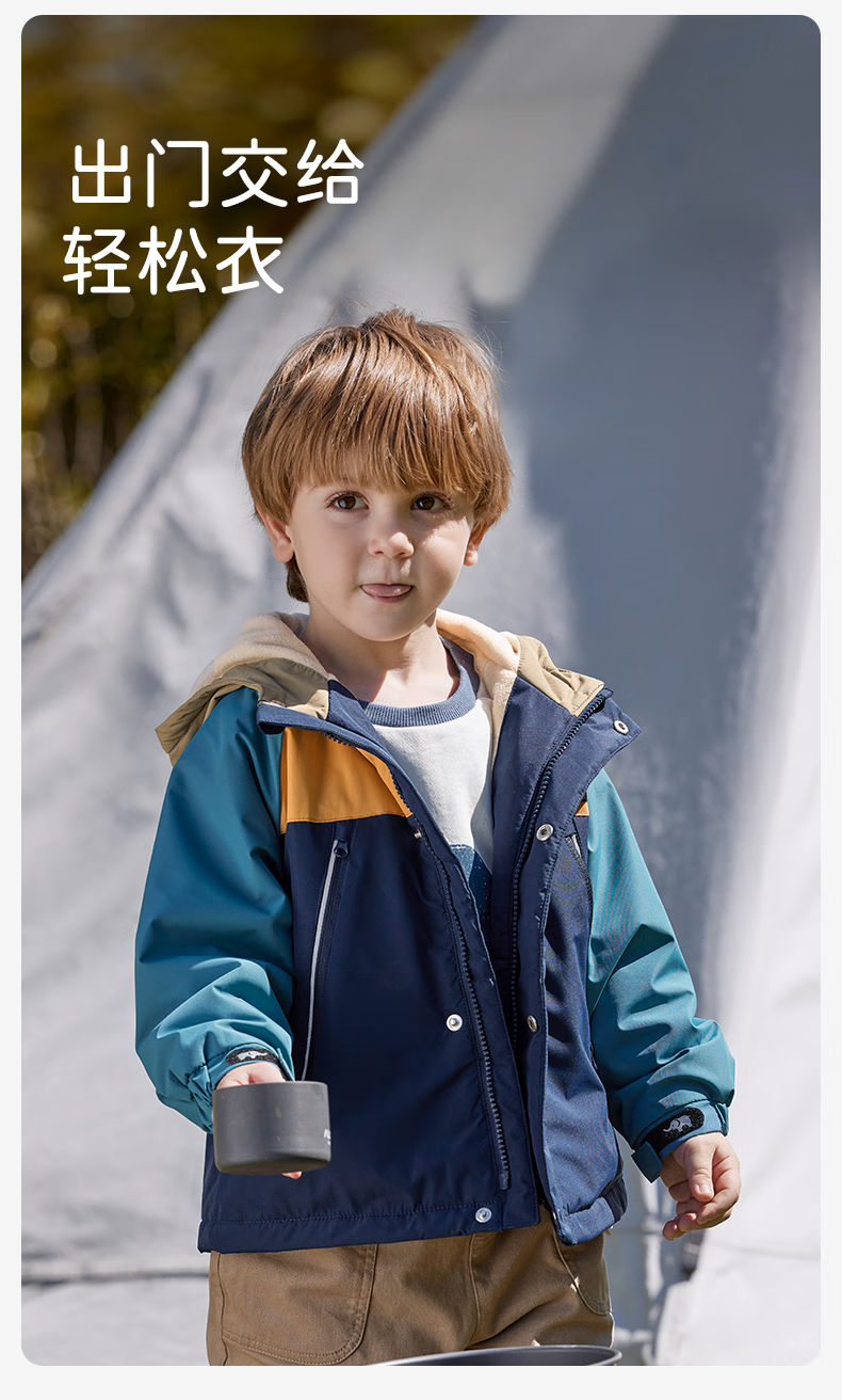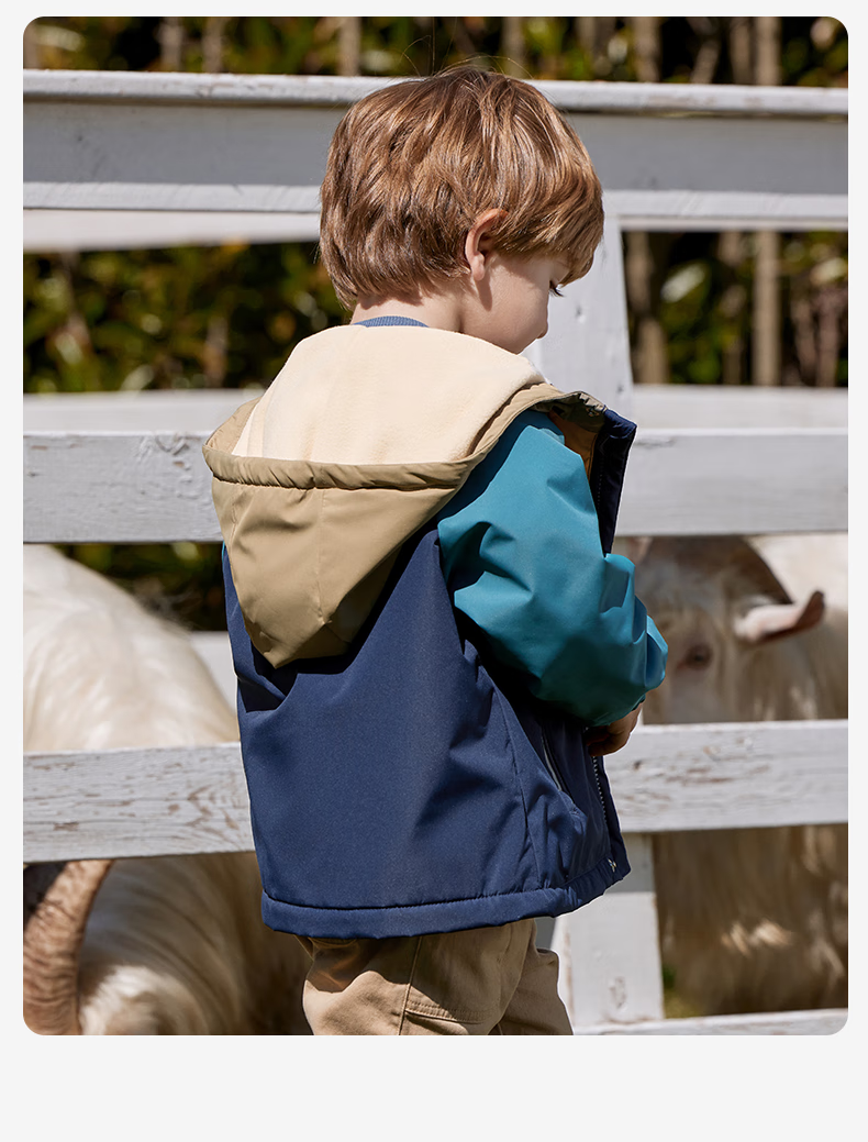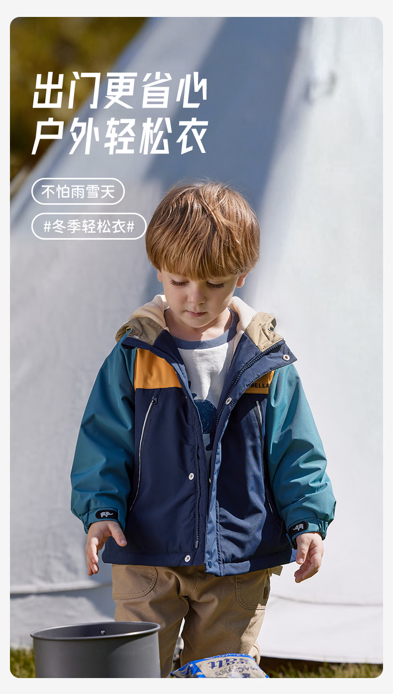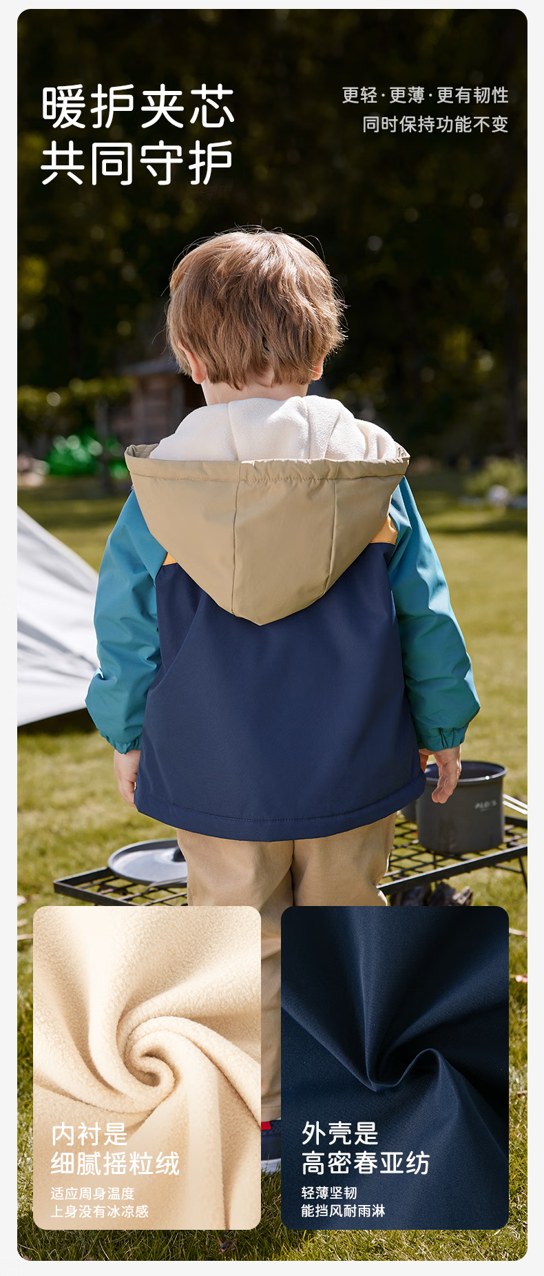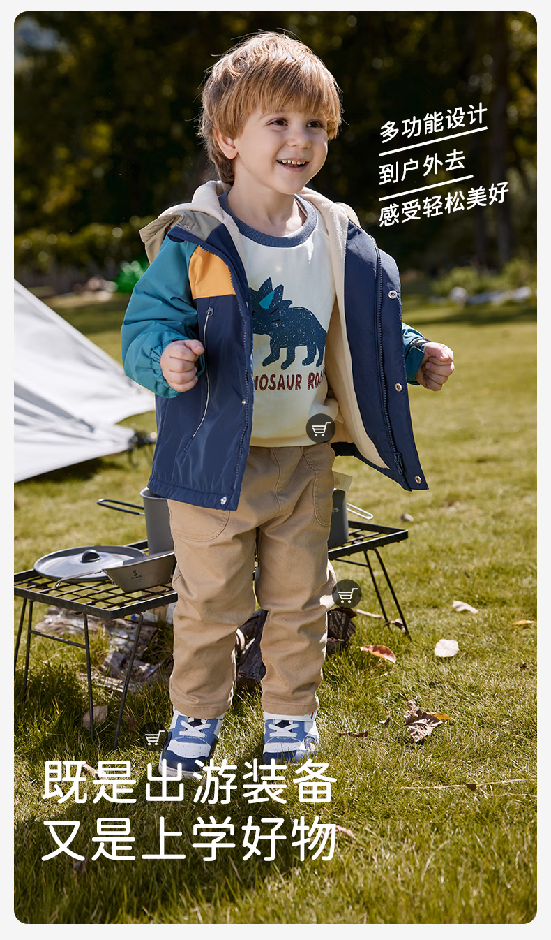DAVE&BELLA children's clothing waterproof clothes boys and children's coats girls autumn and winter baby plus velvet windproof coats for boys and girls navy blue DB4224558 110 cm (recommended height 100-110cm)