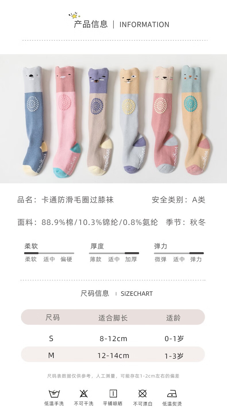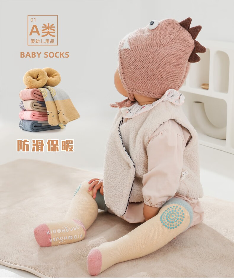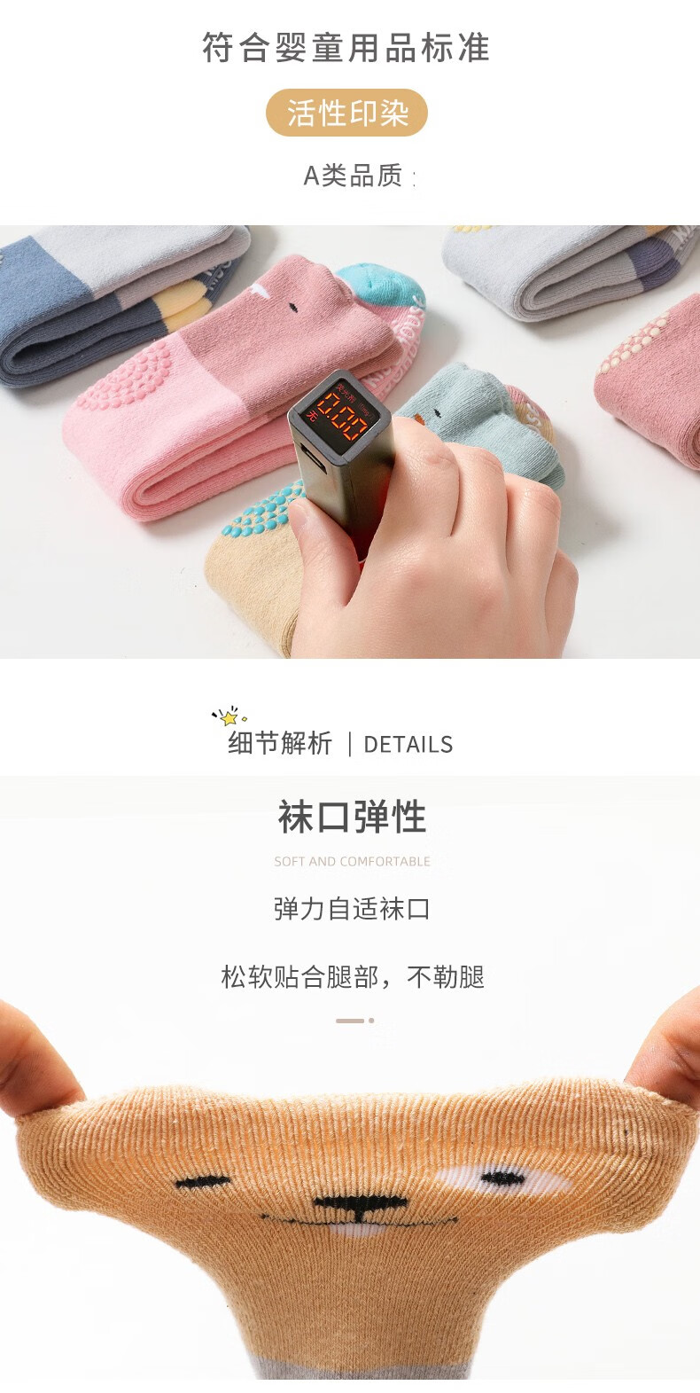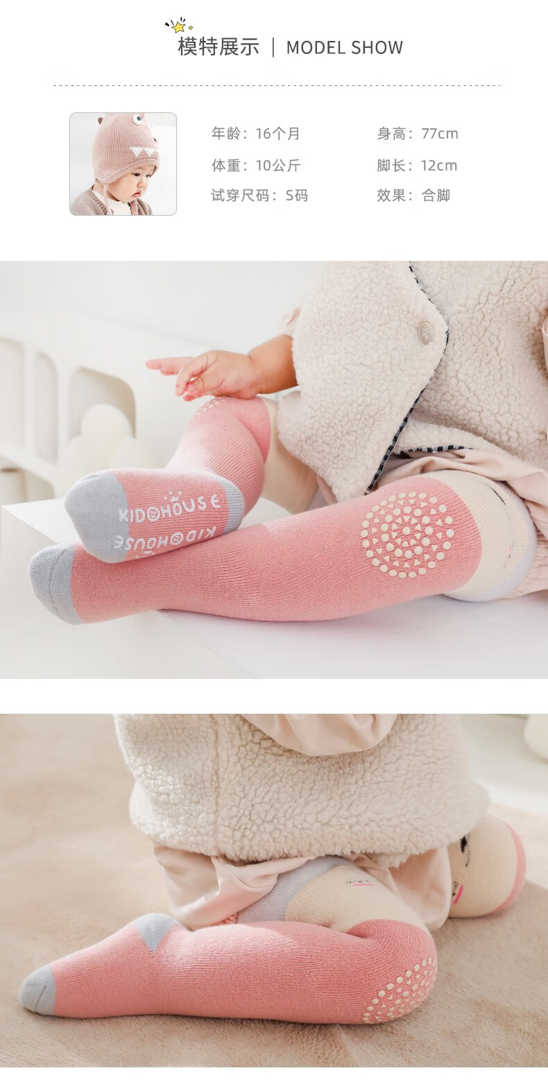 Nanlu 3 pairs of thickened warm baby stockings crawling knee pads winter newborn socks over the knee non-slip baby stockings 3 pairs of baby boy (thick terry) S size (0-1 years old)