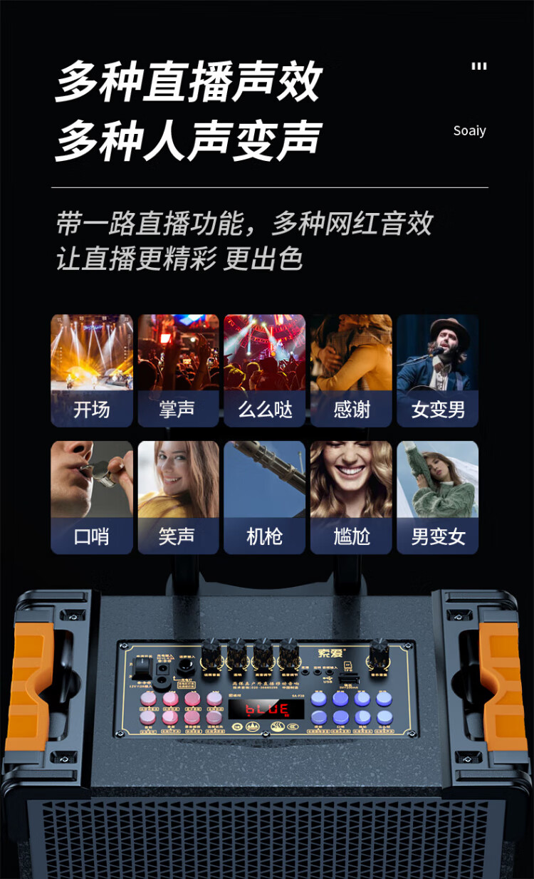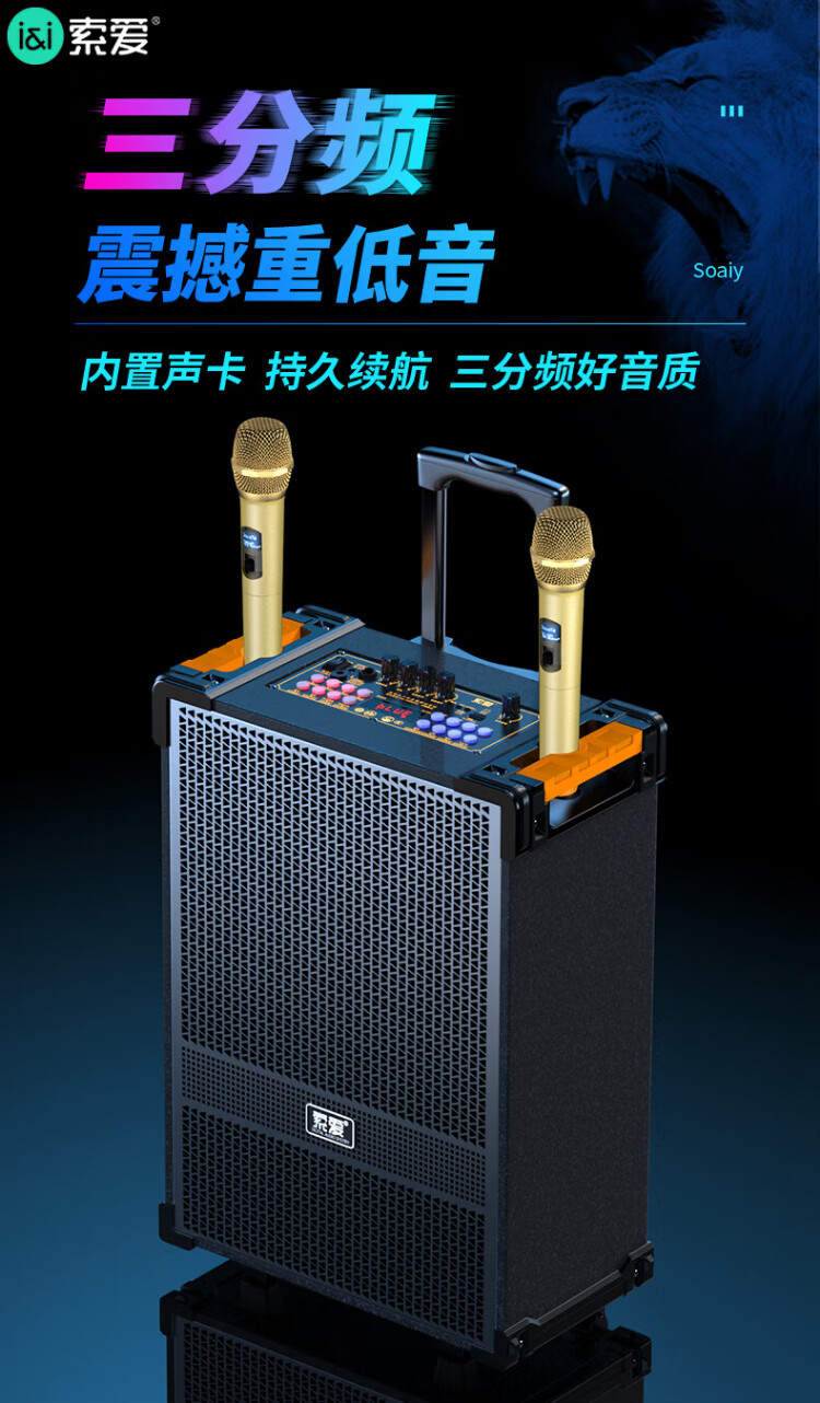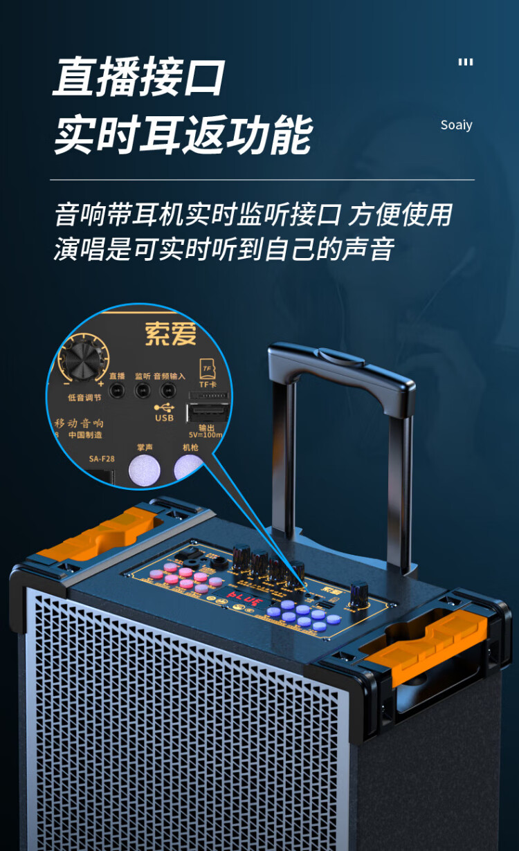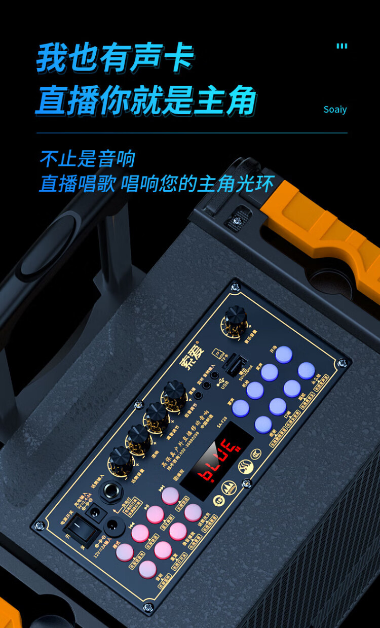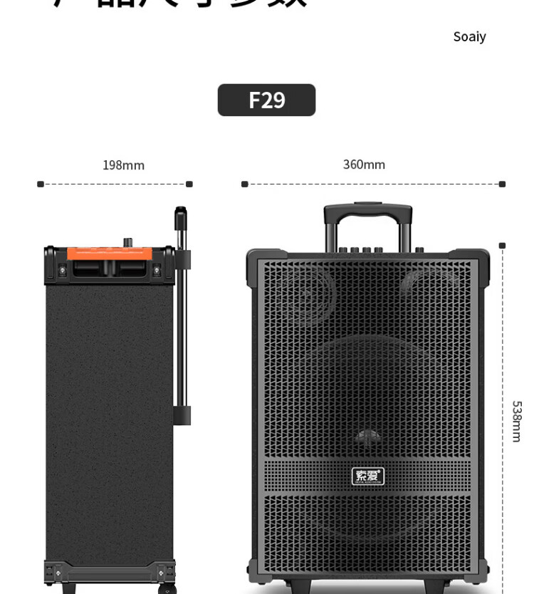 Sony Ericsson (soaiy) F29 sound card live audio three-way outdoor trolley Internet celebrity performance high-power square dance speaker Bluetooth F28 strap portable karaoke subwoofer high volume F28-8-inch strap sound card speaker + 2 microphones