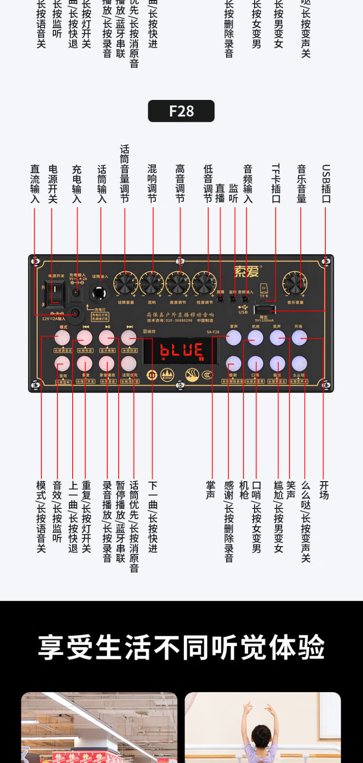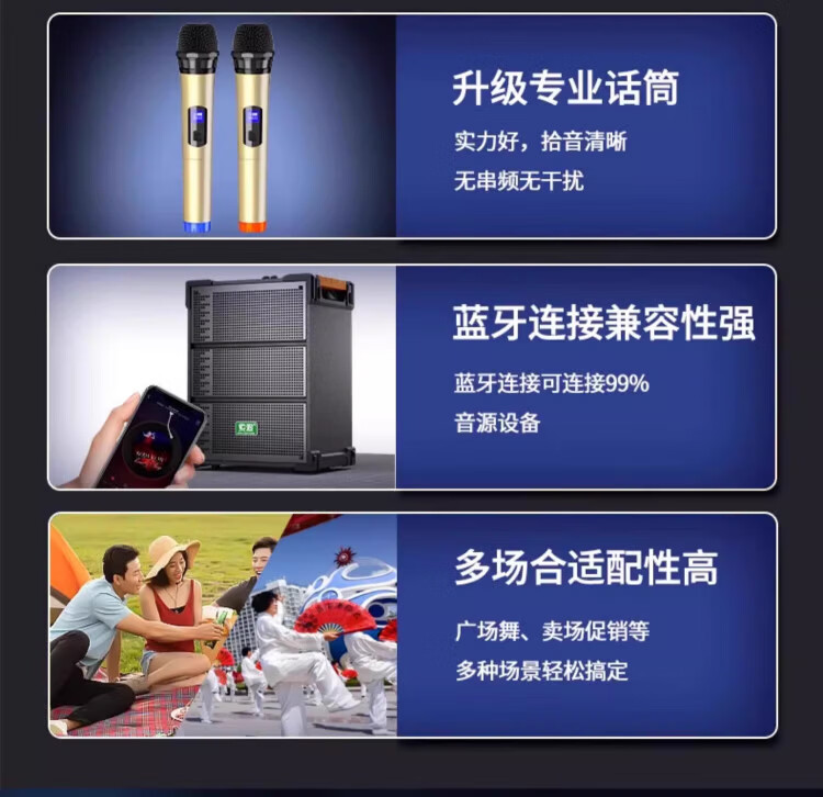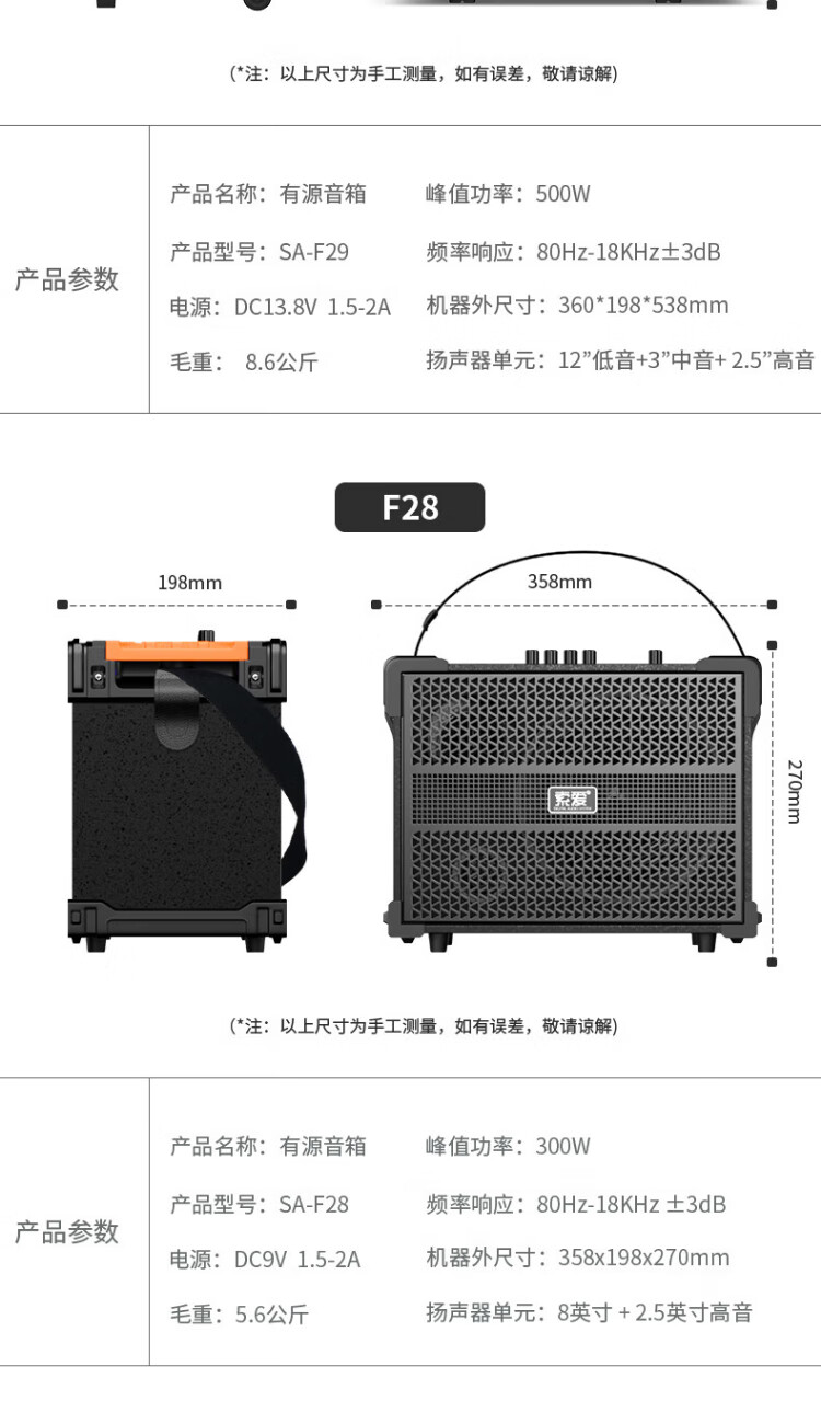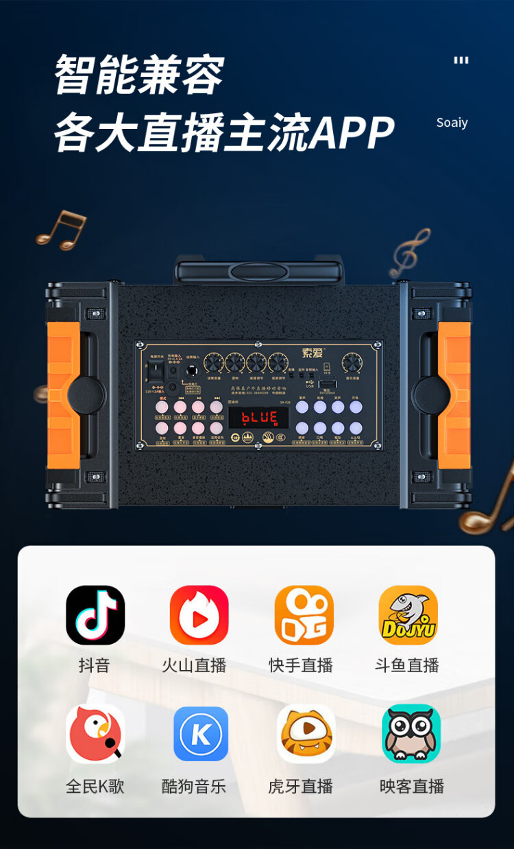 Sony Ericsson (soaiy) F29 sound card live audio three-way outdoor trolley Internet celebrity performance high-power square dance speaker Bluetooth F28 strap portable karaoke subwoofer high volume F28-8-inch strap sound card speaker + 2 microphones