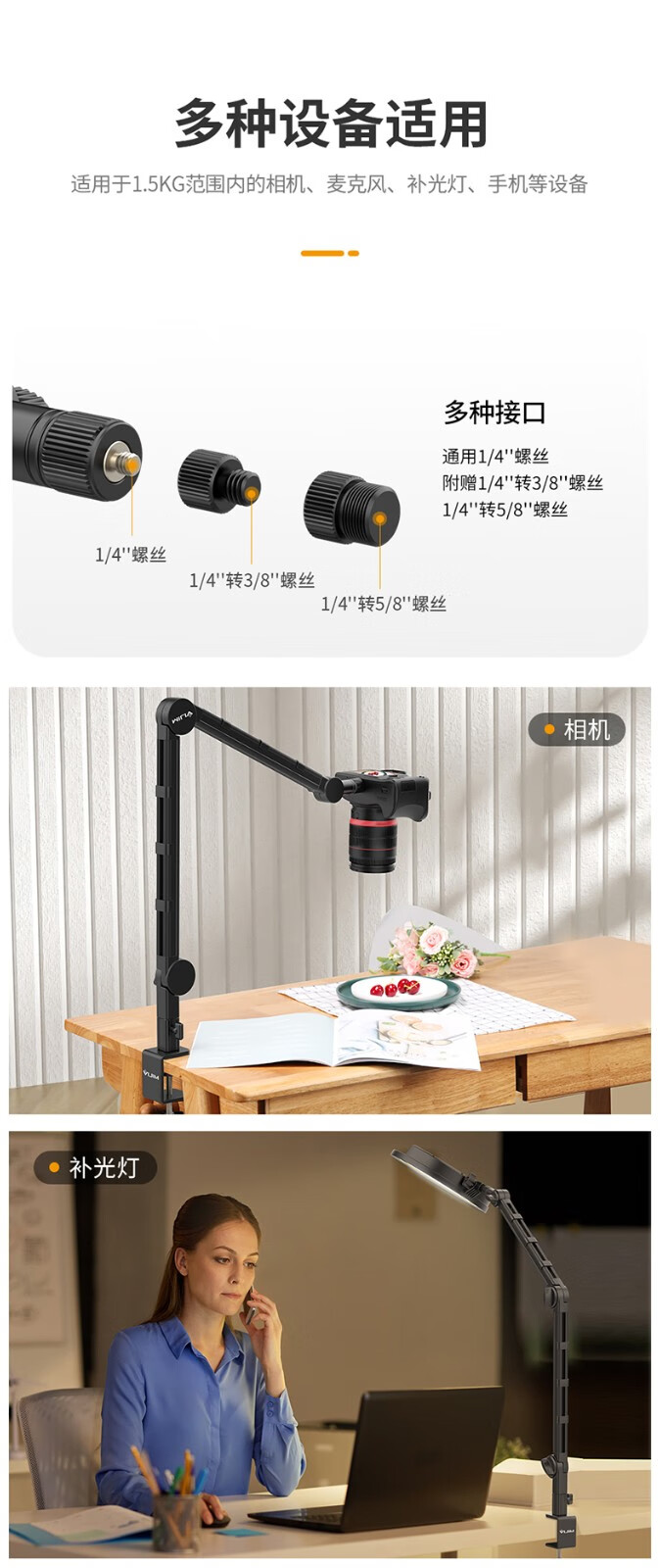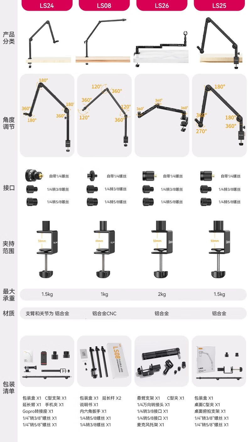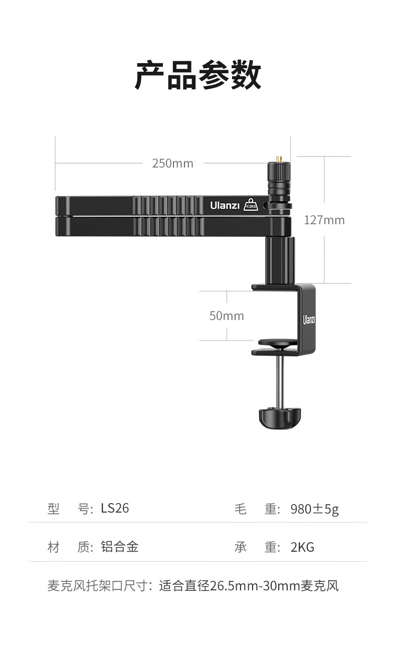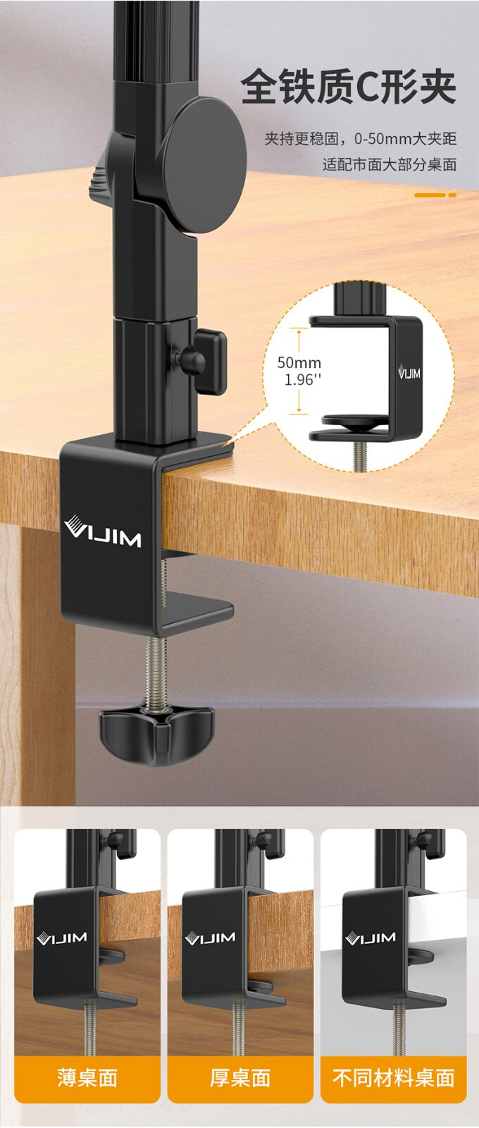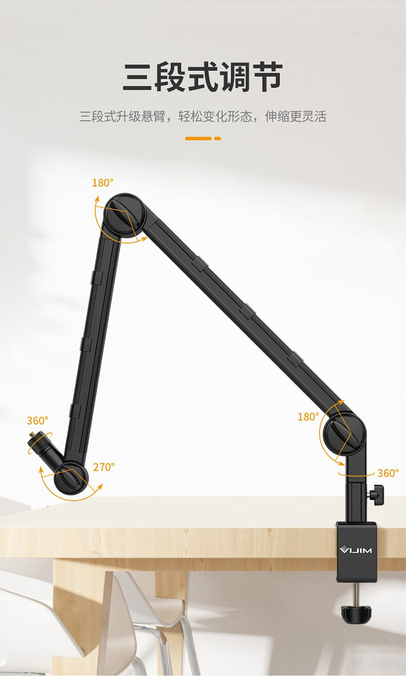 VIJIM LS25 microphone cantilever stand microphone desktop overhead stand live broadcast karaoke recording anchor camera photo photography photography metal stand expansion metal material | three-stage adjustment | load-bearing 1.5KG