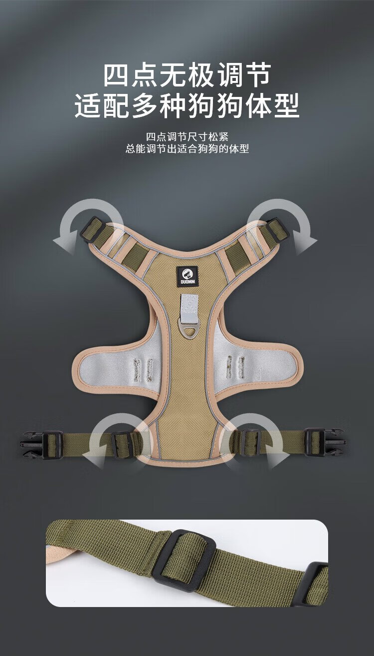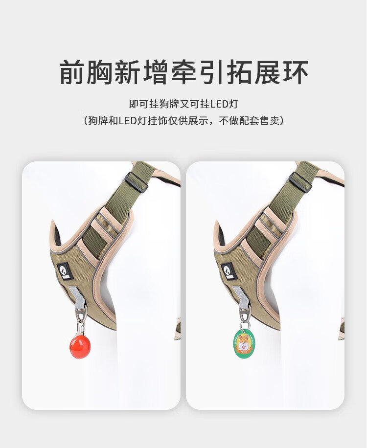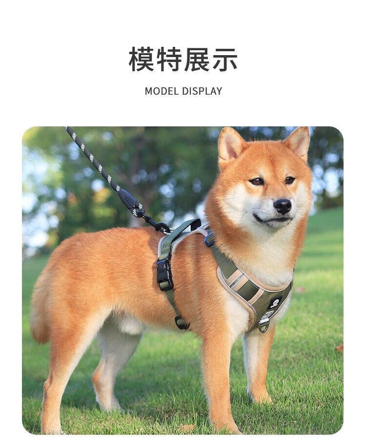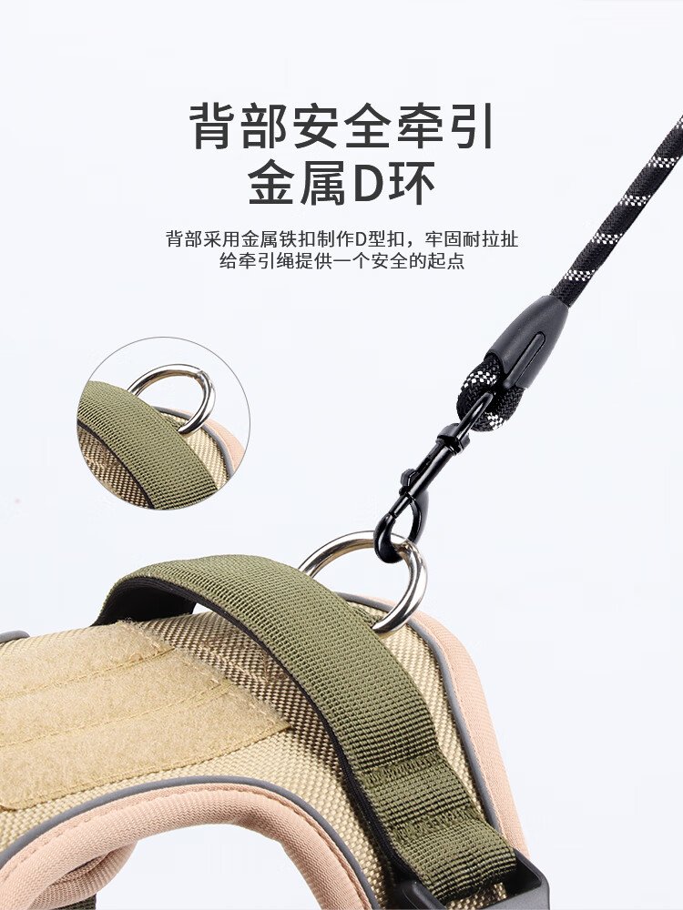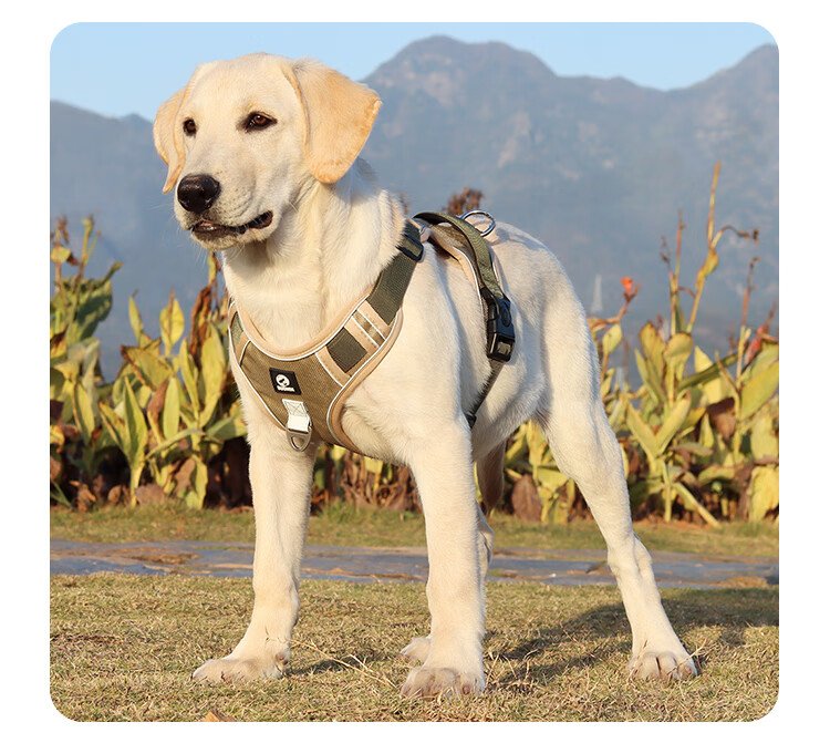 COCS dog harness for medium and large dogs, vest-type traction rope, anti-collision and explosion-proof Labrador Golden Retriever Shiba Inu border collie dog leash 1 Khaki dog harness - 1.5m dog leash 1 L-(chest 54-71cm recommended 28-45 Jin Jin equals 0.5 kg)