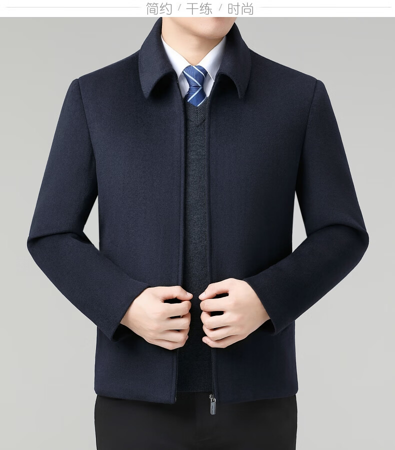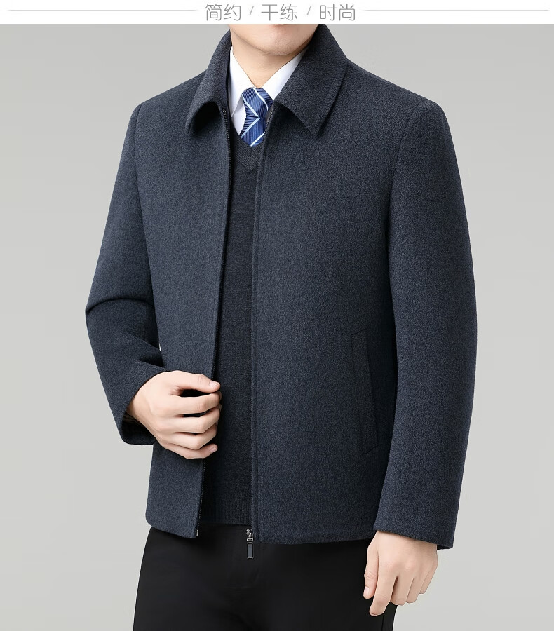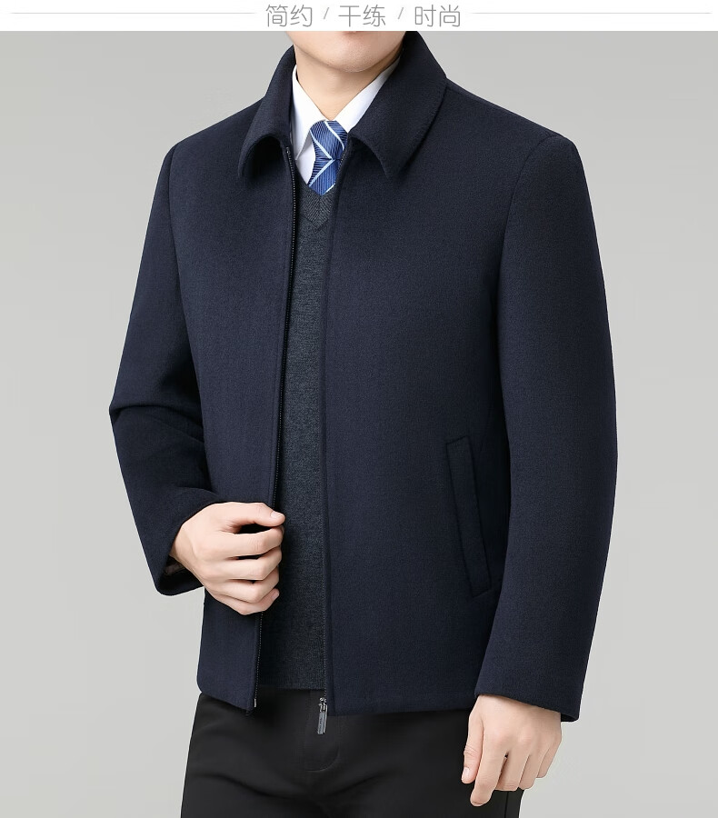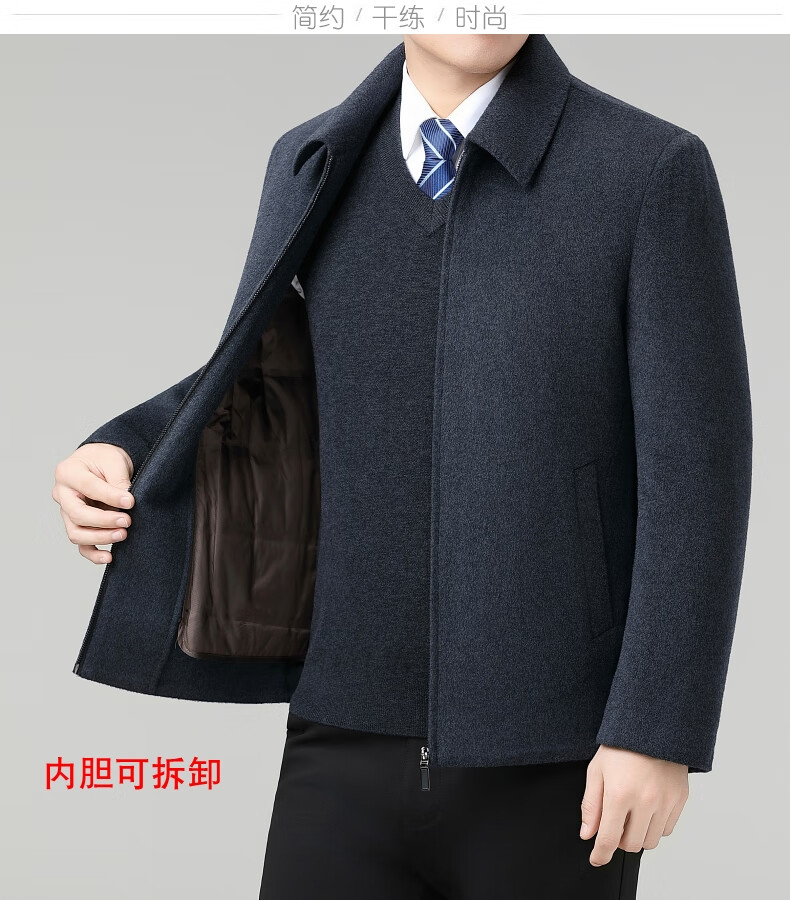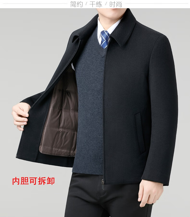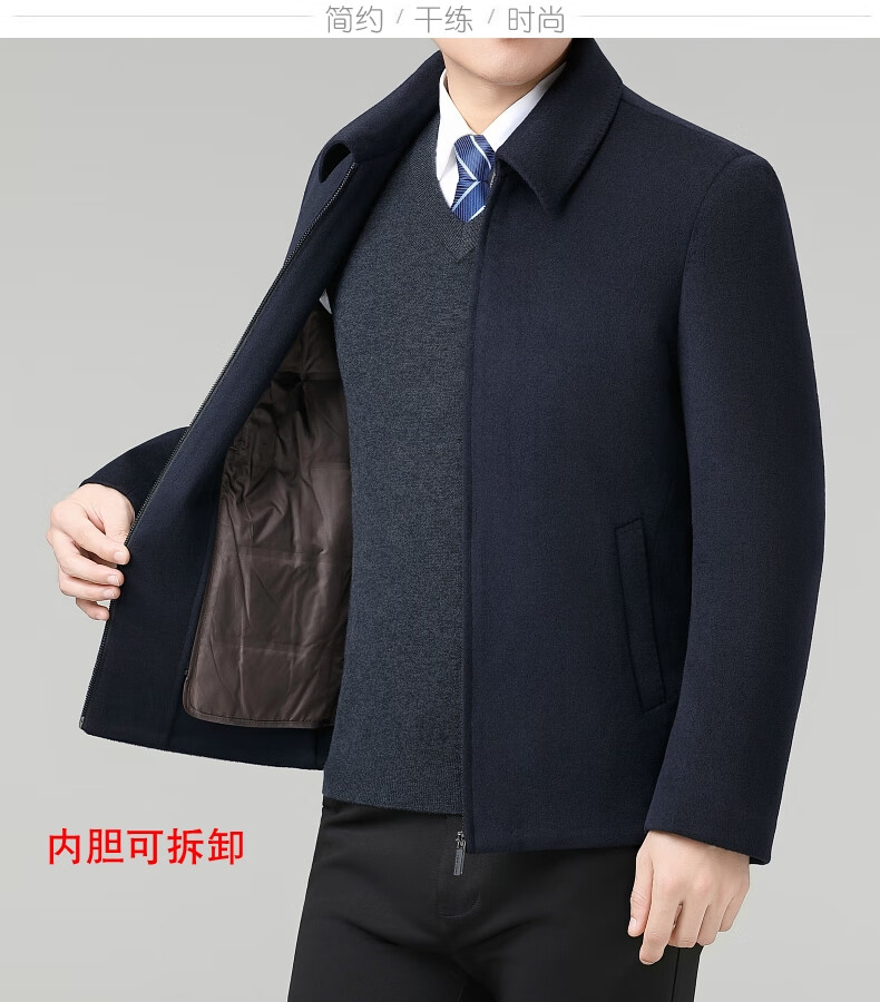 Hengyuanxiang Wool Jacket Men's Short Thick Warm Double-sided Wool Cashmere Jacket Winter Middle-aged and Elderly Dad's Wool Jacket Dark Blue Removable Long-Sleeved Down Liner XL (180)