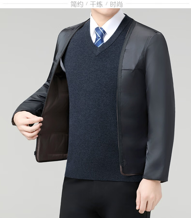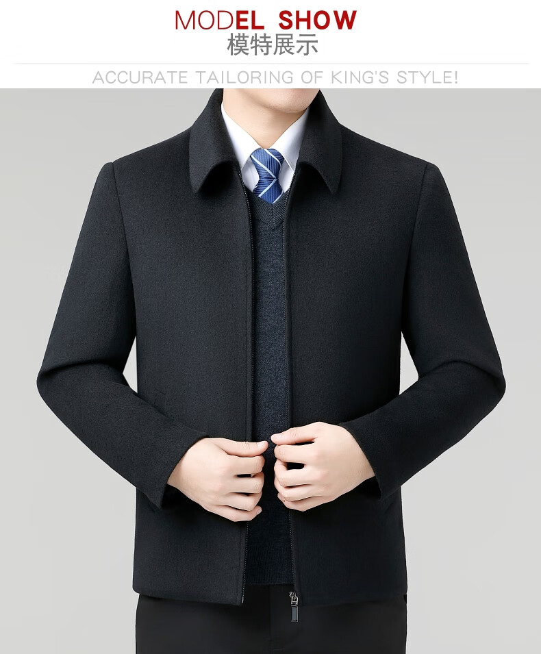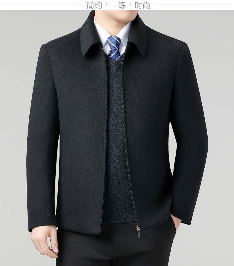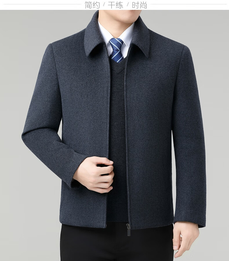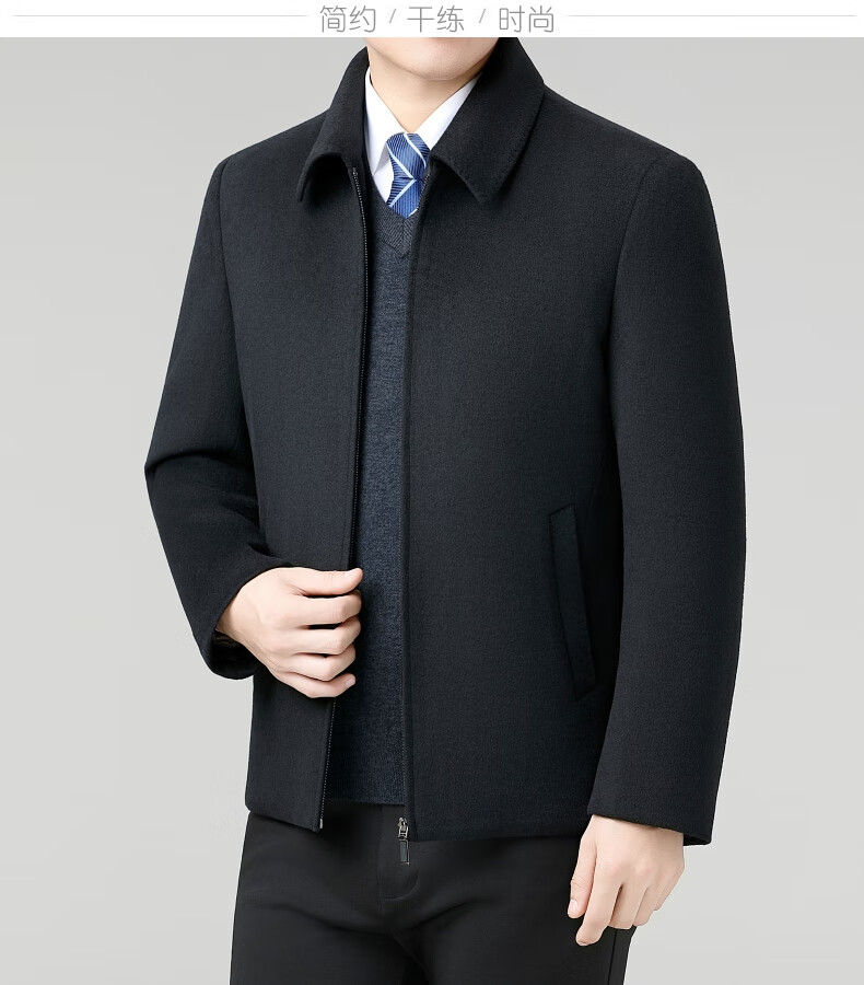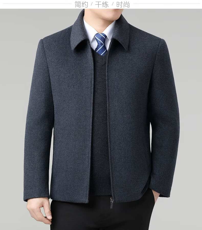 Hengyuanxiang Wool Jacket Men's Short Thick Warm Double-sided Wool Cashmere Jacket Winter Middle-aged and Elderly Dad's Wool Jacket Dark Blue Removable Long-Sleeved Down Liner XL (180)