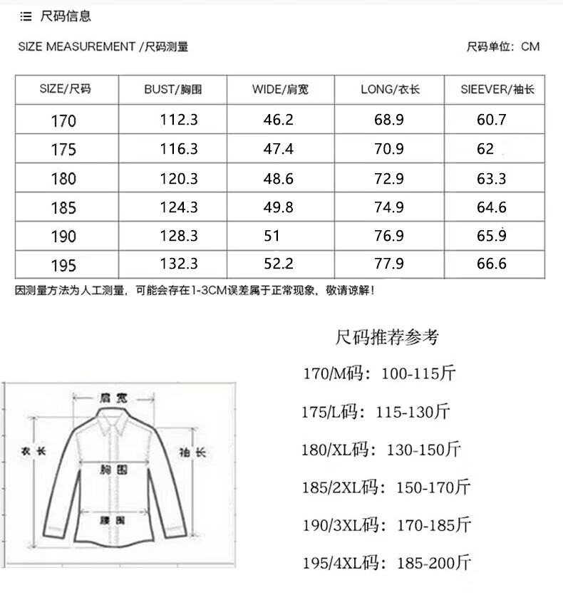 China (cm) 165 / 88-90 170 / 96-98 175 / 108-110 180 / 118-122 185 / 126-130