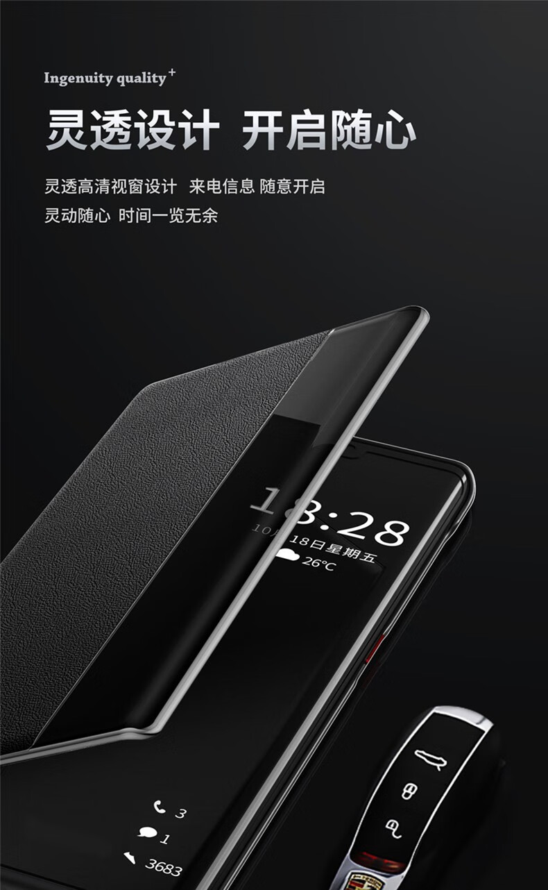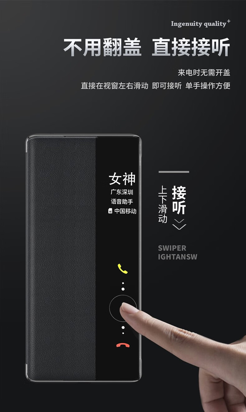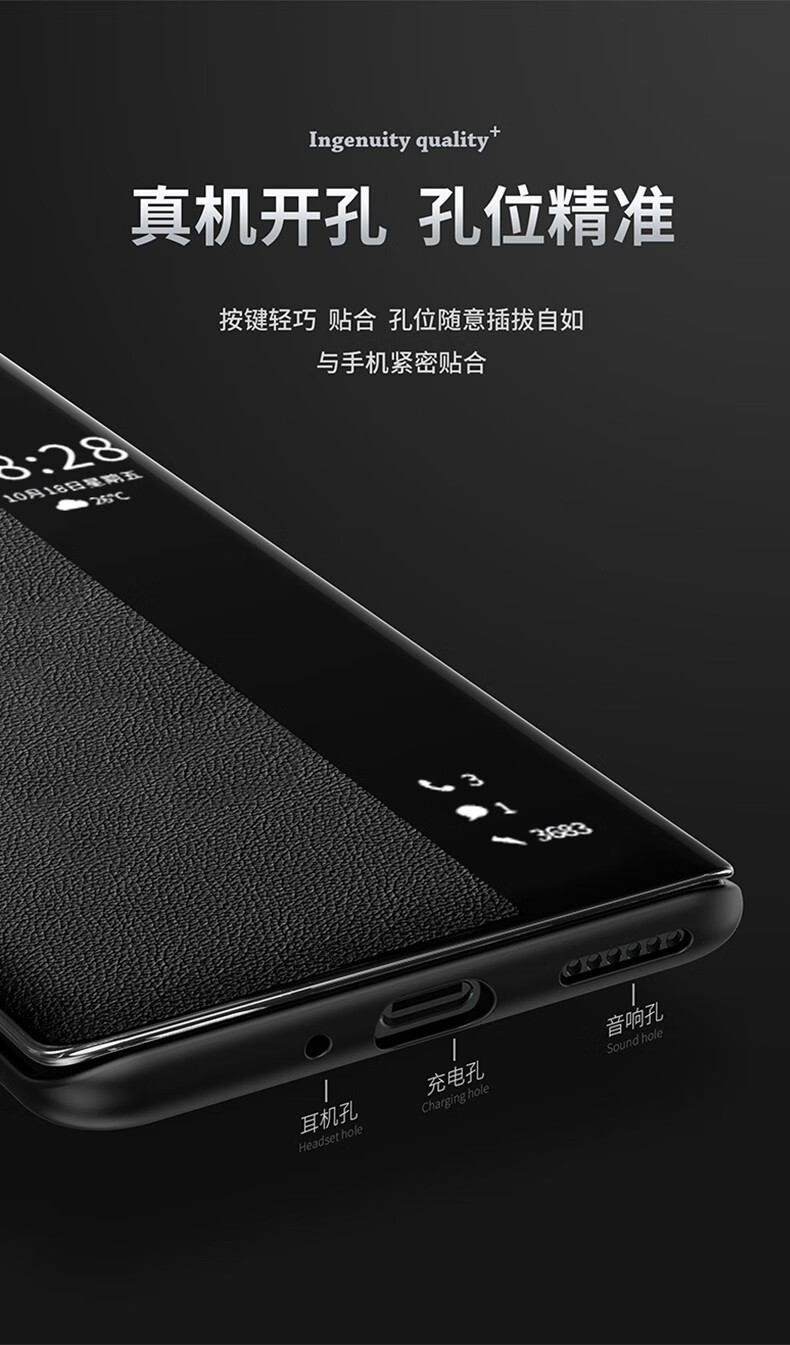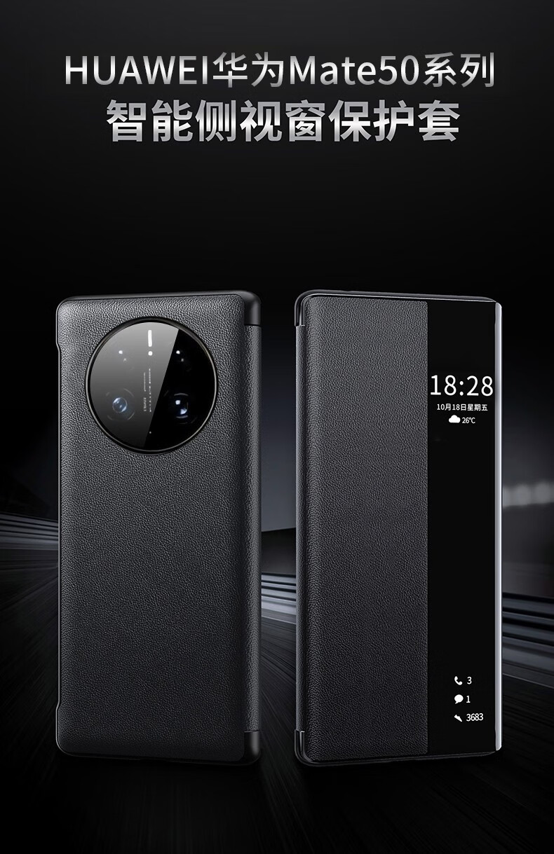 Genuine Huawei mate50 mobile phone case mate50E protective case pro mobile phone case smart window sleep phone case anti-fall flip leather case flip-free plain leather Huawei MATE50 /E-classic black (not compatible with PRO)