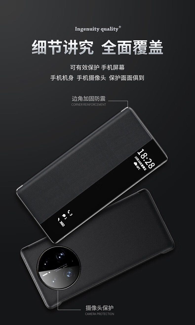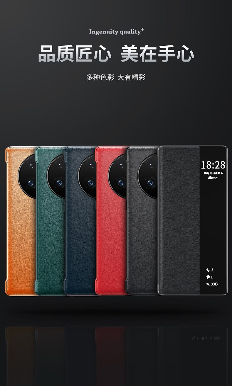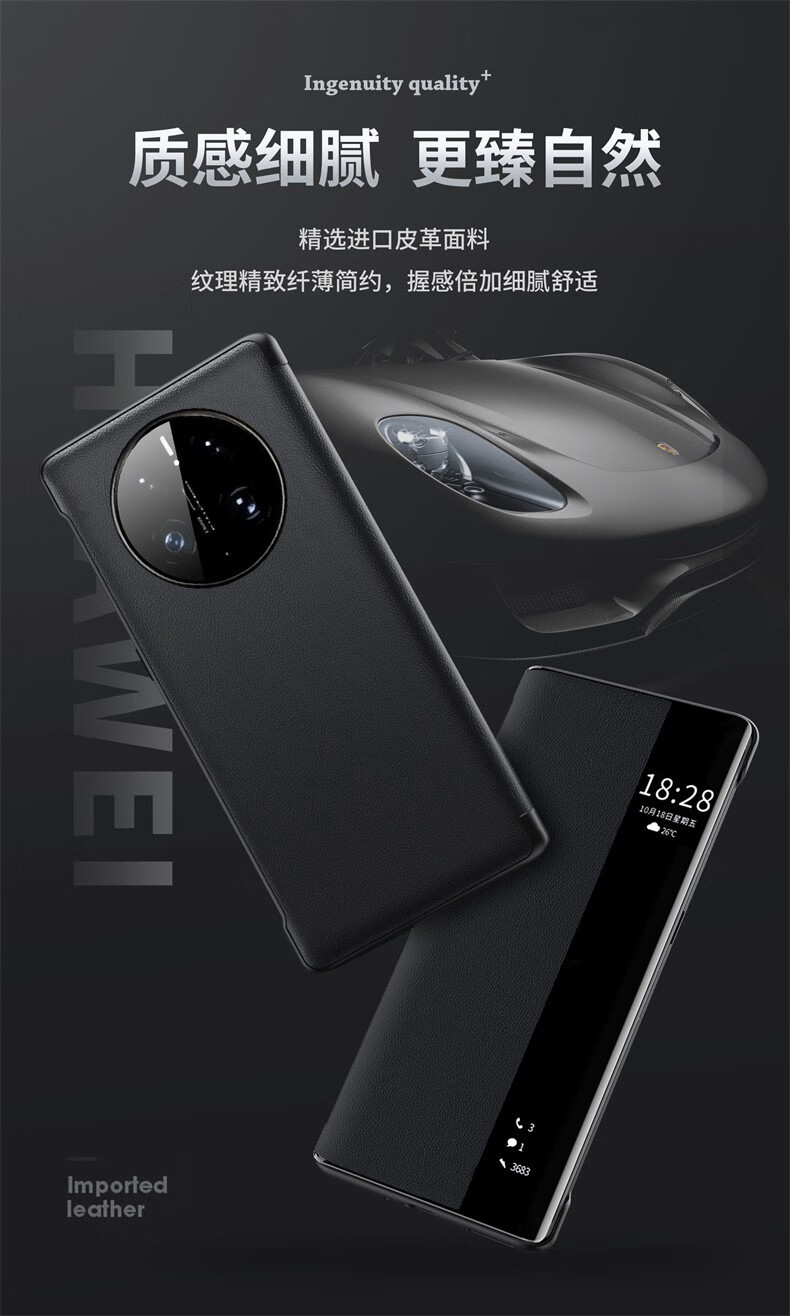 Genuine Huawei mate50 mobile phone case mate50E protective case pro mobile phone case smart window sleep phone case anti-fall flip leather case flip-free plain leather Huawei MATE50 /E-classic black (not compatible with PRO)