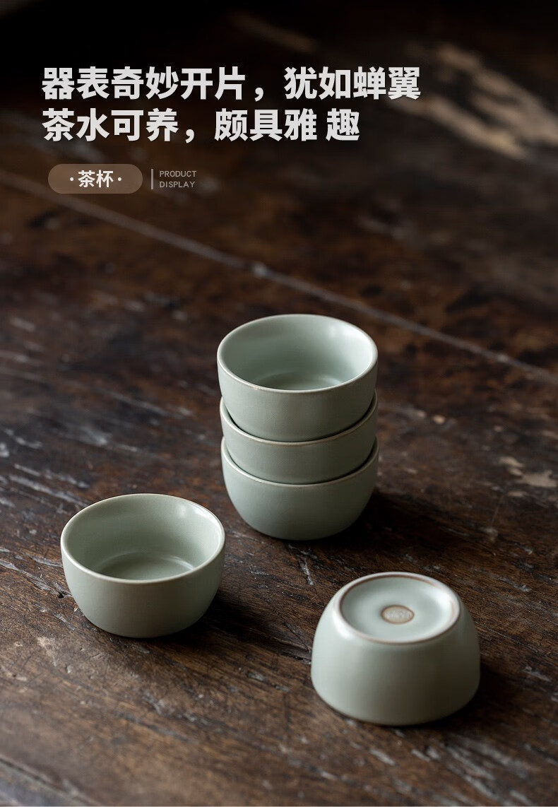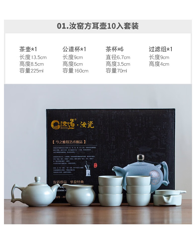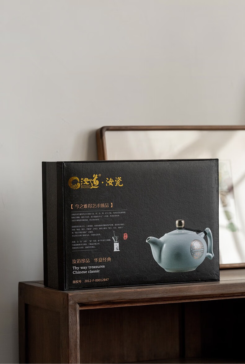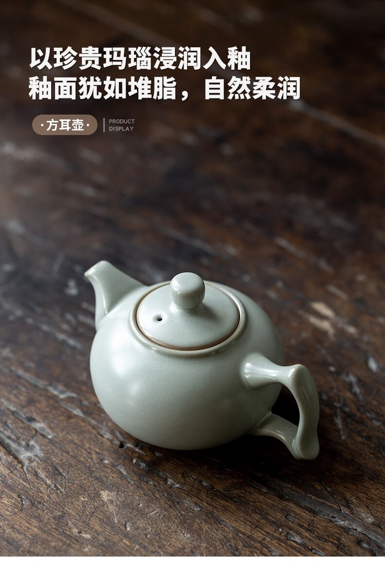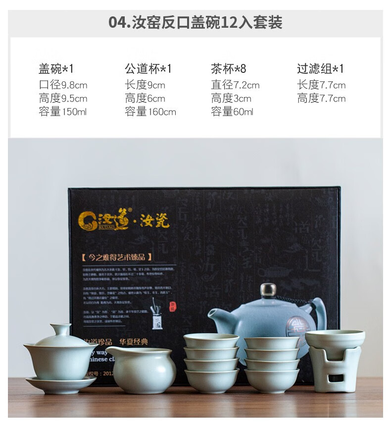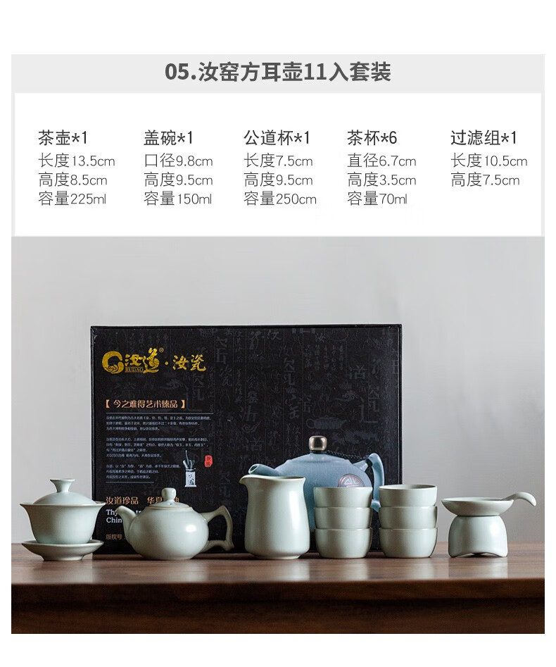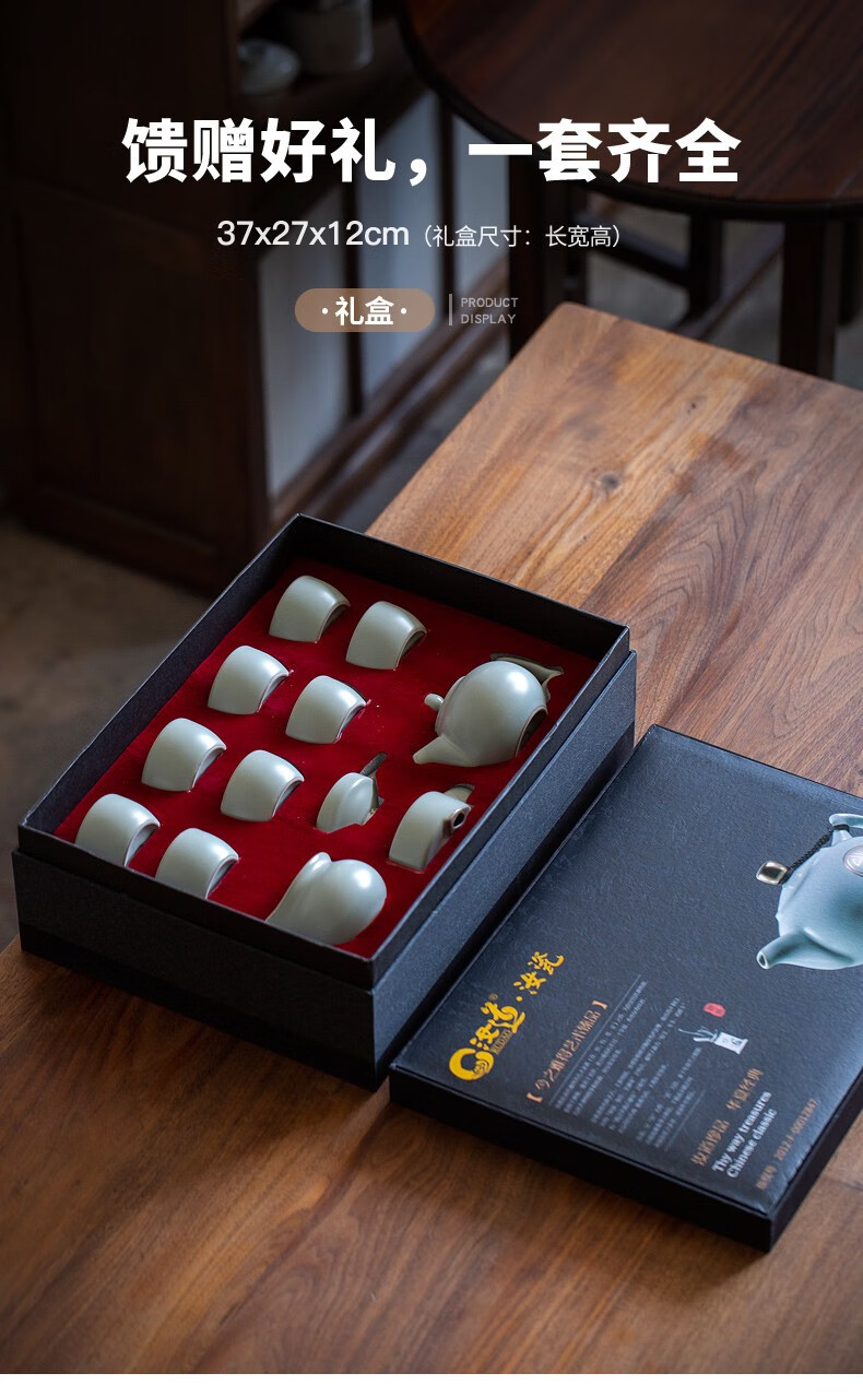 Rudao Ru Kiln Kung Fu Tea Set Covered Bowl Teapot Teacup Complete Set Ru Kiln Rare Open Slices Azure Retro Ceramic Household Tea Maker Gift Box Packaging Ru Kiln Square Ear Pot 11-pack Gift Box